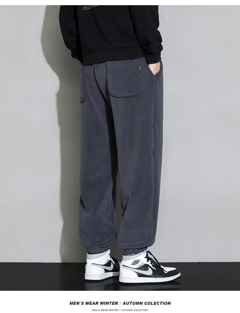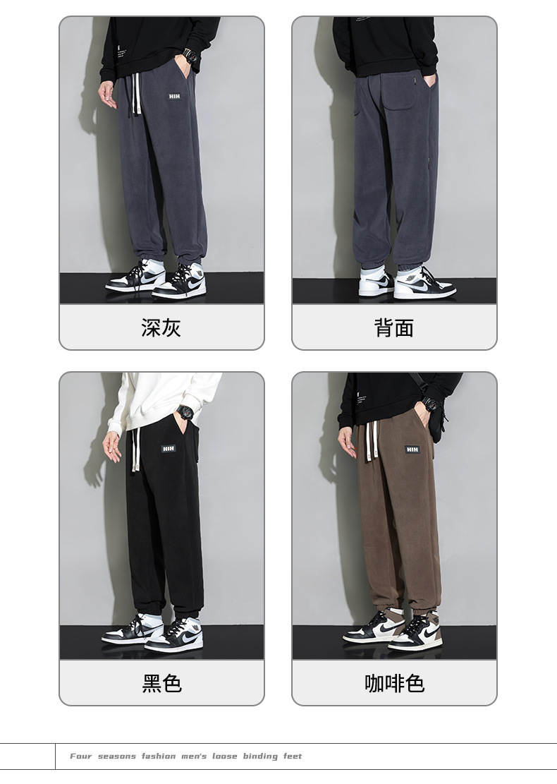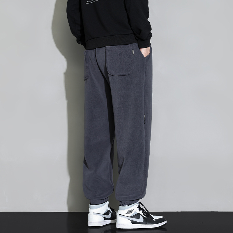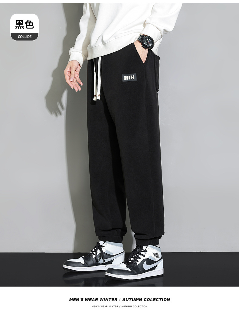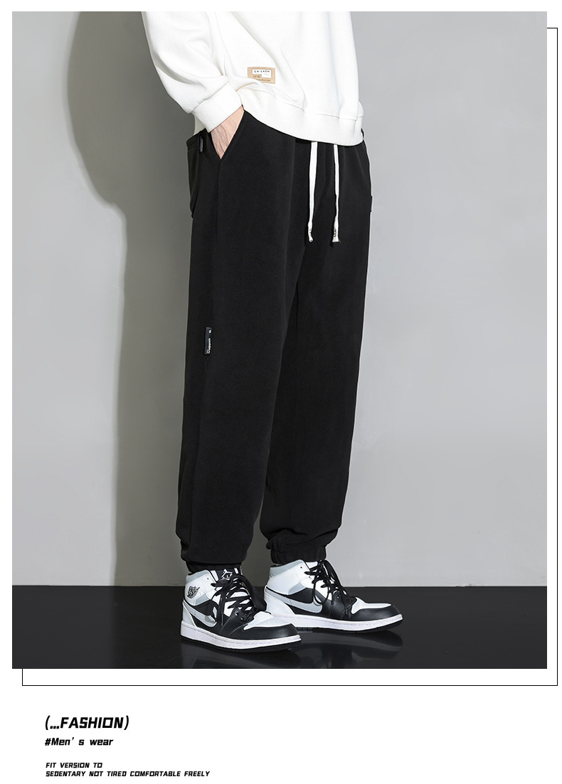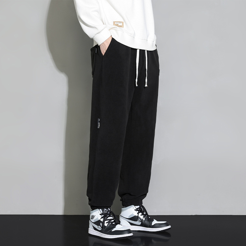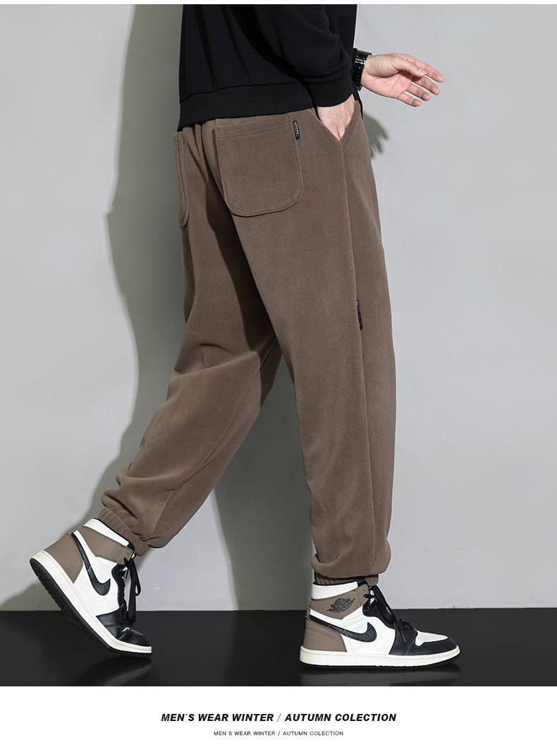 休闲裤男秋冬季加厚保暖长裤时尚百搭潮牌束脚裤双面奥粒绒裤子