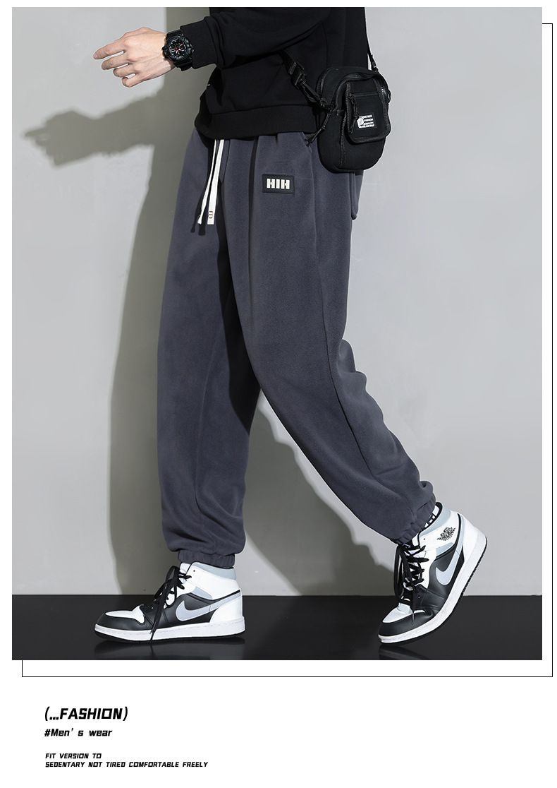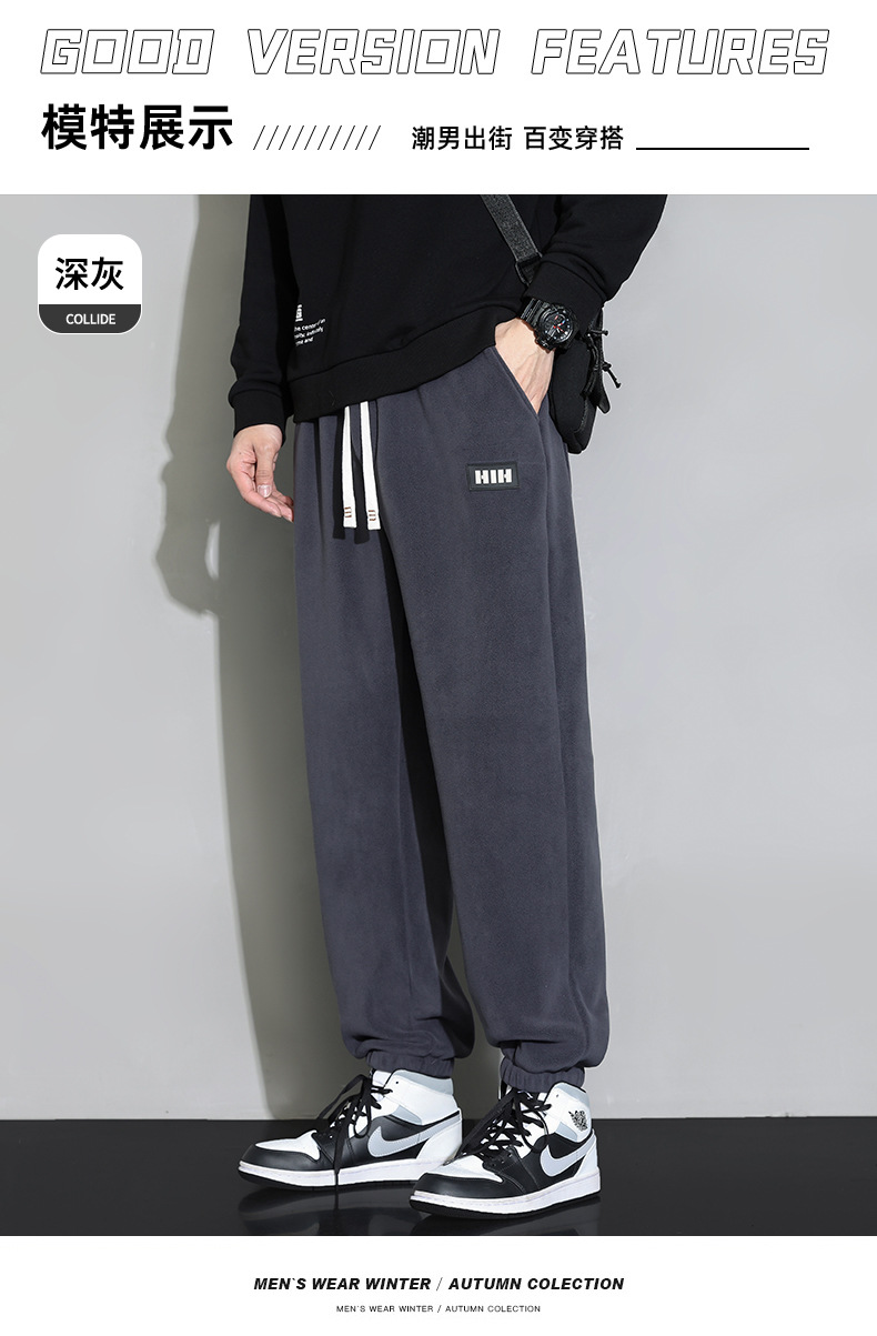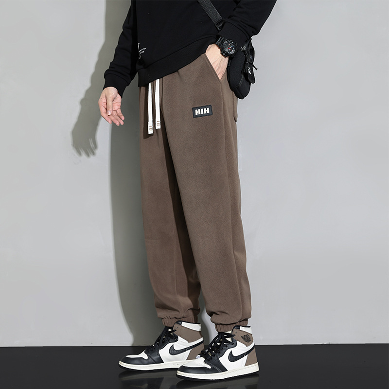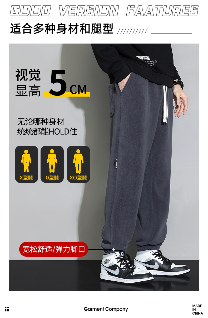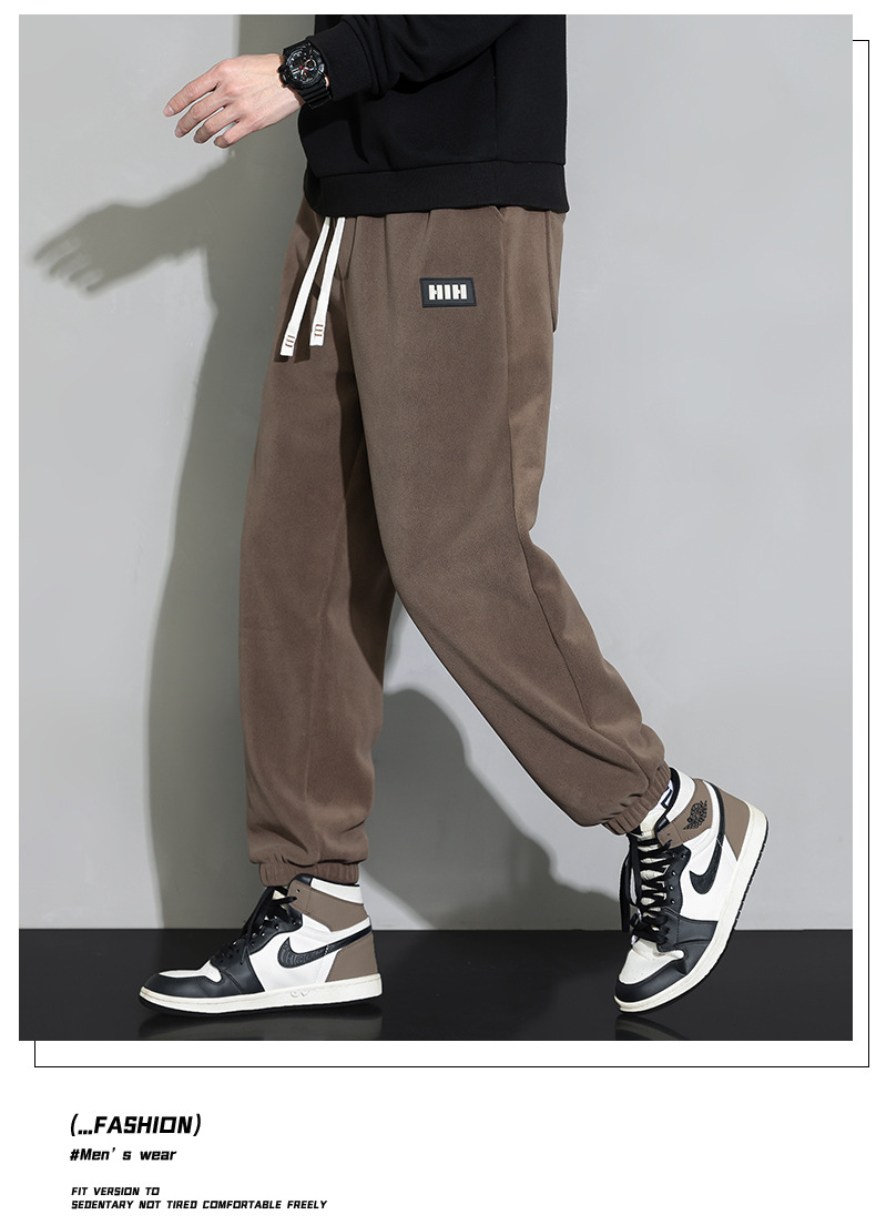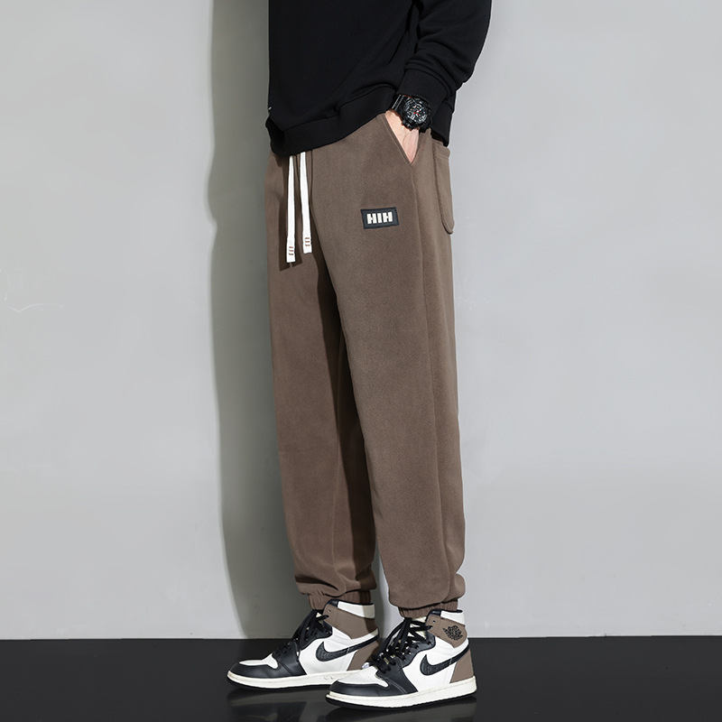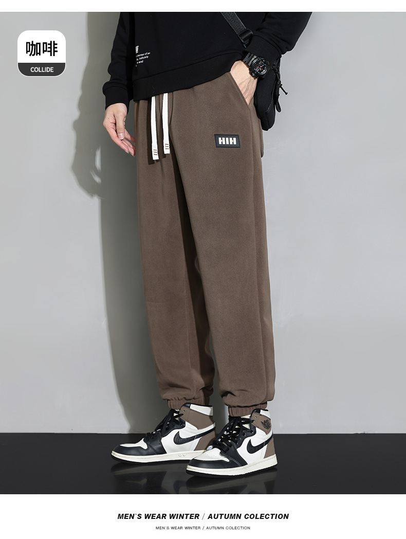 休闲裤男秋冬季加厚保暖长裤时尚百搭潮牌束脚裤双面奥粒绒裤子