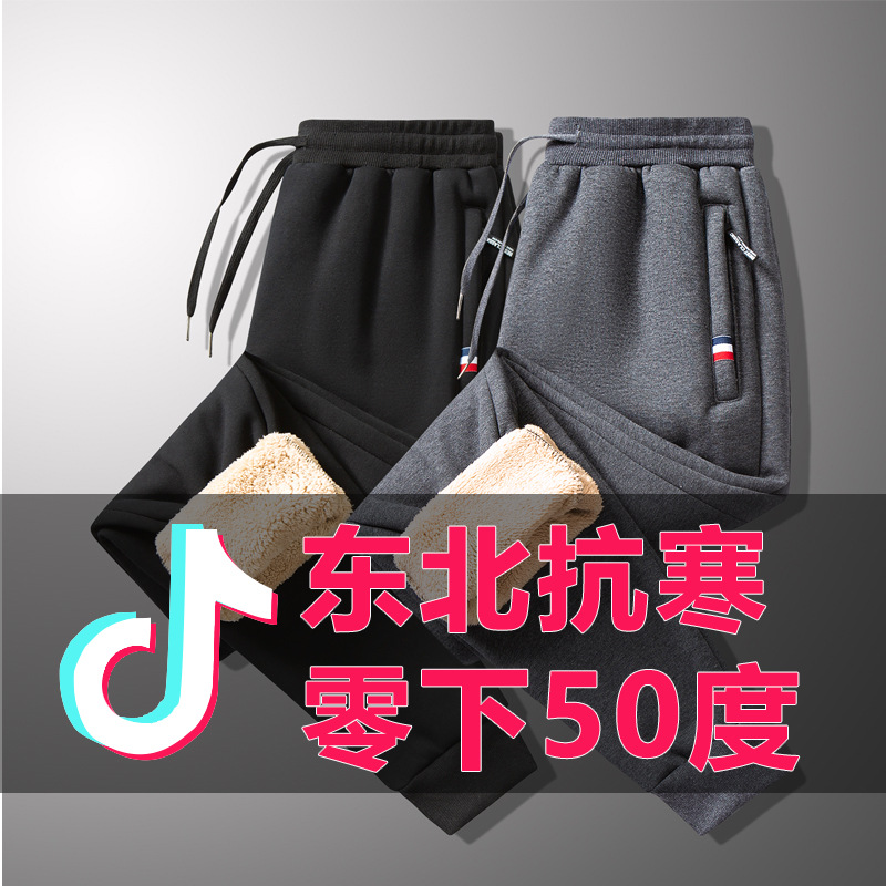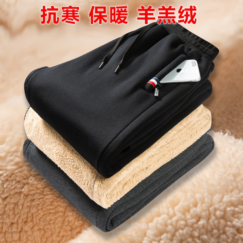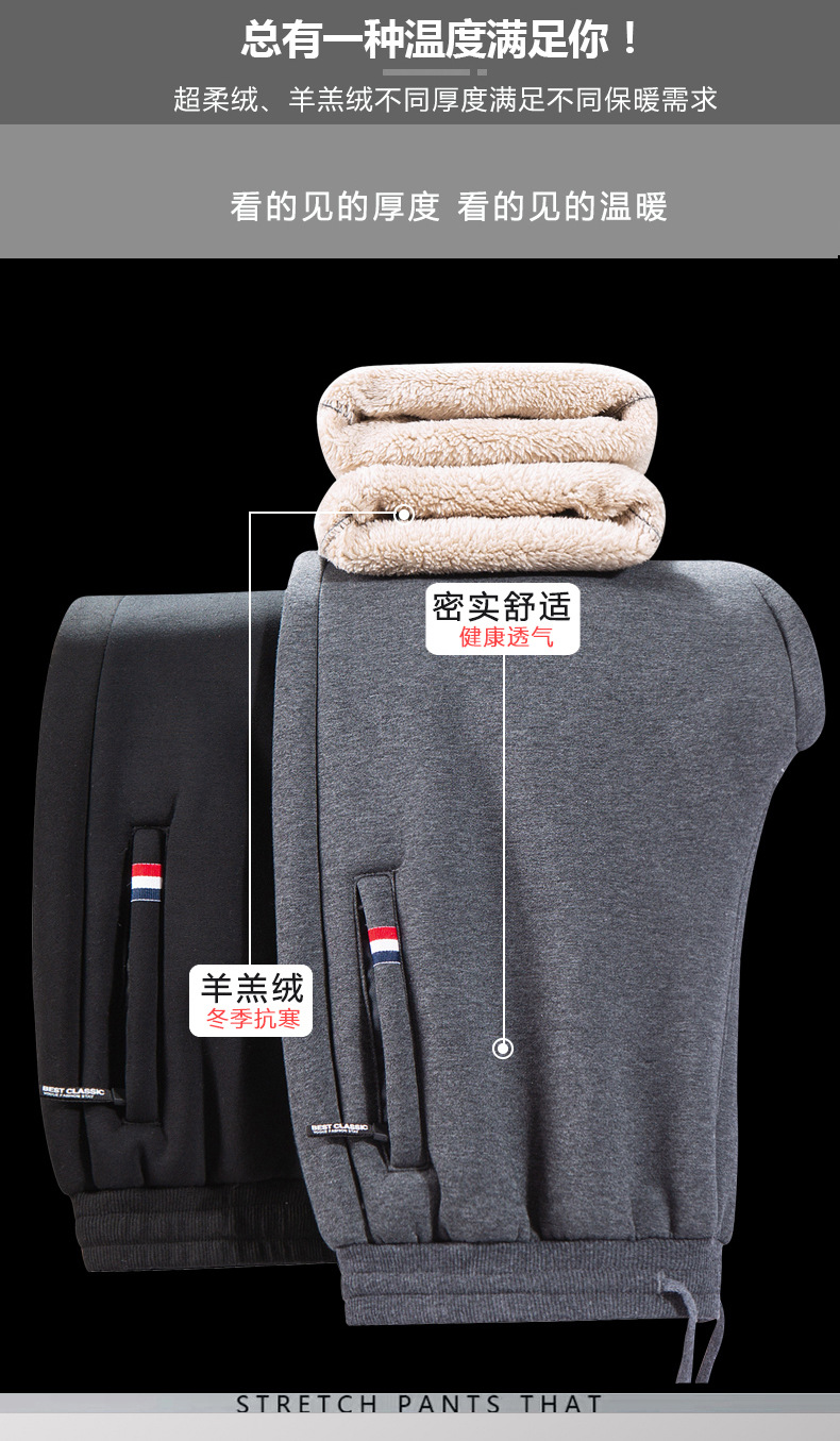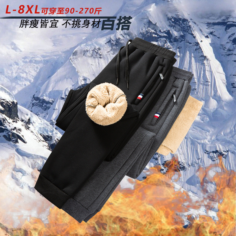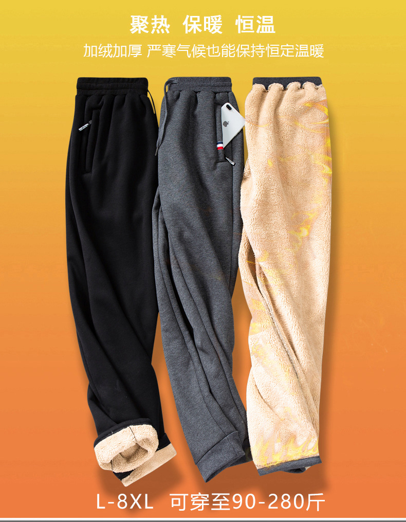 加大码秋冬季男士羊羔绒休闲裤运动长裤直筒男士加绒加厚松紧裤