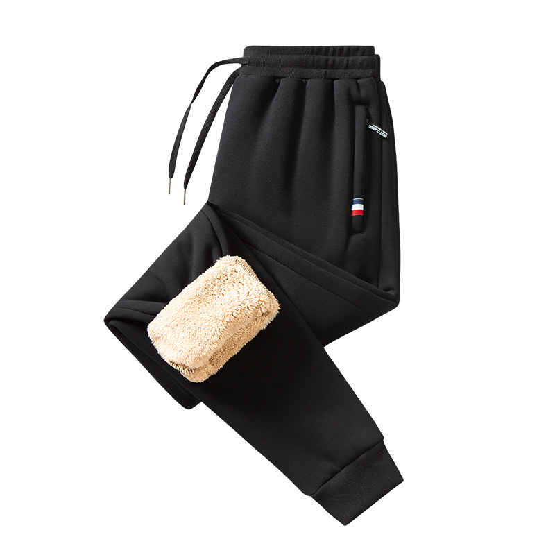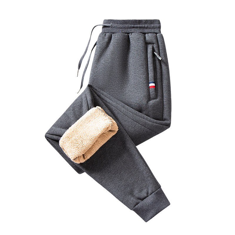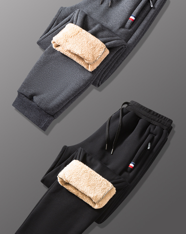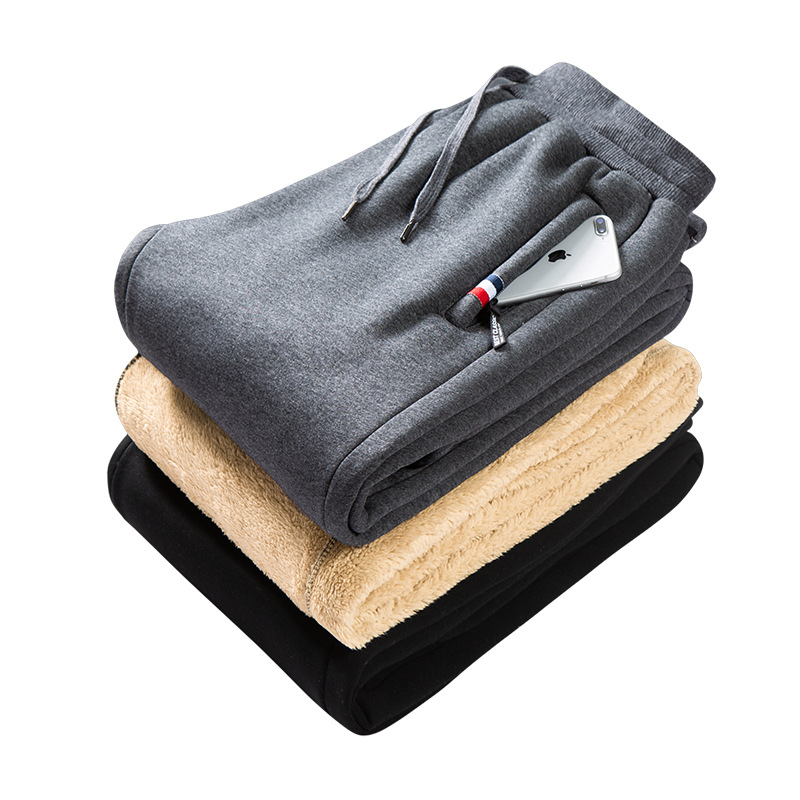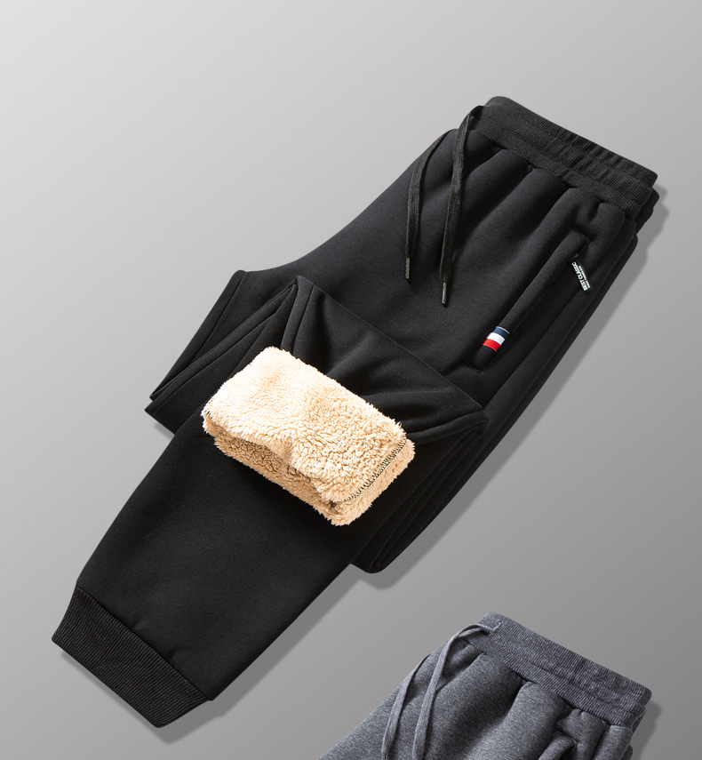 加大码秋冬季男士羊羔绒休闲裤运动长裤直筒男士加绒加厚松紧裤