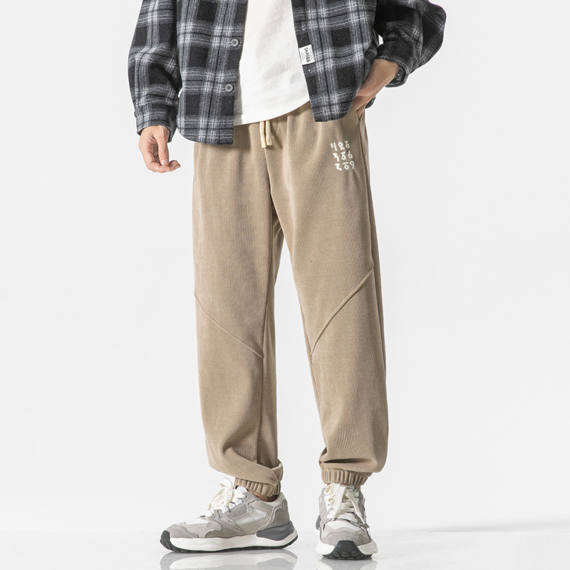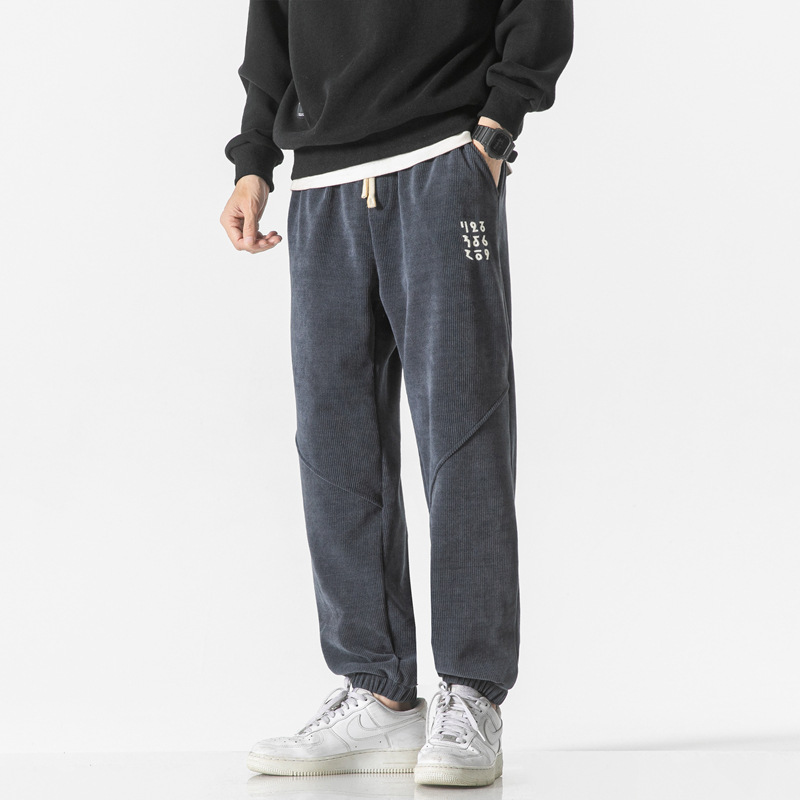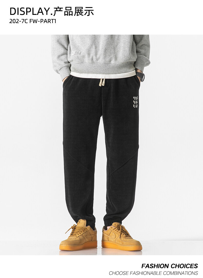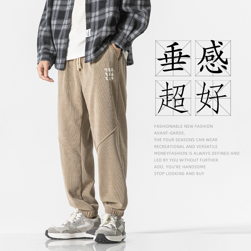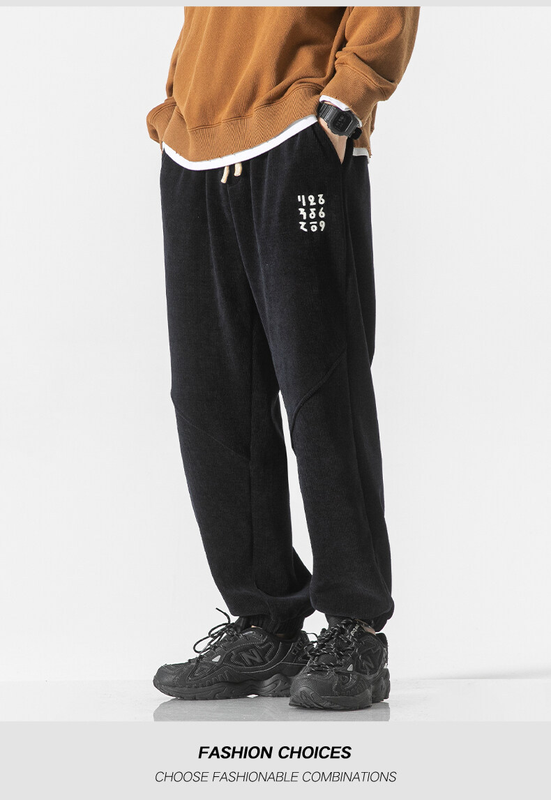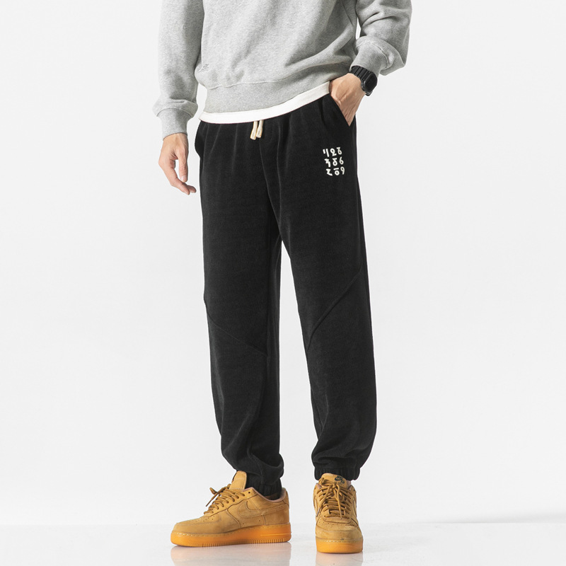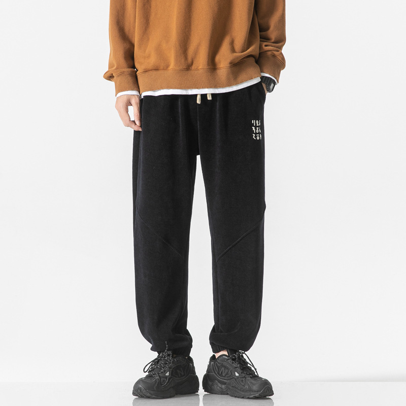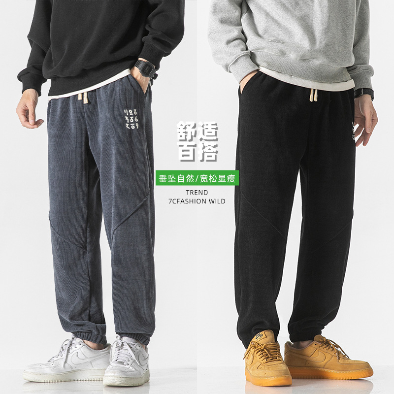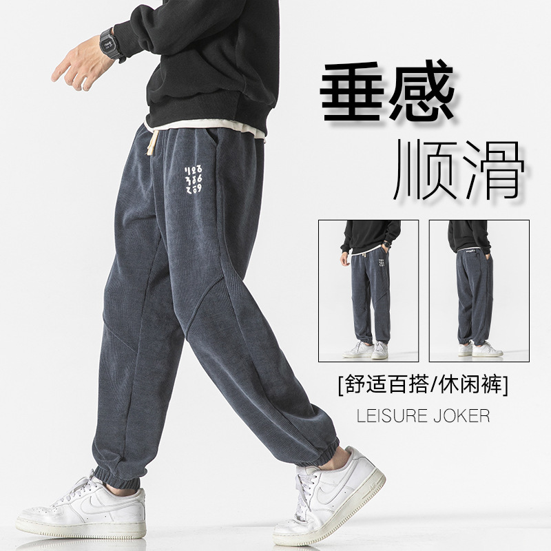 高品质卫裤男秋冬季宽松束脚百搭运动裤男生灯芯绒休闲加厚长裤子