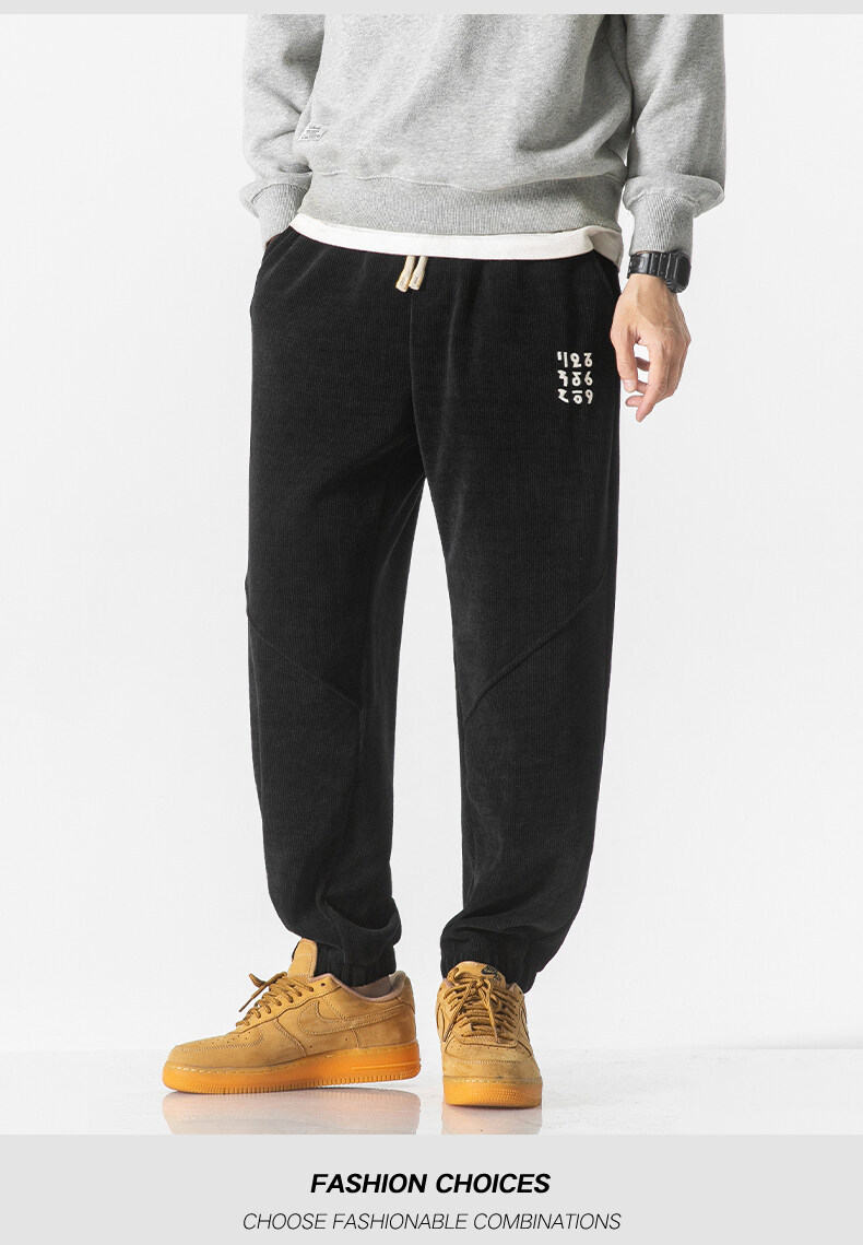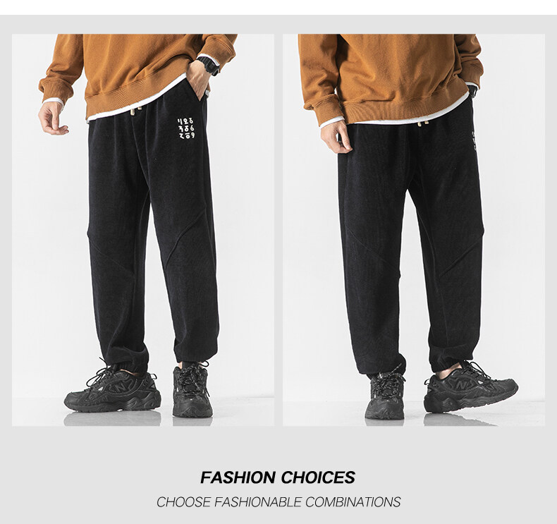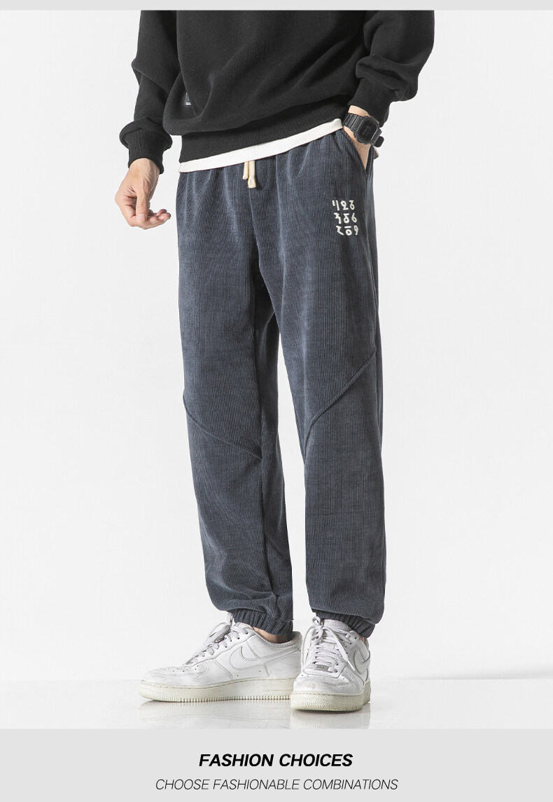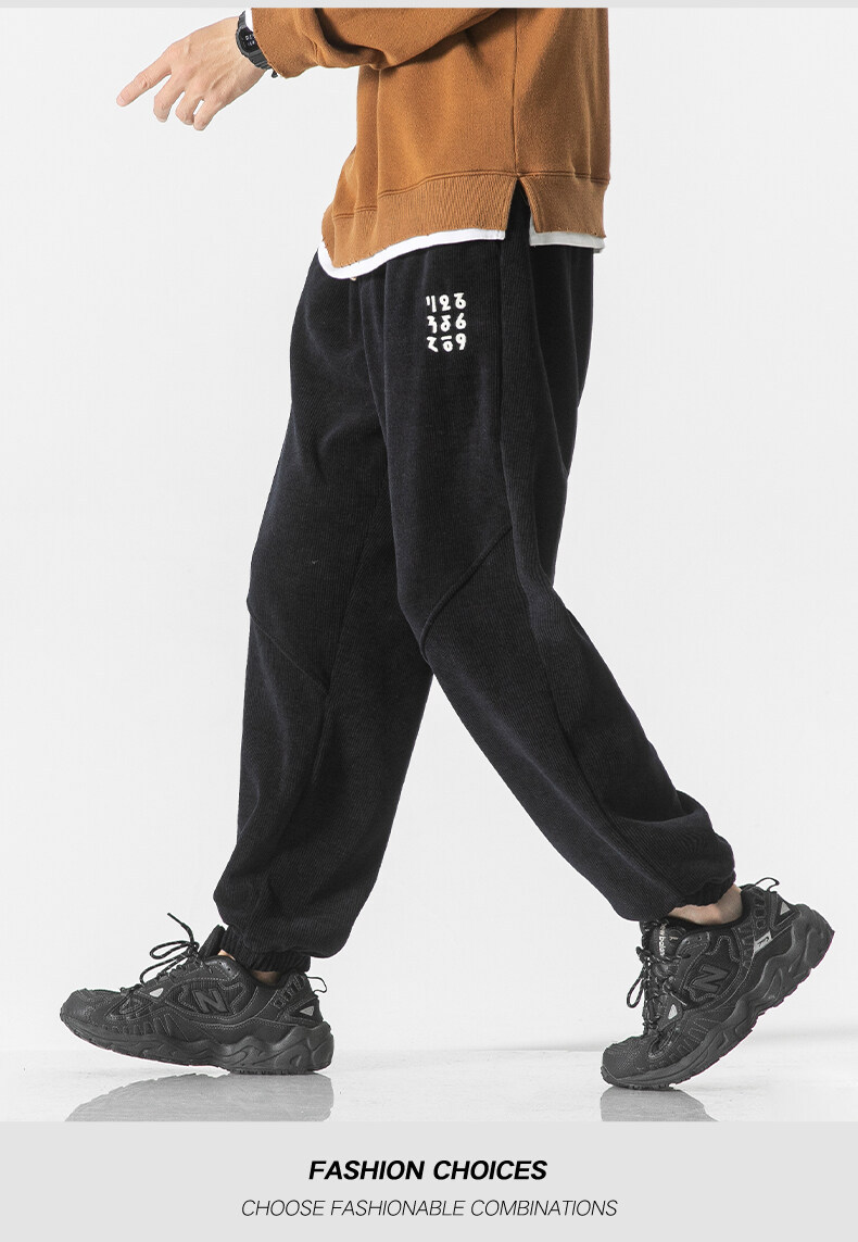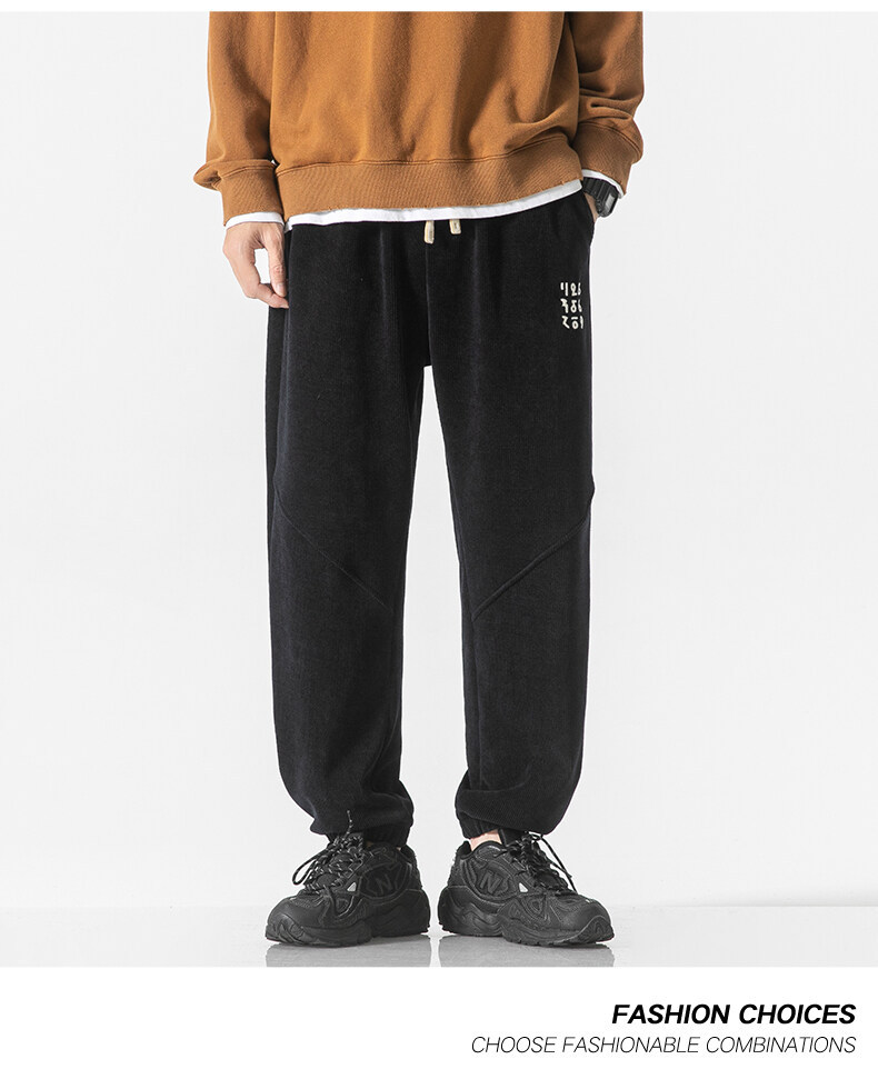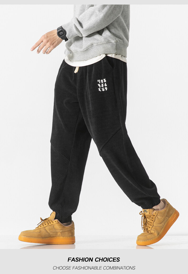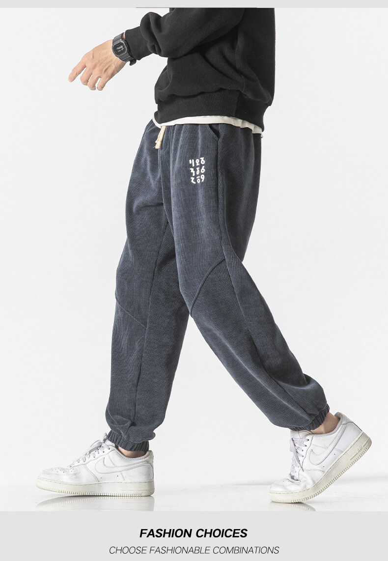 高品质卫裤男秋冬季宽松束脚百搭运动裤男生灯芯绒休闲加厚长裤子