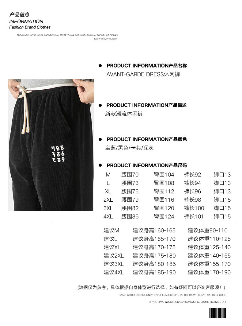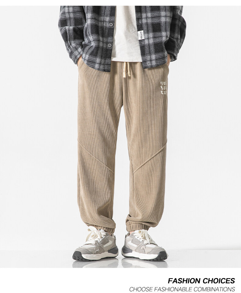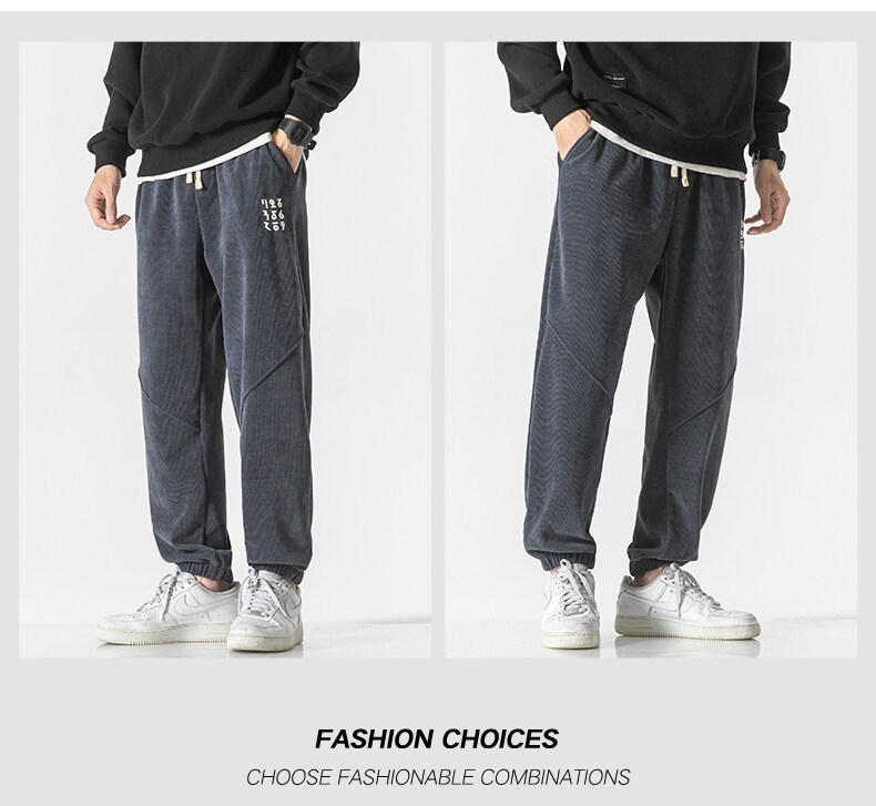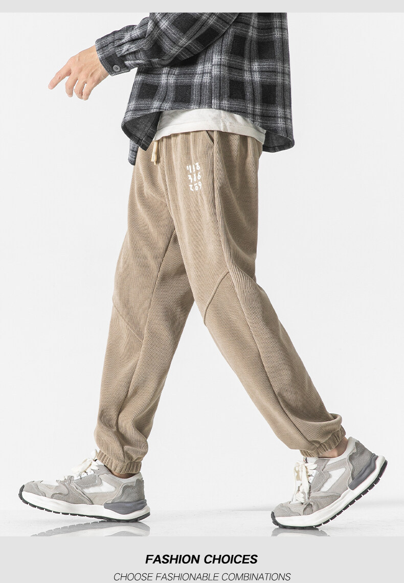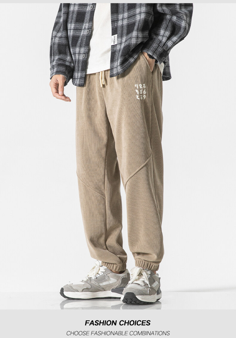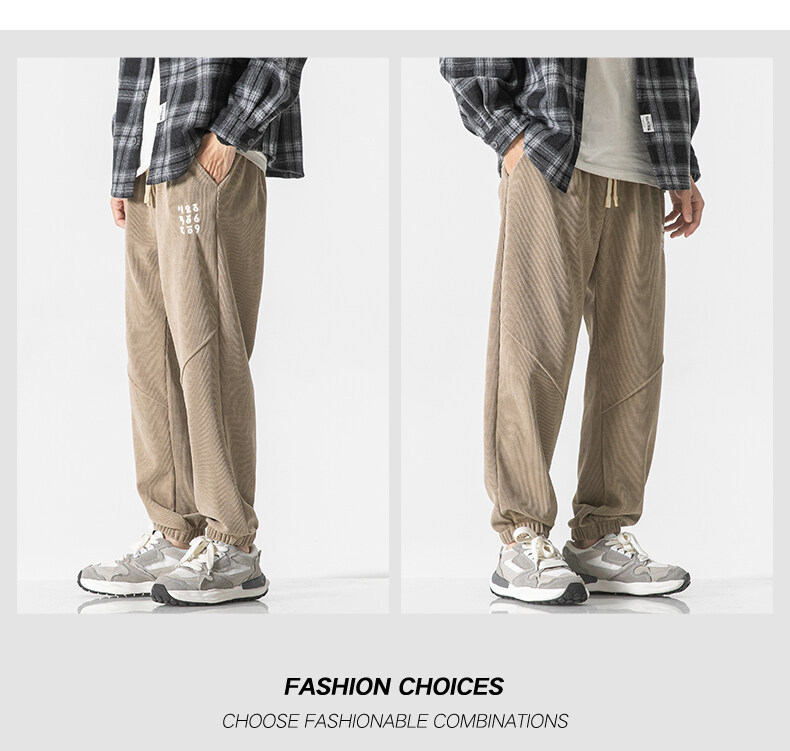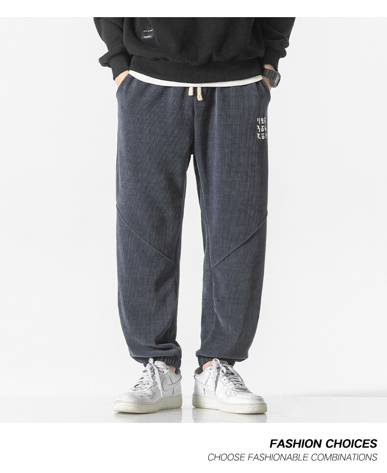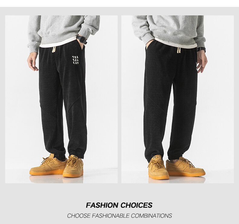 高品质卫裤男秋冬季宽松束脚百搭运动裤男生灯芯绒休闲加厚长裤子