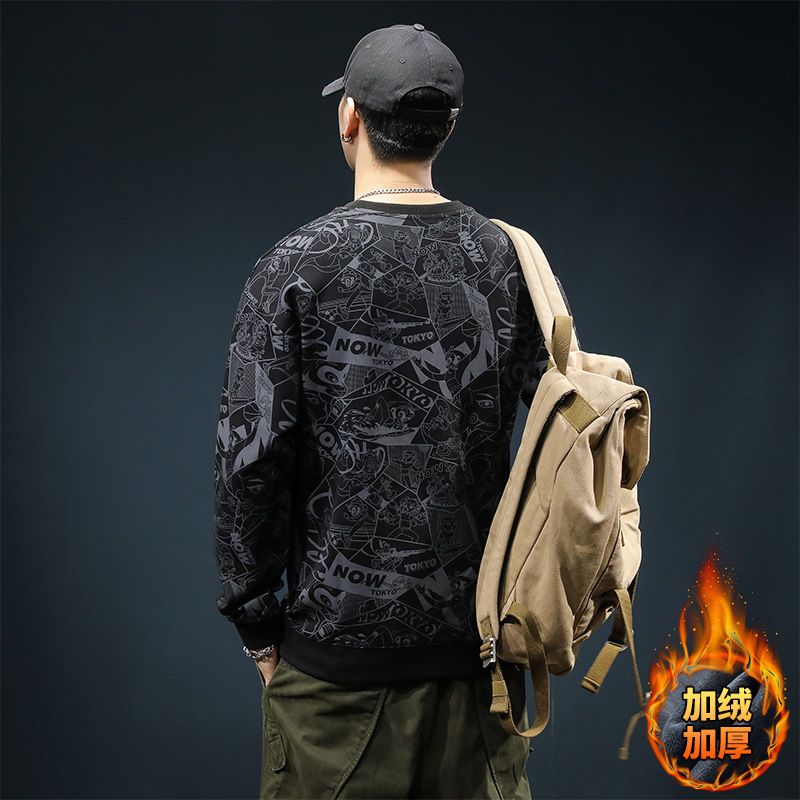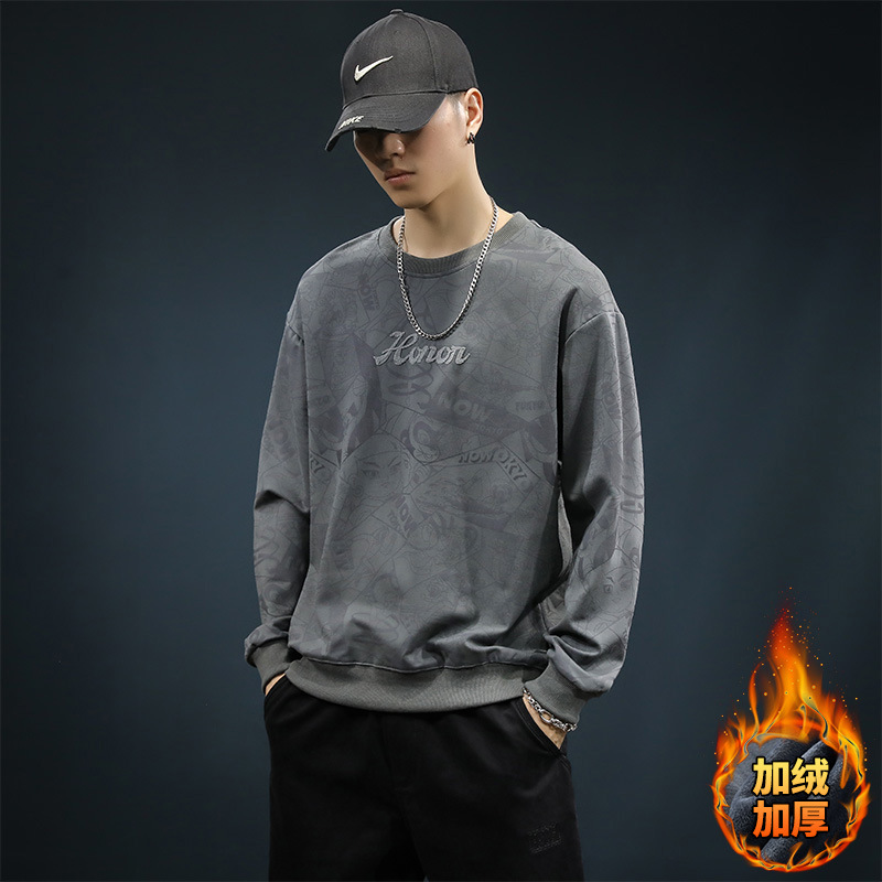 卫衣男士2023秋冬季新款时尚百搭休闲加绒加厚青少年宽松日系潮