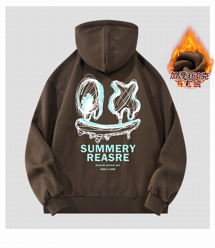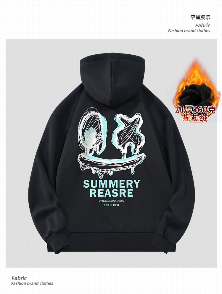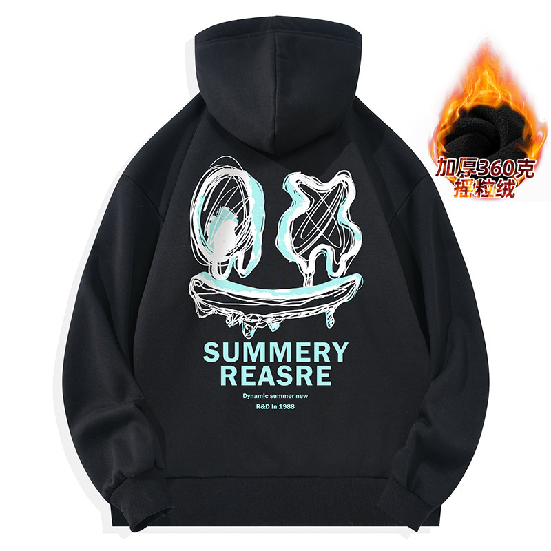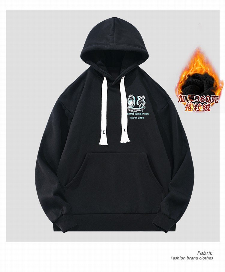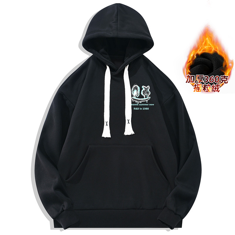 2023冬季款港风宽松版加绒连帽卫衣美式潮牌套头上衣服外套打底衫