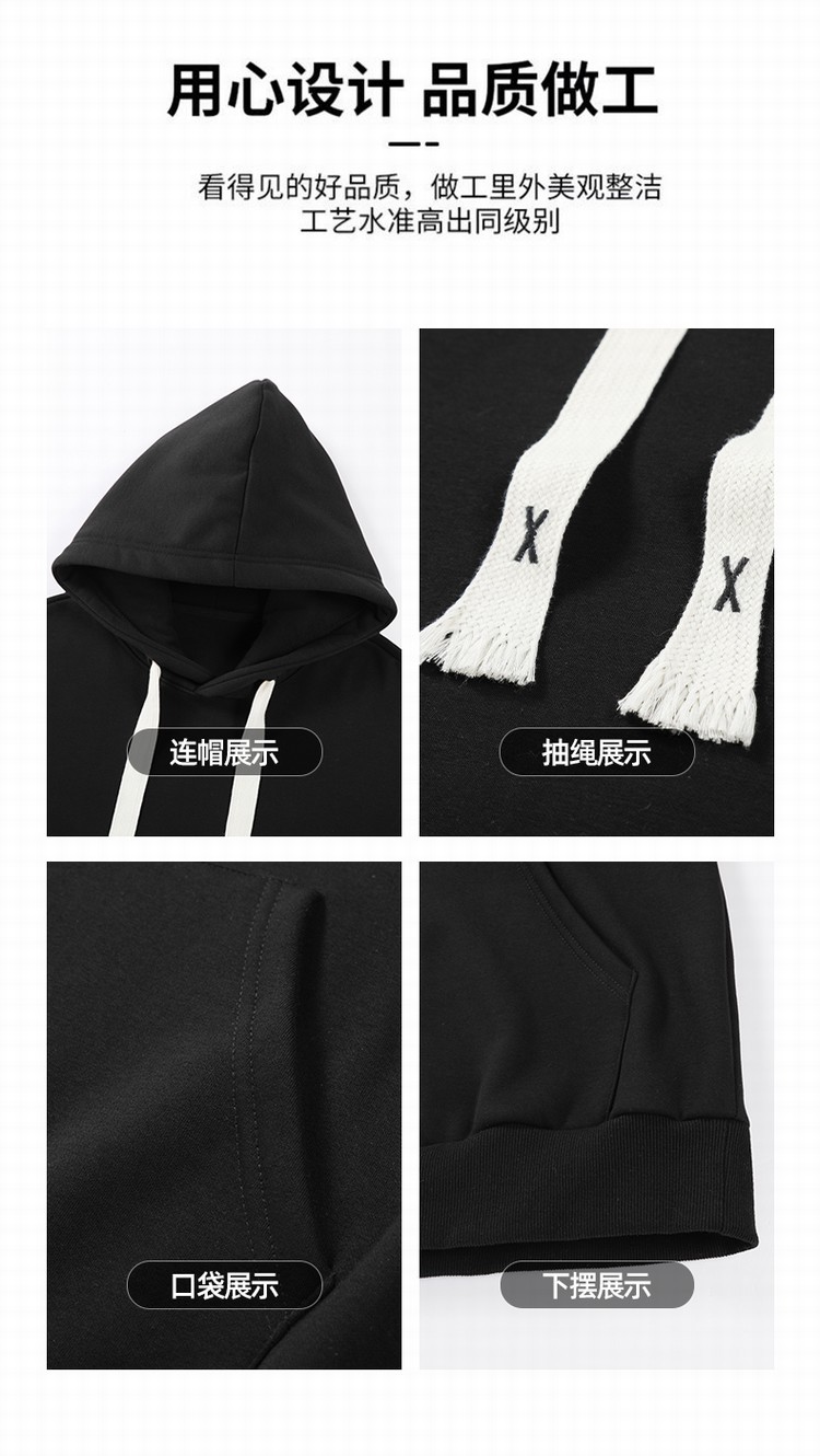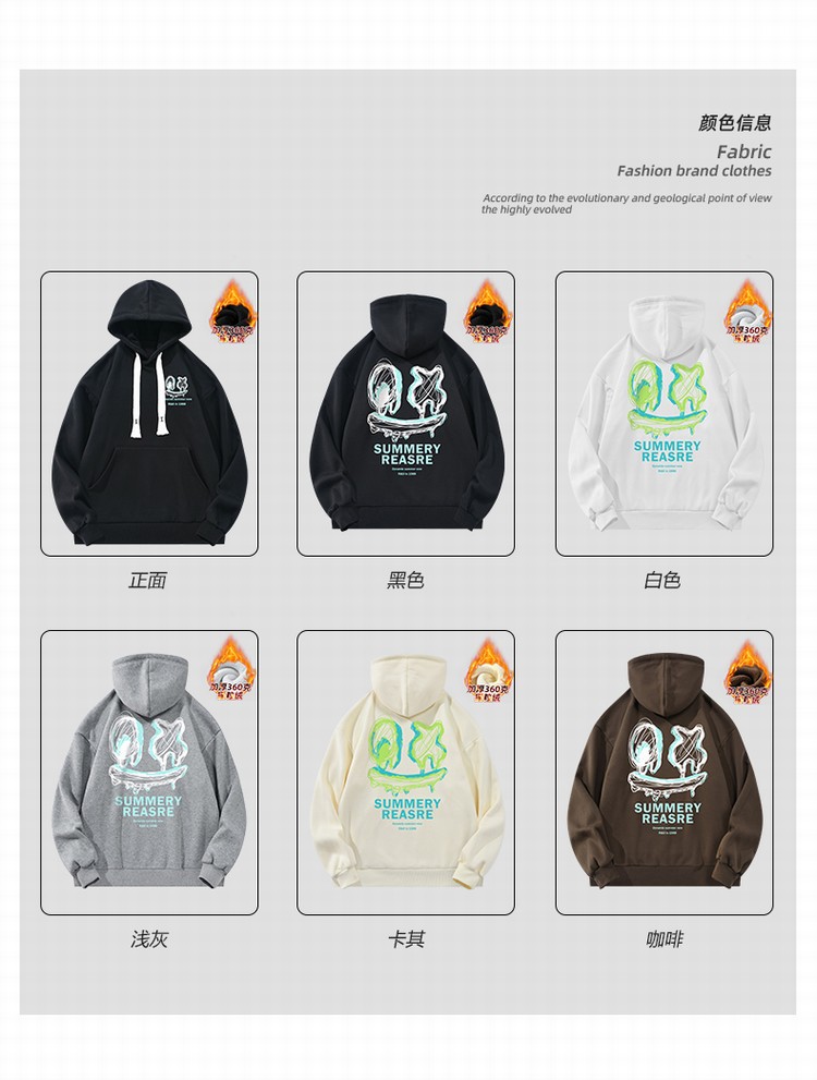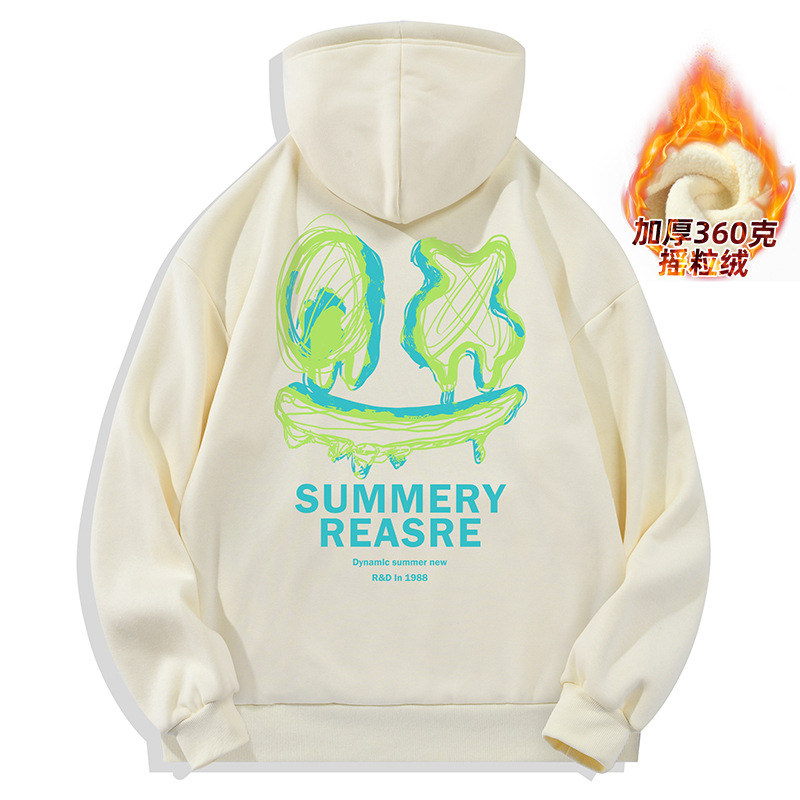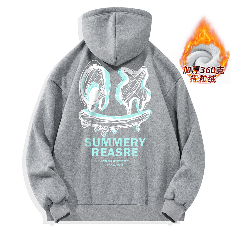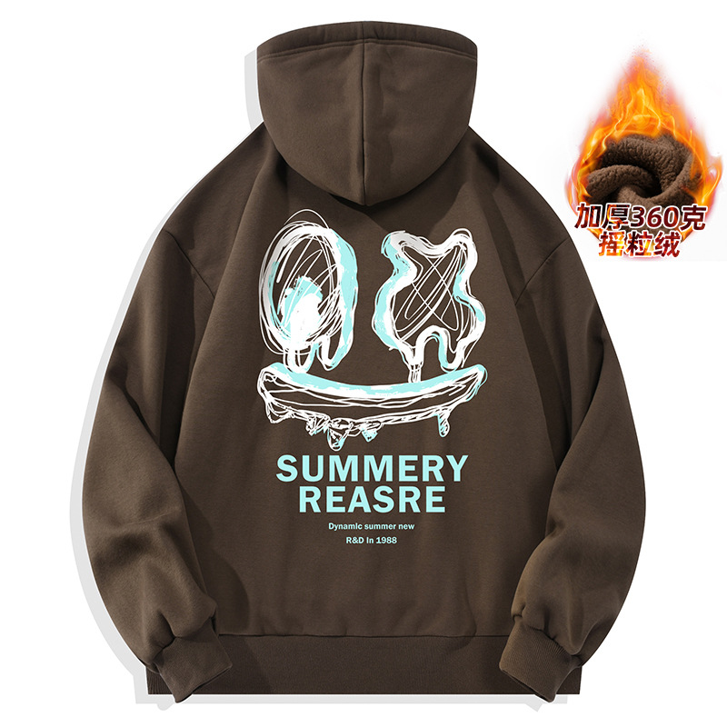 2023冬季款港风宽松版加绒连帽卫衣美式潮牌套头上衣服外套打底衫