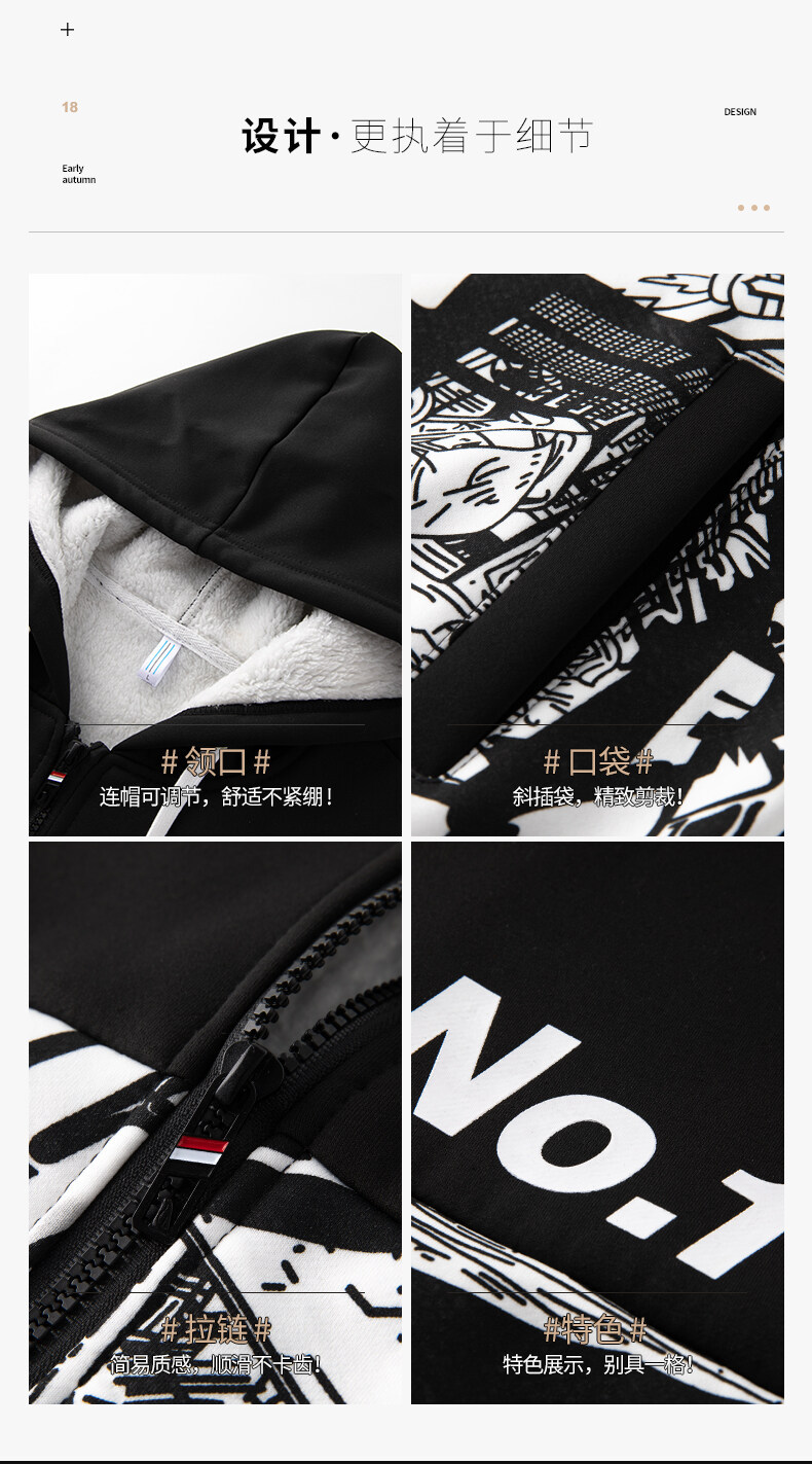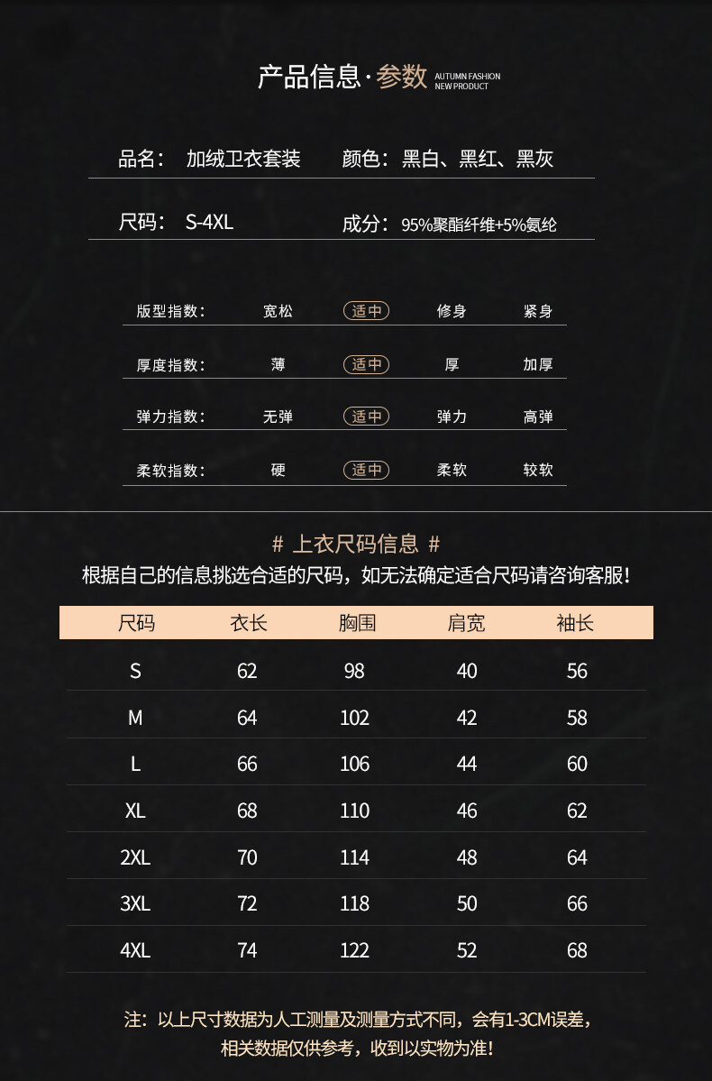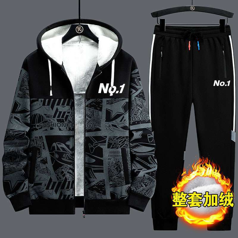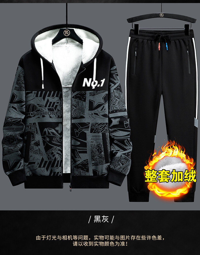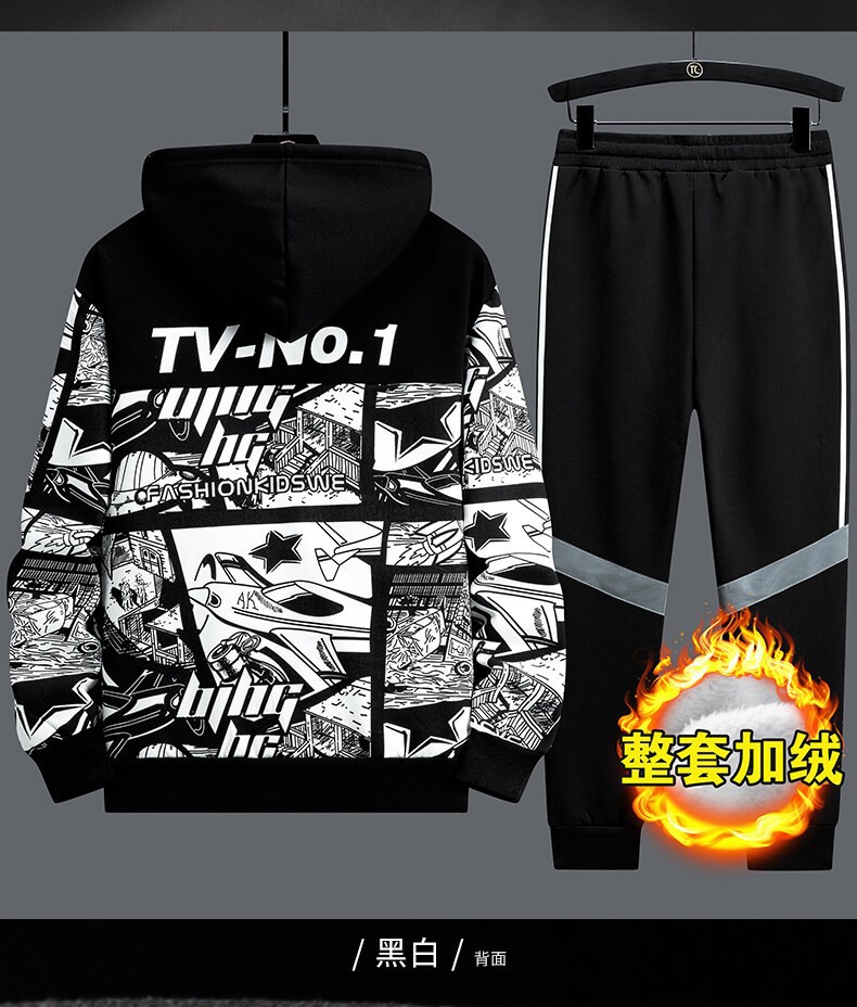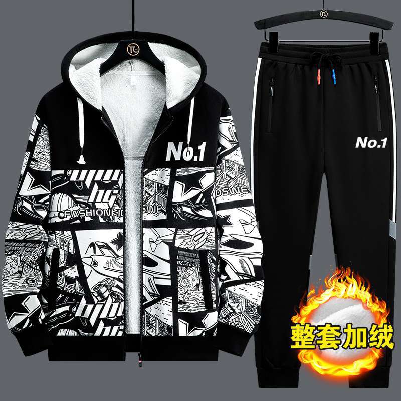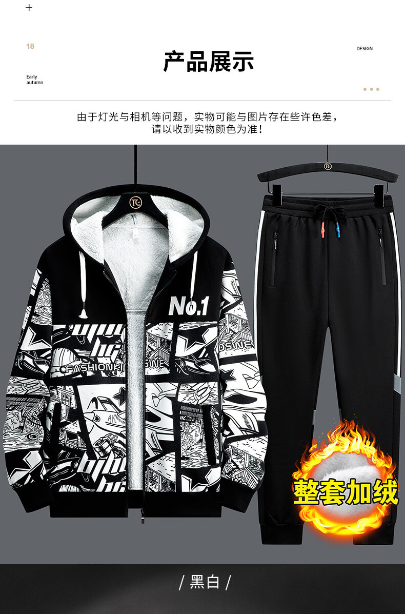 套装男时尚休闲卫衣套装秋冬季加绒加厚青少年开衫连帽二件套