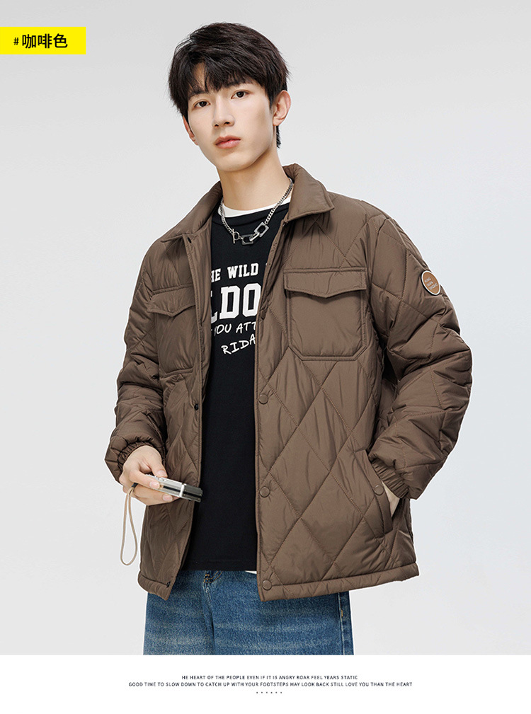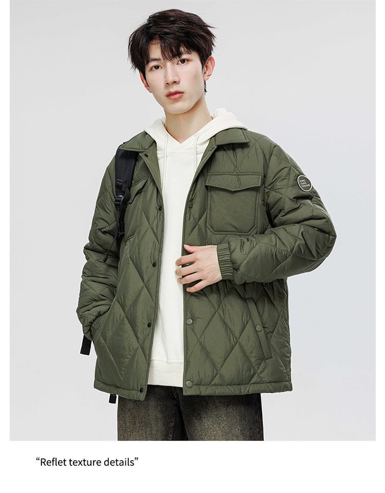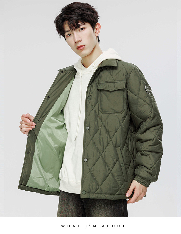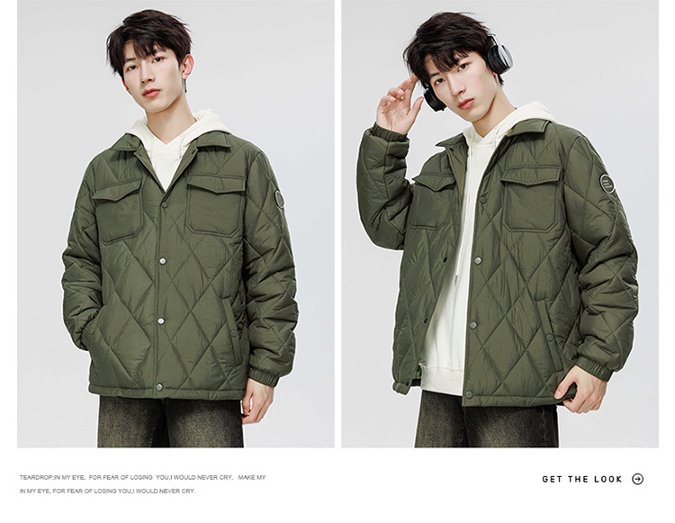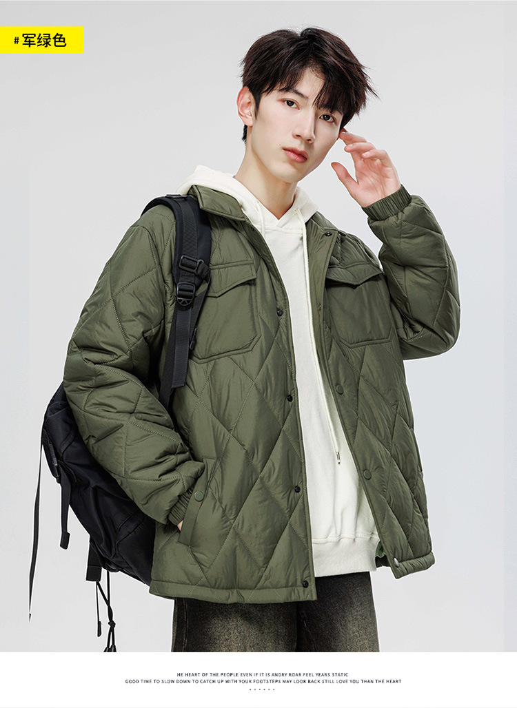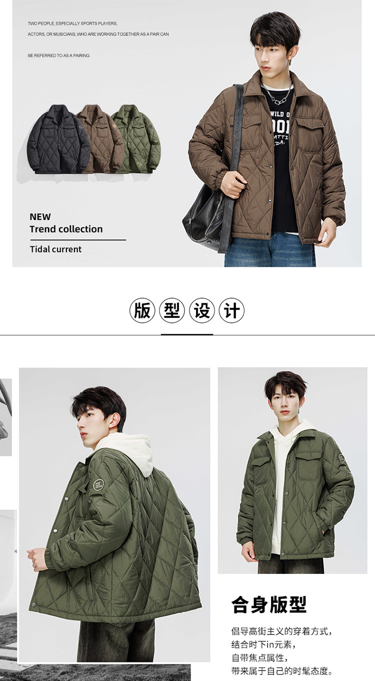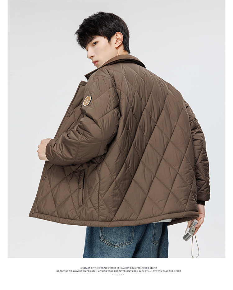 得物爆款可二开冬季棉衣男士潮牌纯色外套时尚菱格宽松大码棉服