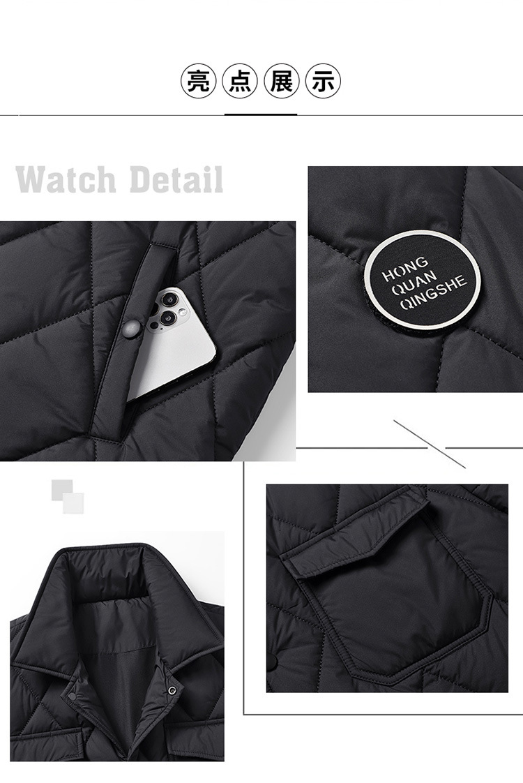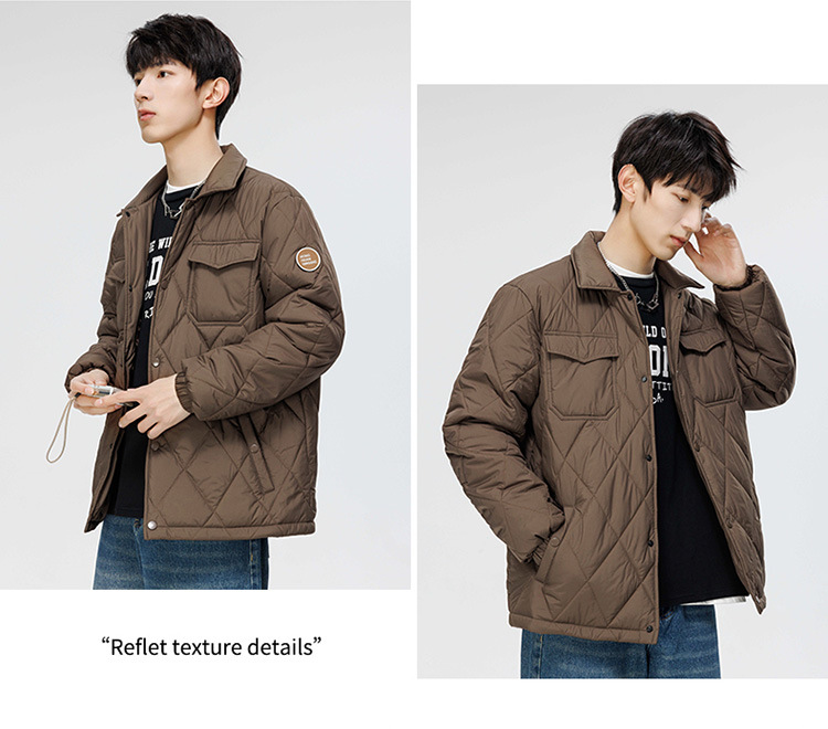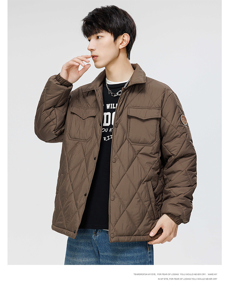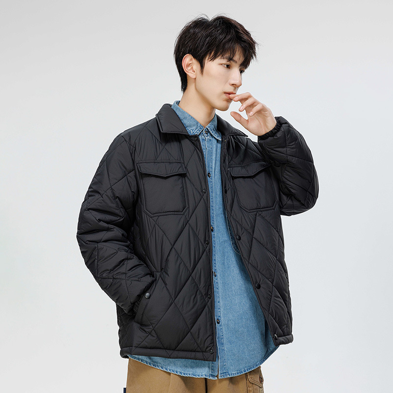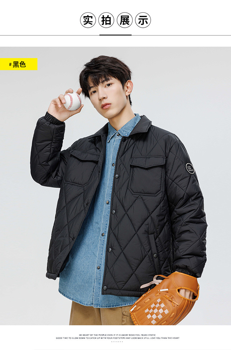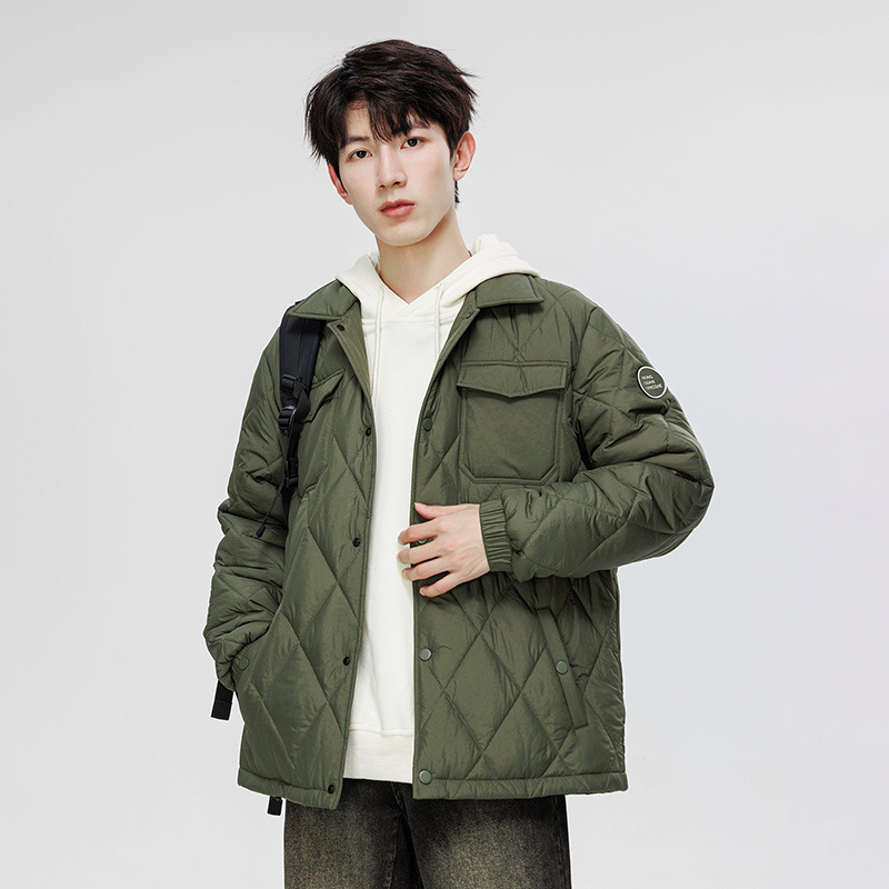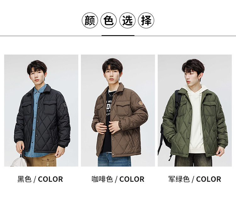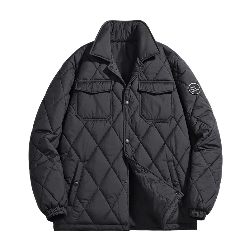 得物爆款可二开冬季棉衣男士潮牌纯色外套时尚菱格宽松大码棉服