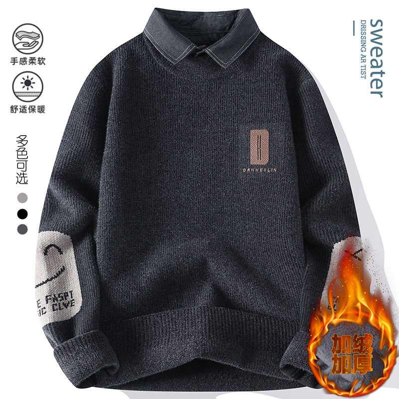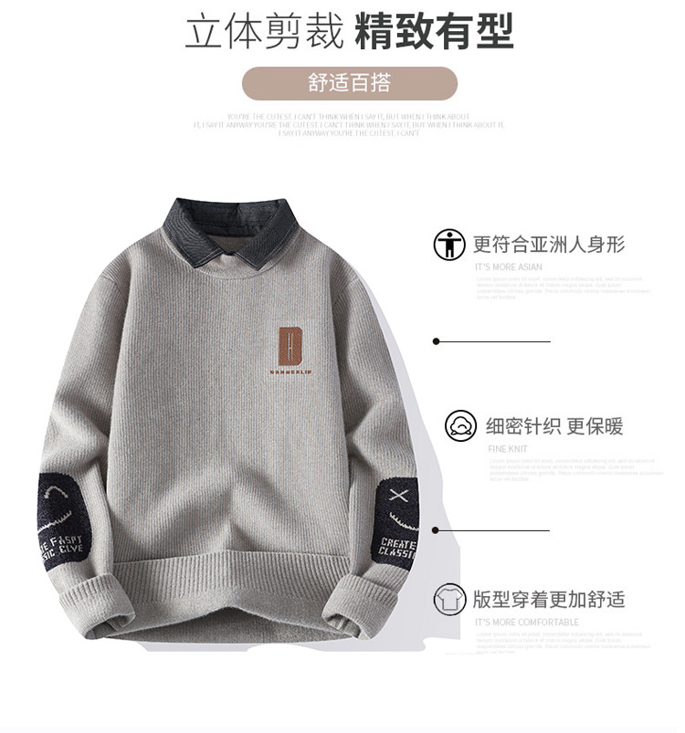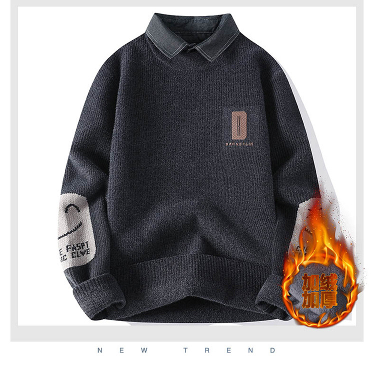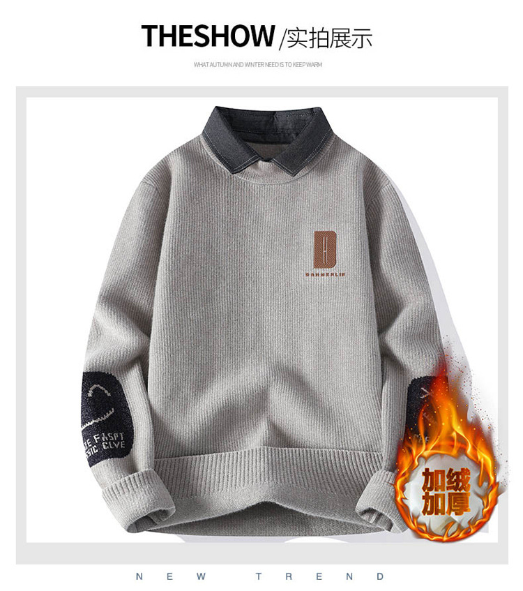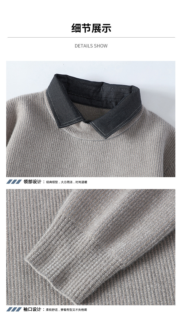 男士冬季雪貂绒潮牌NASA假两件衬衫领毛衣针织衫毛线衣男加厚加绒