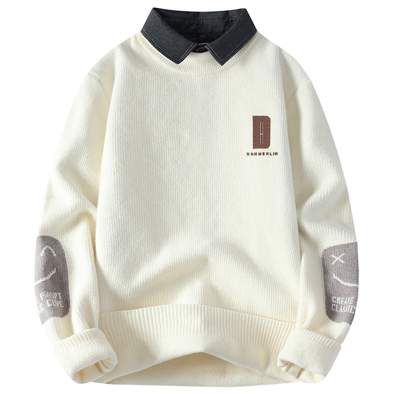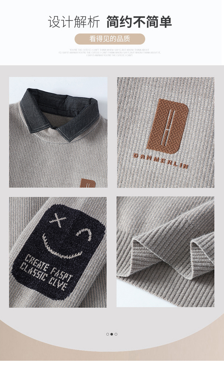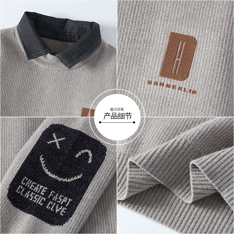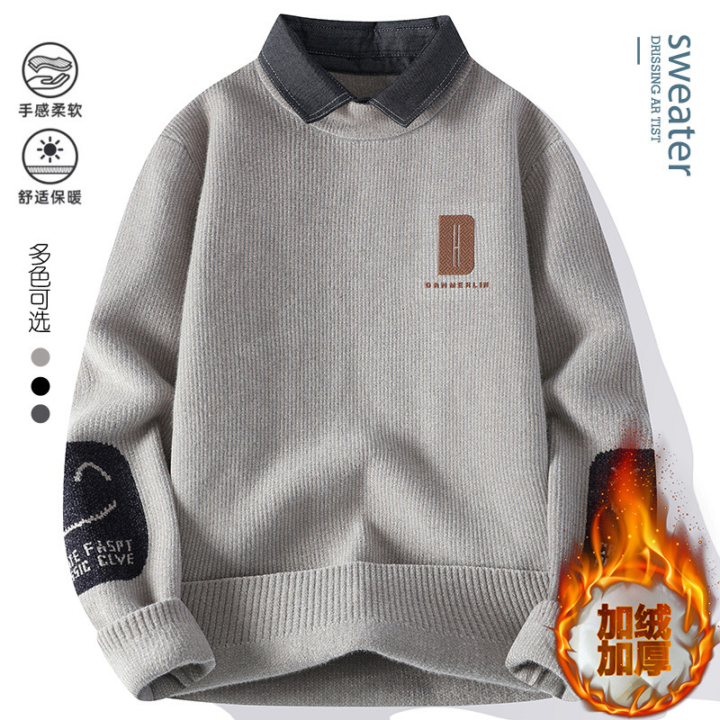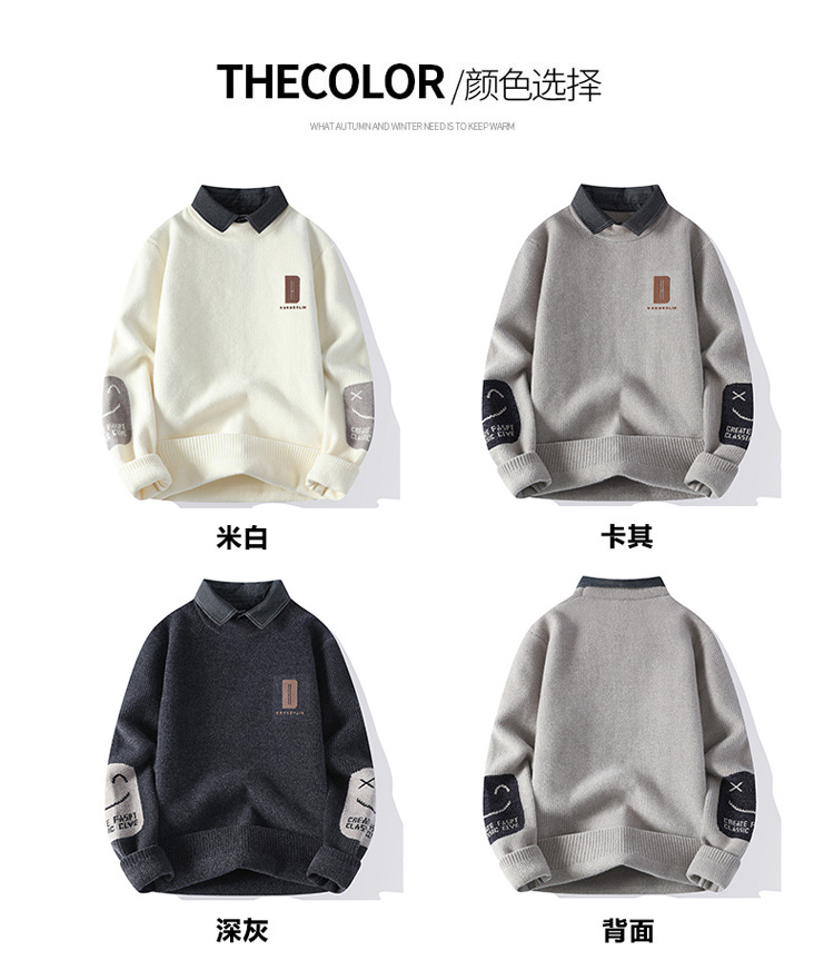 男士冬季雪貂绒潮牌NASA假两件衬衫领毛衣针织衫毛线衣男加厚加绒