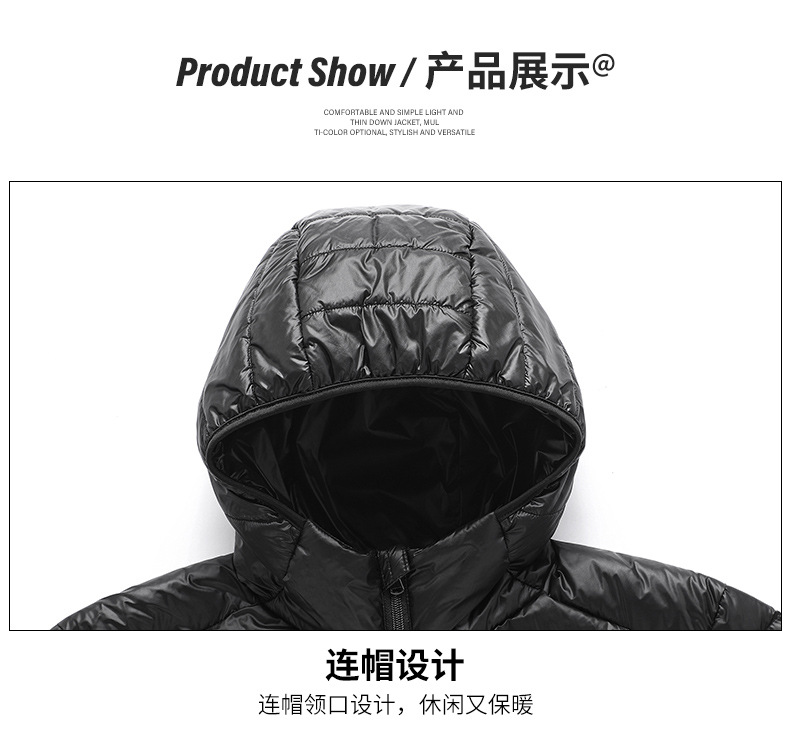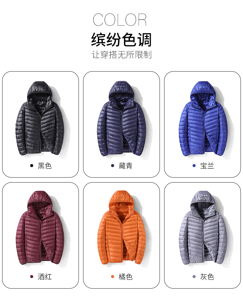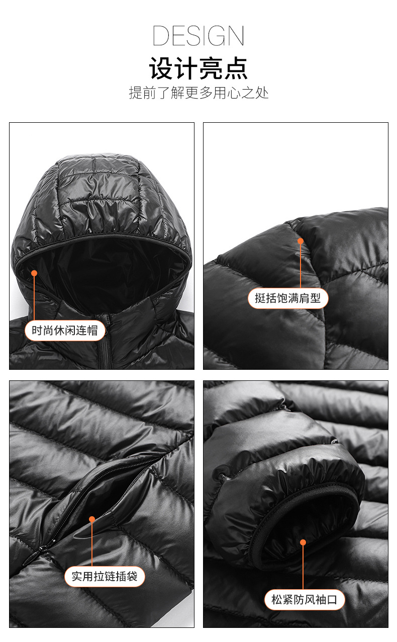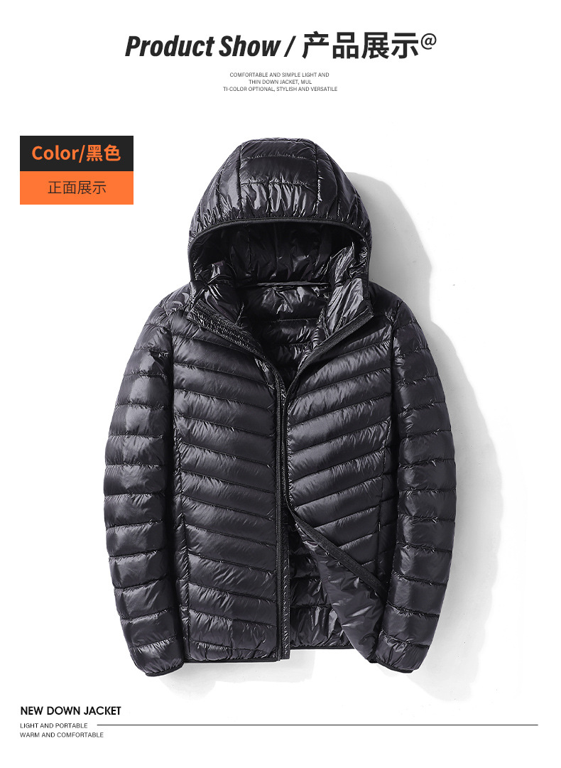 男士90白鸭绒羽绒服外套潮牌秋冬季连帽薄款保暖大码上衣短款外套