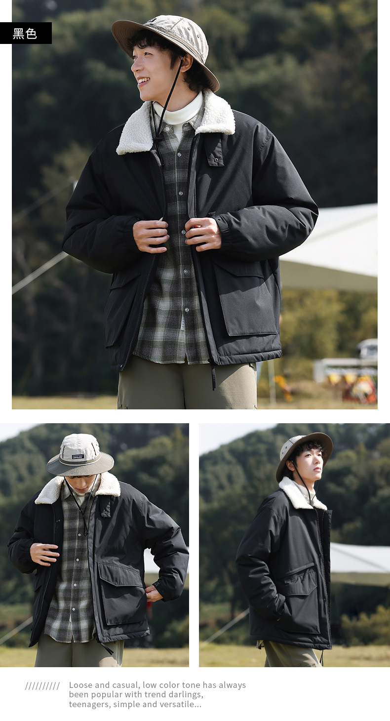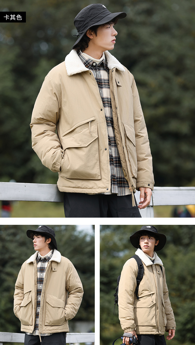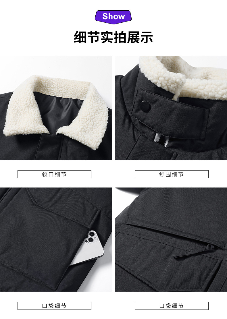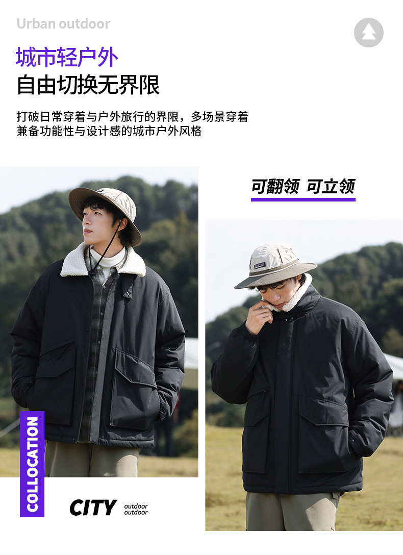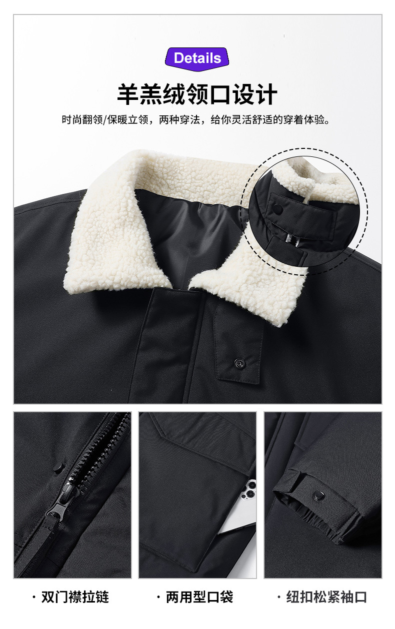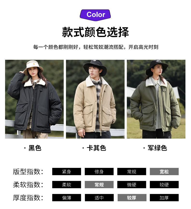 冬季棉衣男女情侣爆款潮牌纯色可二开印花翻领羊羔绒工装休闲棉服