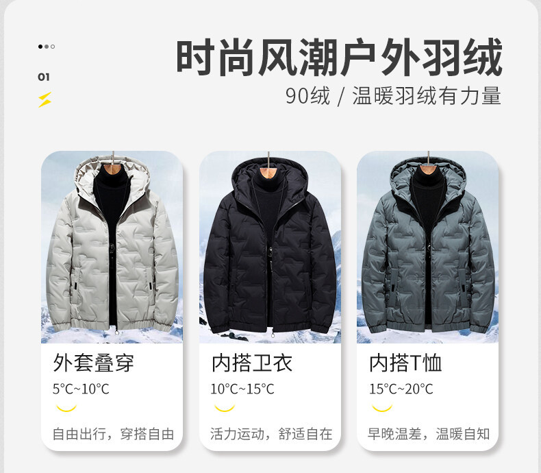 男士轻薄羽绒服新款冬装学生青年修身连帽潮流时尚男装白鸭绒外套