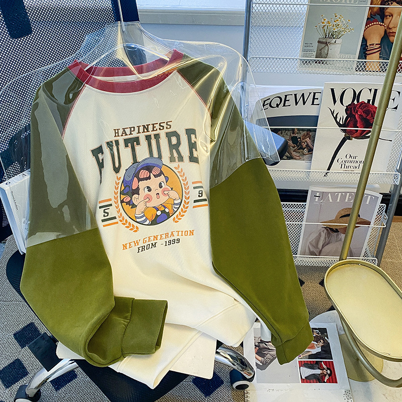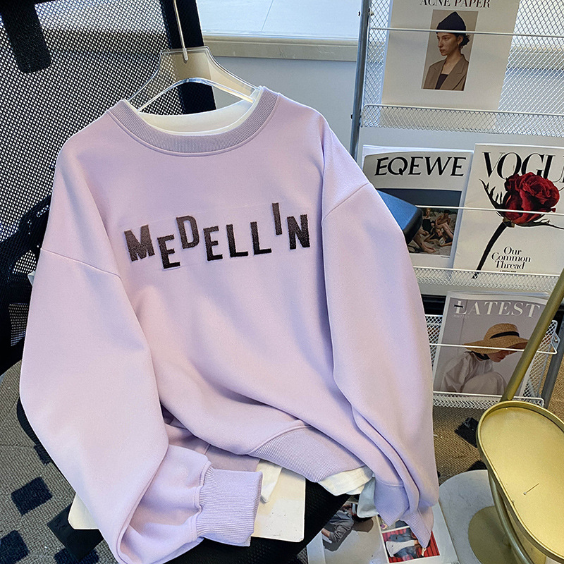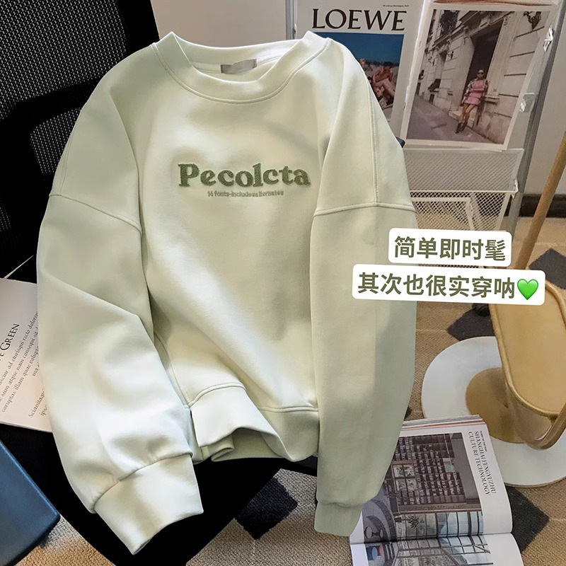 秋冬女式卫衣加绒圆领卫衣女款厚假两件长袖气质宽松大码女装衣服