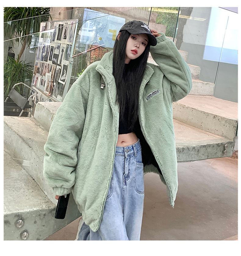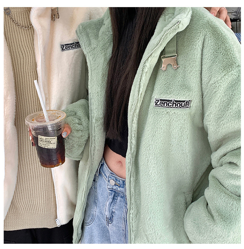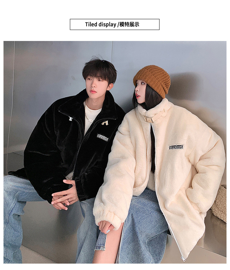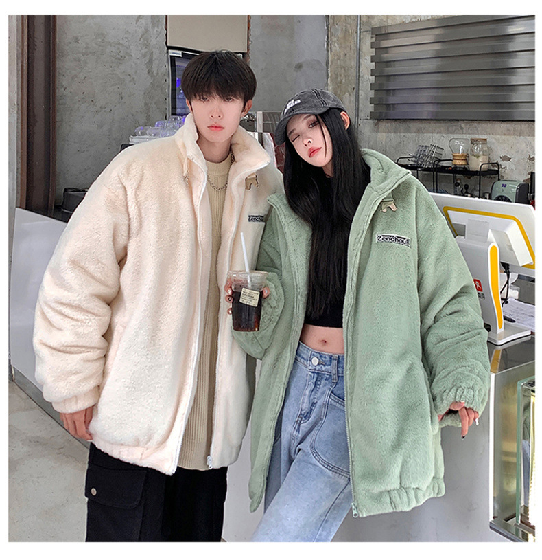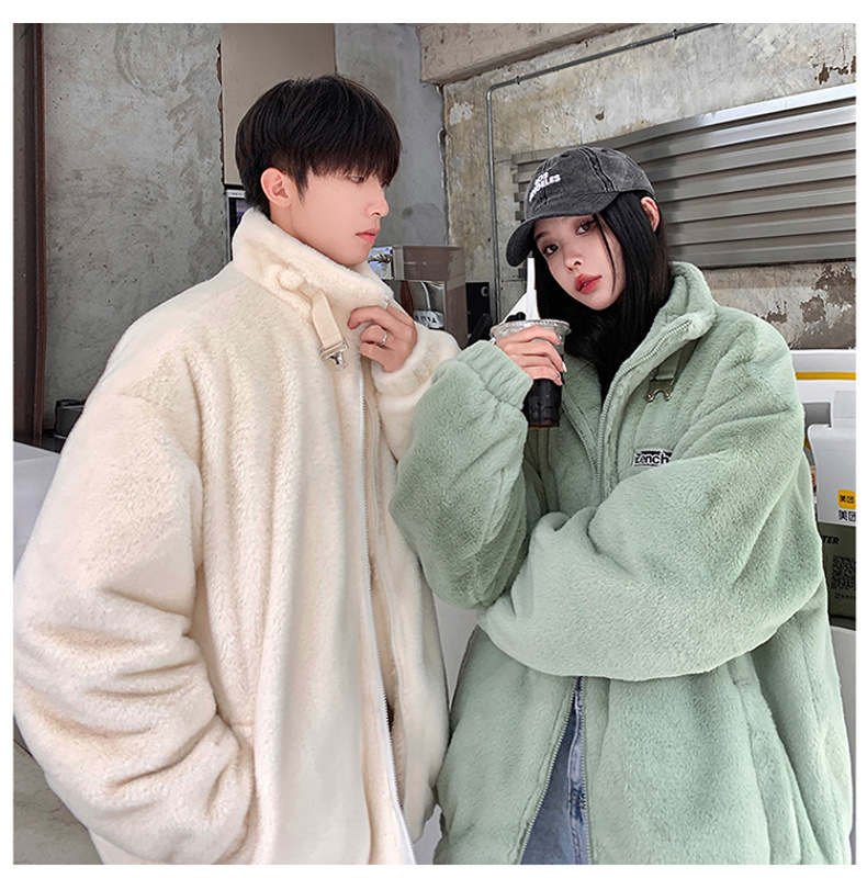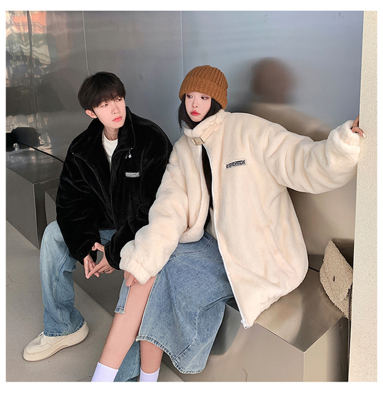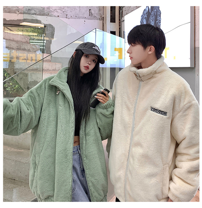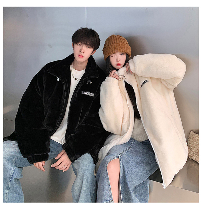 仿兔毛绒抓绒外套男2023冬季新款摇粒绒宽松休闲卫衣刺绣纯色棉服