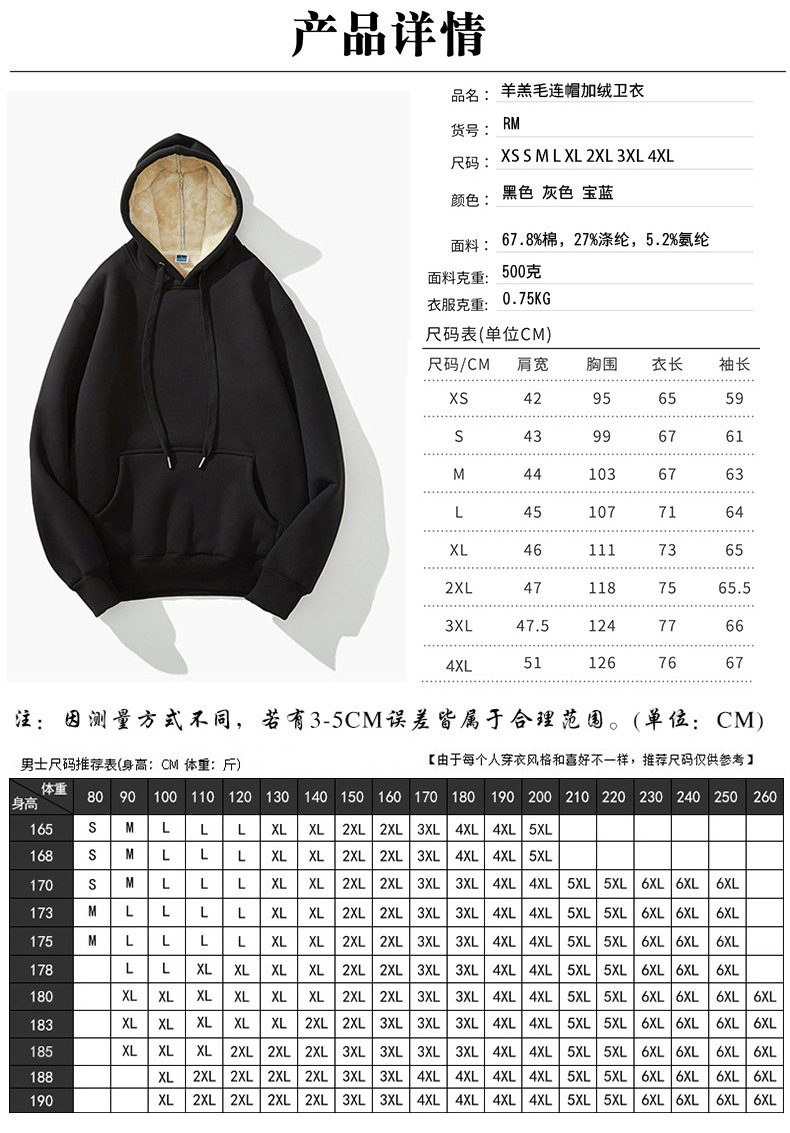 2023冬季新款 羊羔绒卫衣男套头外套宽松连帽上衣加绒加厚RM000