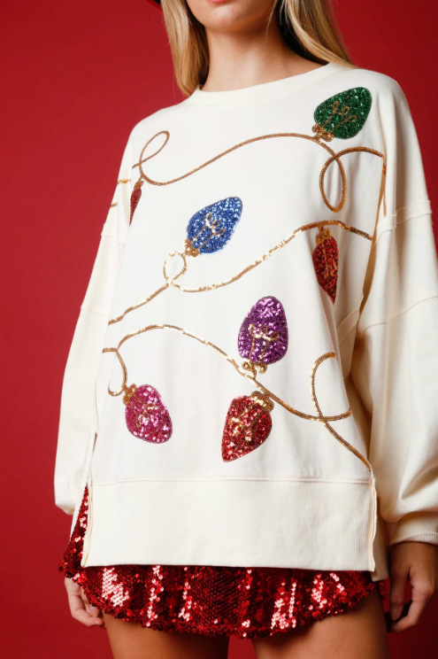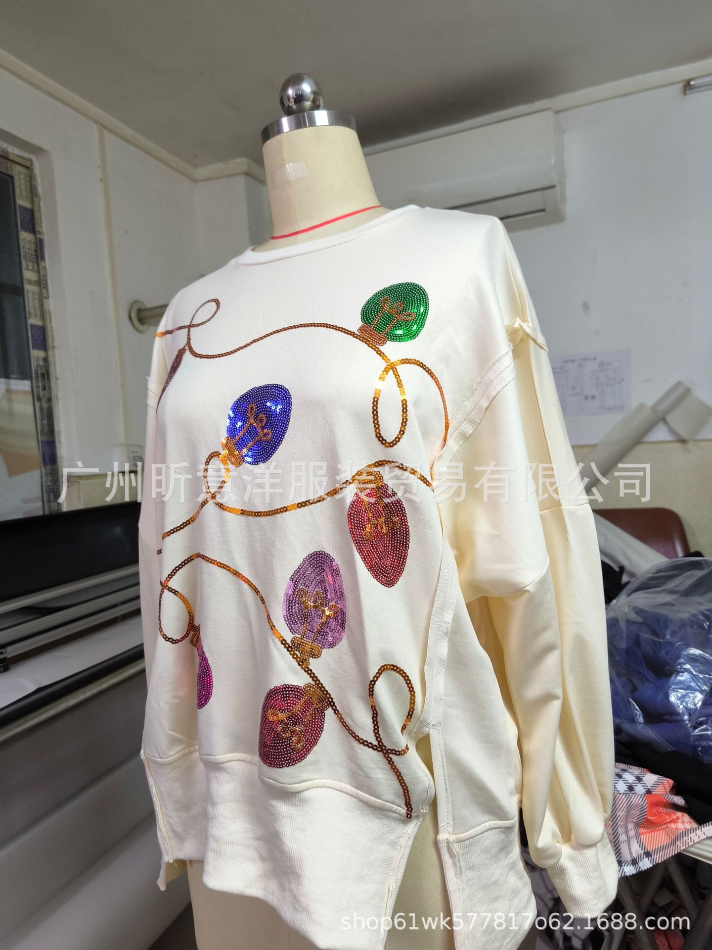 2023独立站秋冬新款亚马逊跨境欧美女装圣诞节亮片长袖套头卫衣女