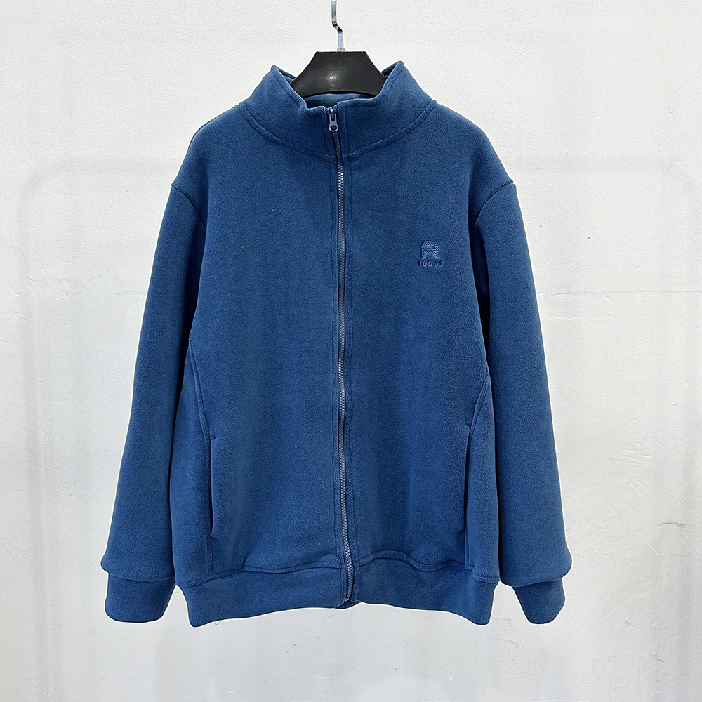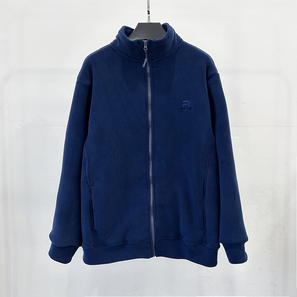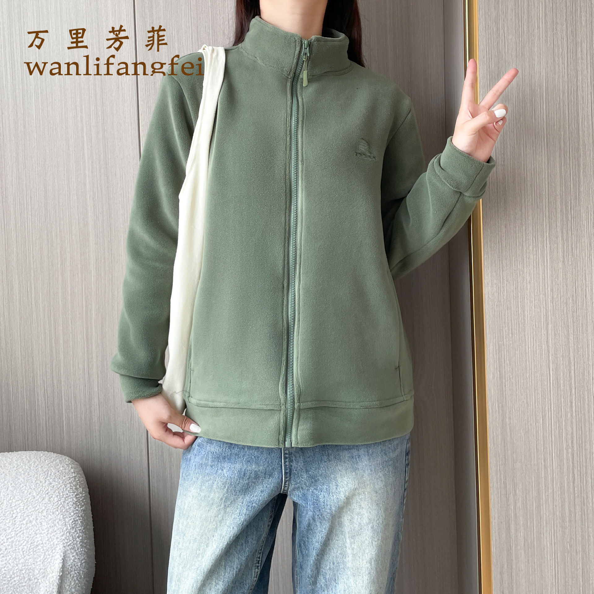 秋冬女装加厚卫衣奥利绒纯色绣花立领外穿拉链开衫男女同款外套