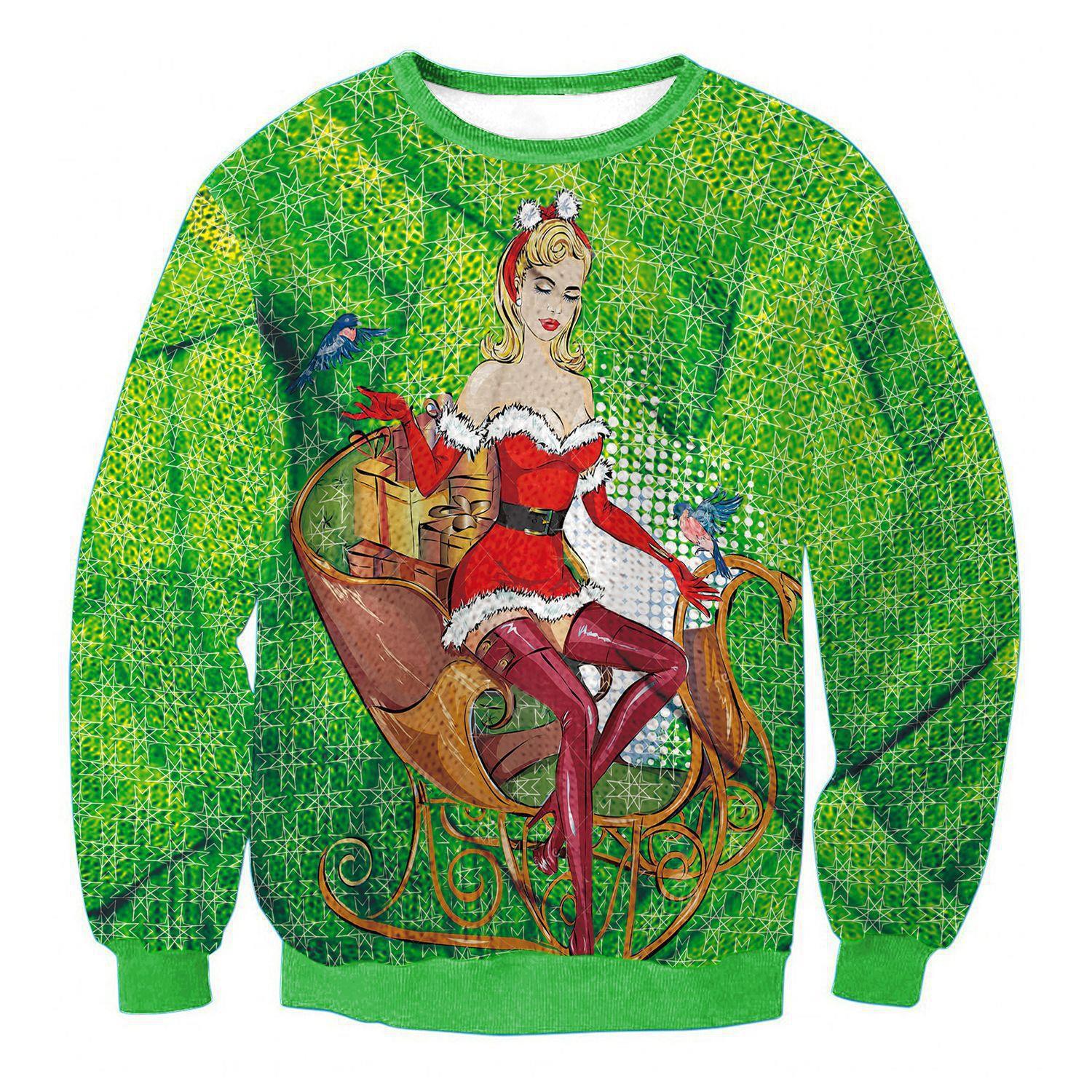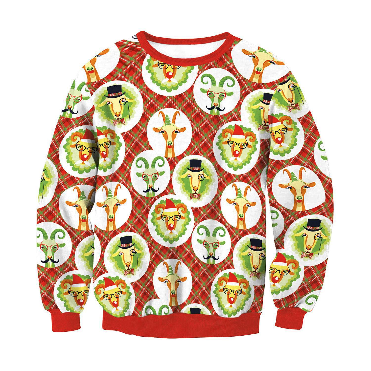 欧美跨境电商货源 3D数码印花 圣诞节圆领卫衣套头假两件领带卫衣