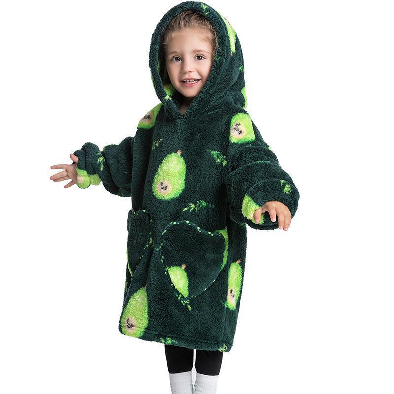 毛毯连帽衫可穿戴毛毯北极熊牛油果超 大号保暖套头衫懒人卫衣小