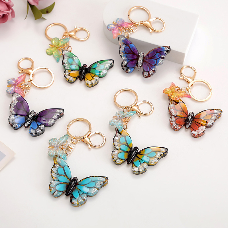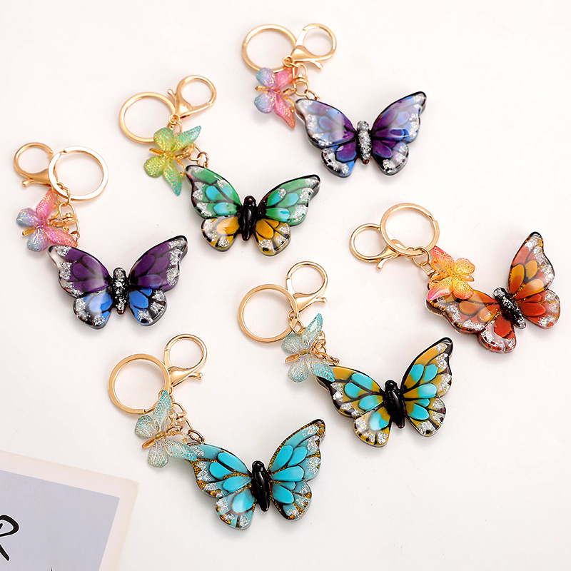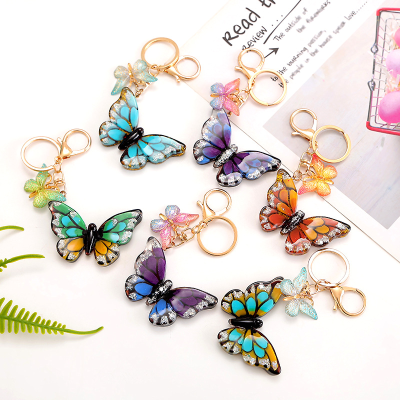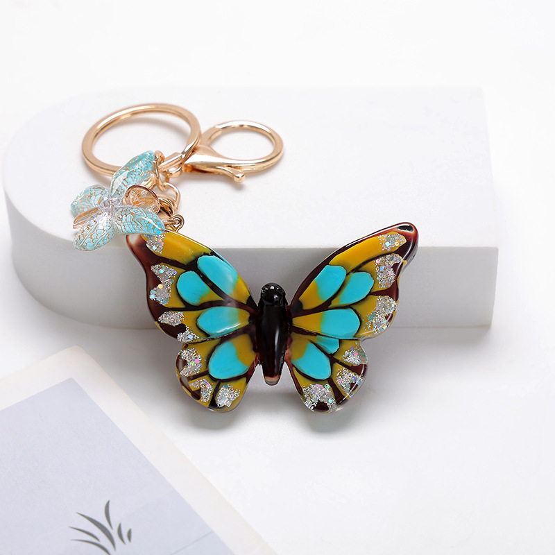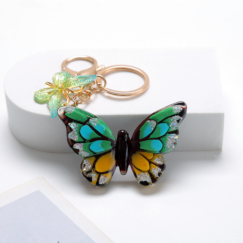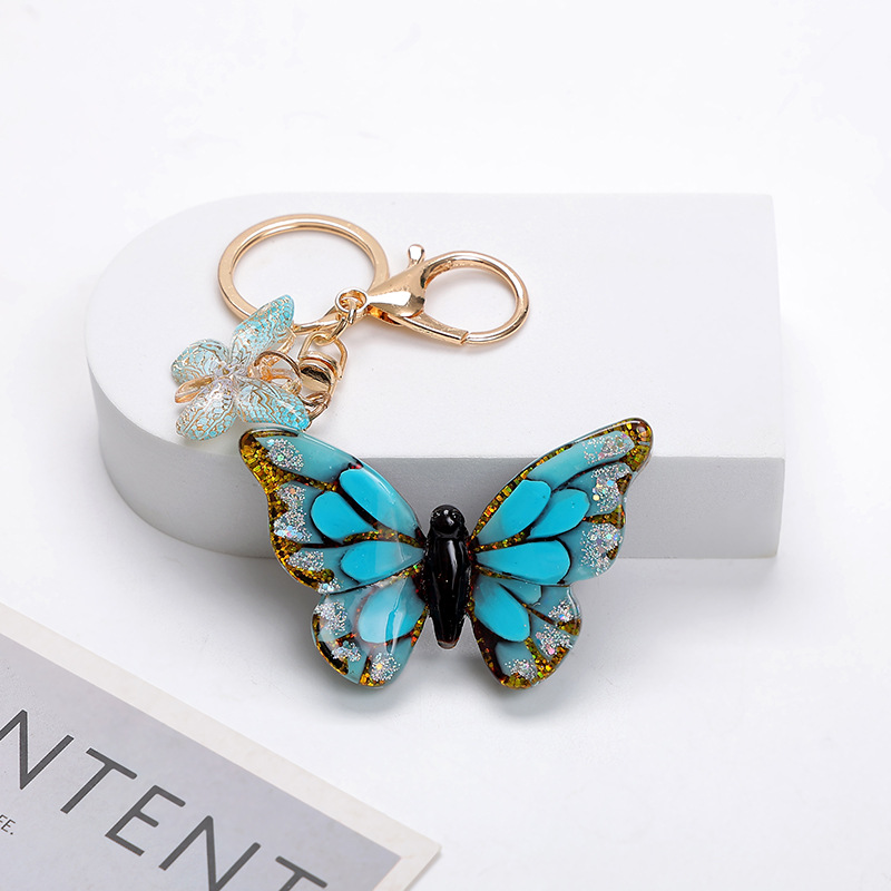 高级感手工水晶挂件蝴蝶滴胶钥匙扣包包装饰品立体彩色钥匙链礼品