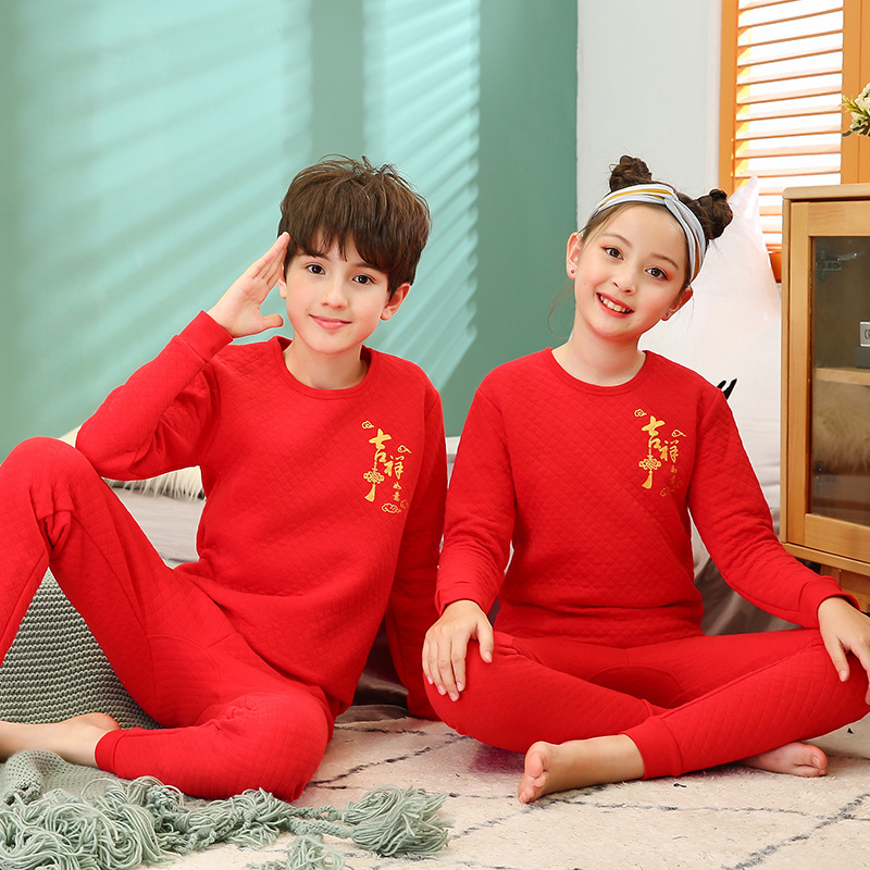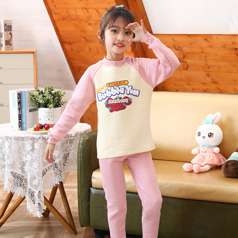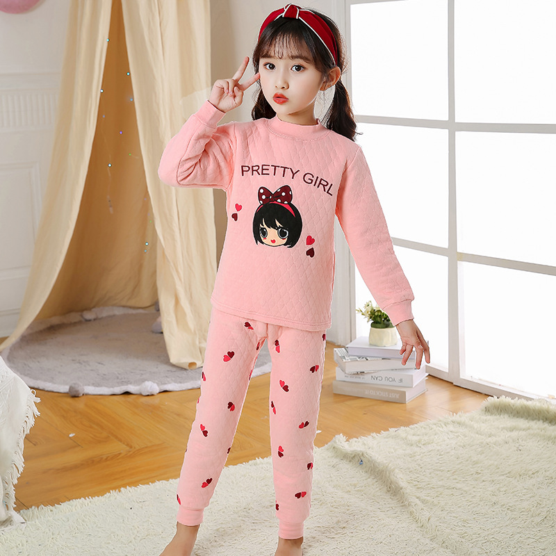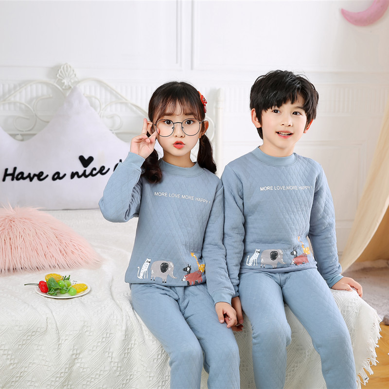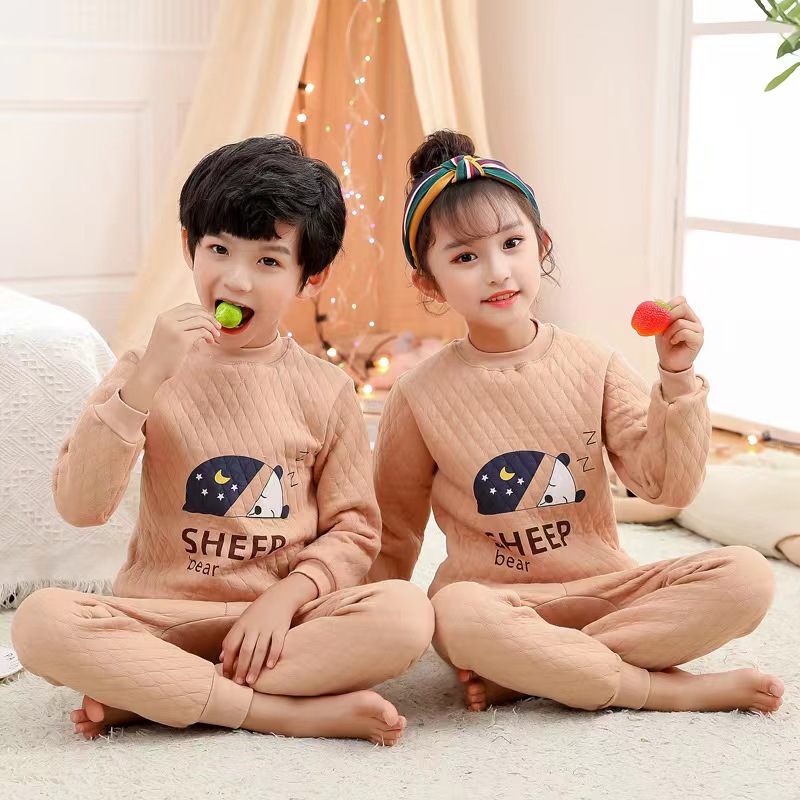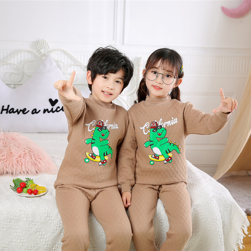 秋冬套装儿童保暖空心棉秋衣秋裤男女童加厚三层夹棉宝宝内衣套装