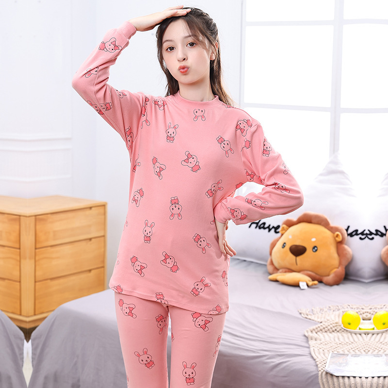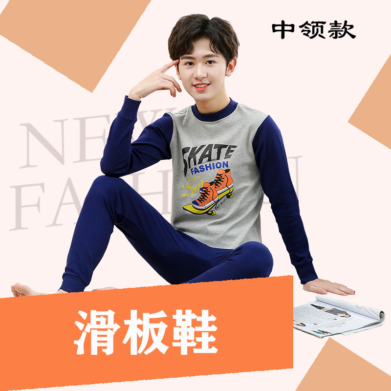 儿童秋衣秋裤青少年中领内衣套装男女孩保暖睡衣秋冬季棉毛衫宝宝