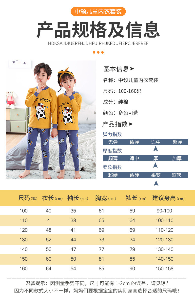 儿童秋衣秋裤中领男童女童内衣套装中小童棉毛衫睡衣套装