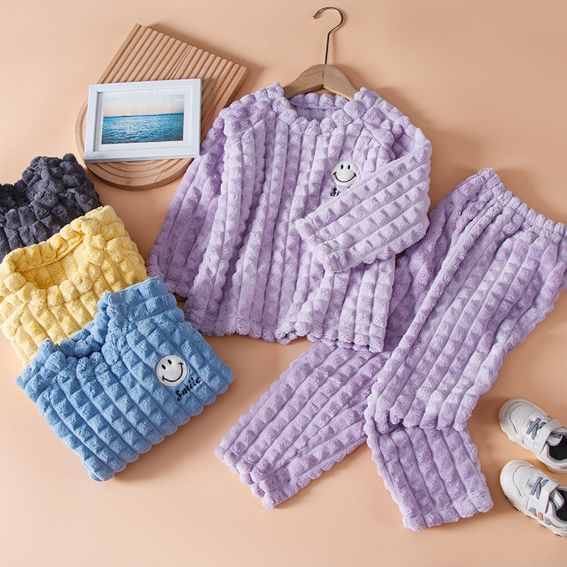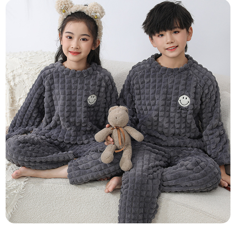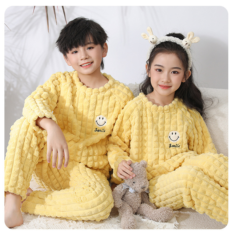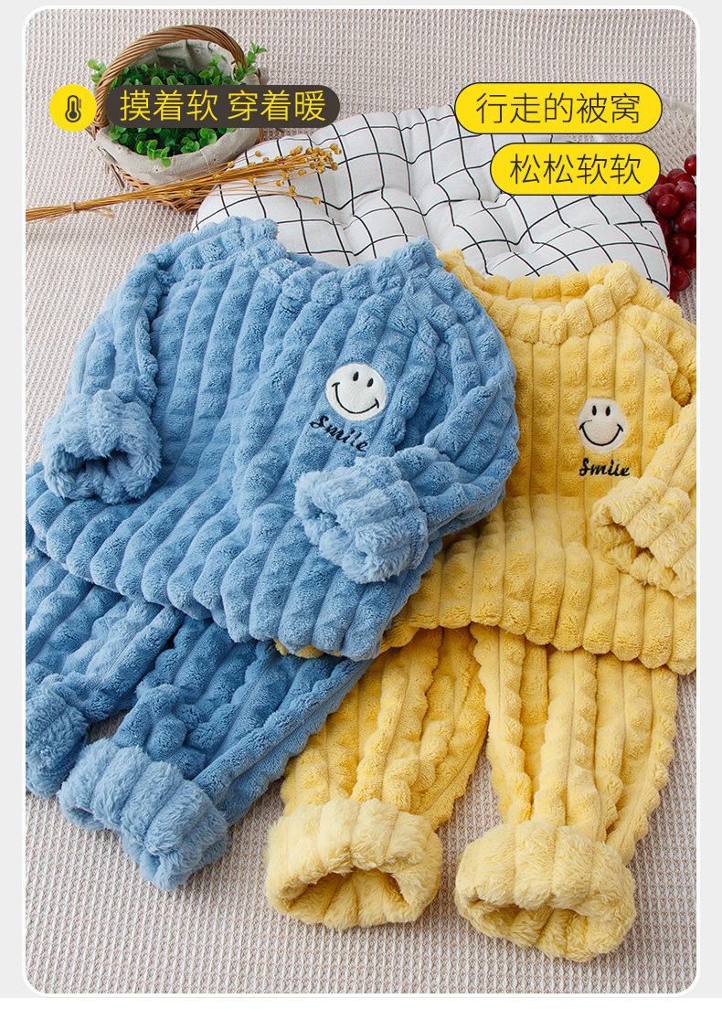 冬季儿童睡衣法兰绒家居服套装男女童保暖加绒睡衣套装宝宝外穿服