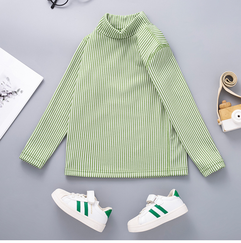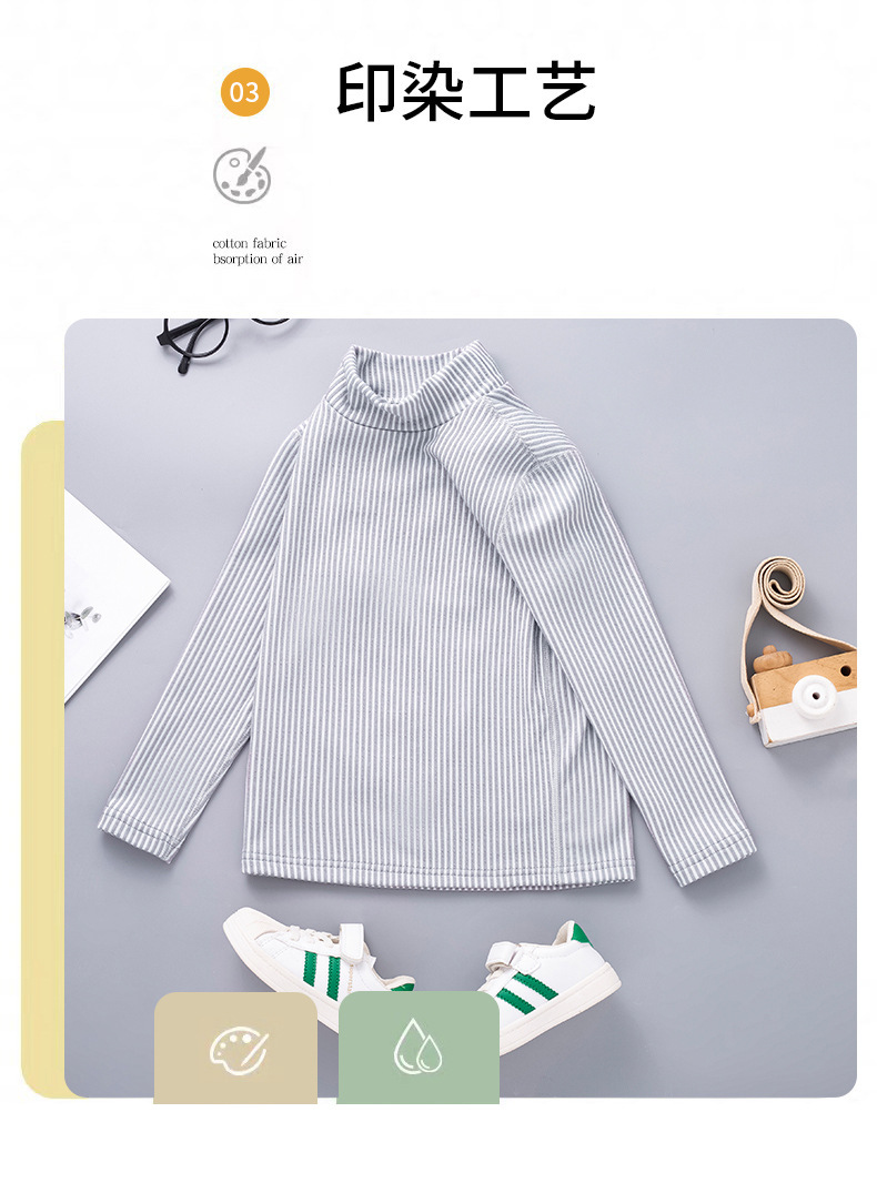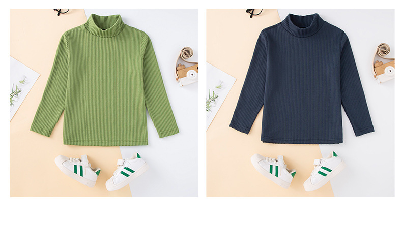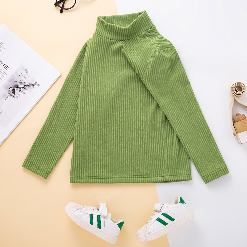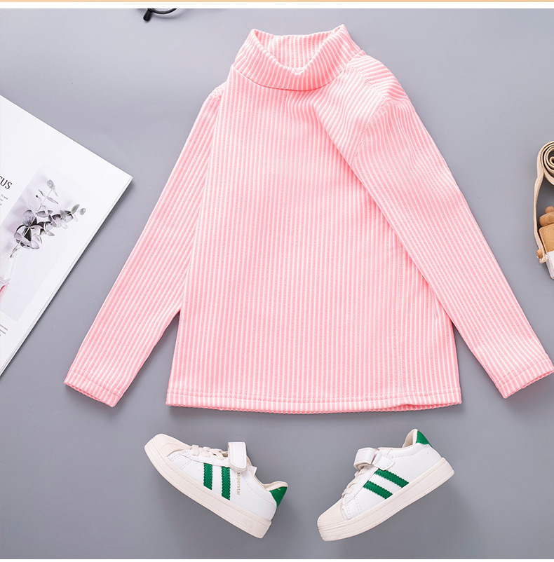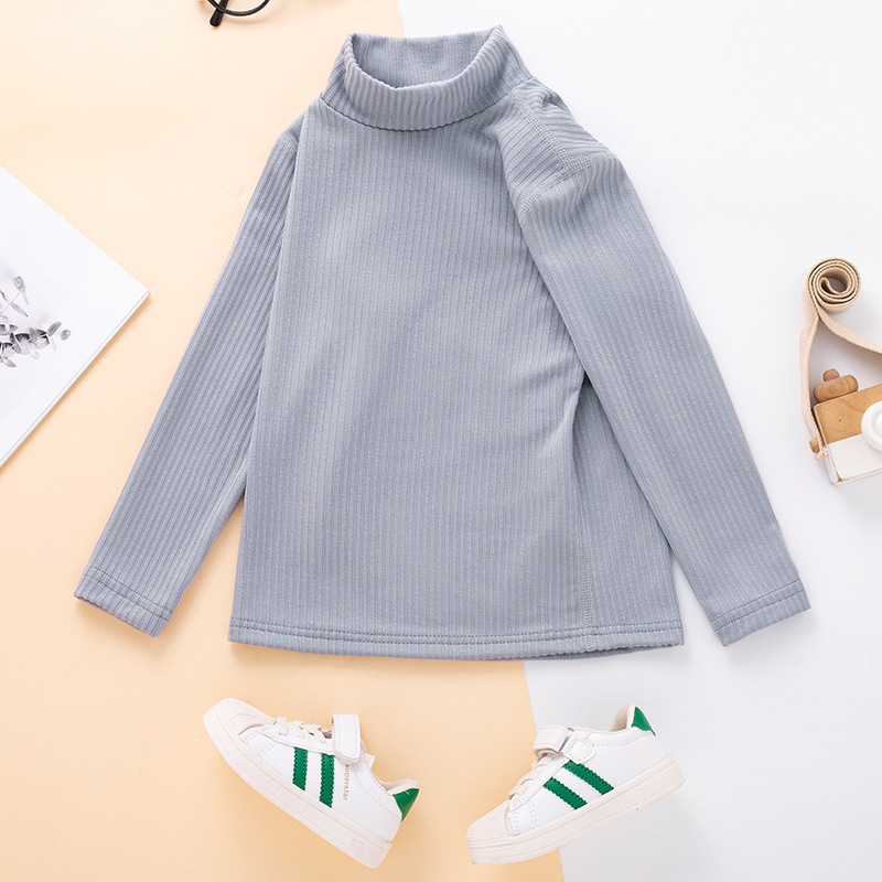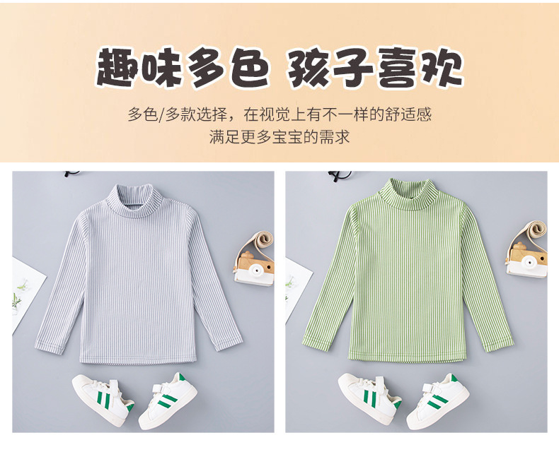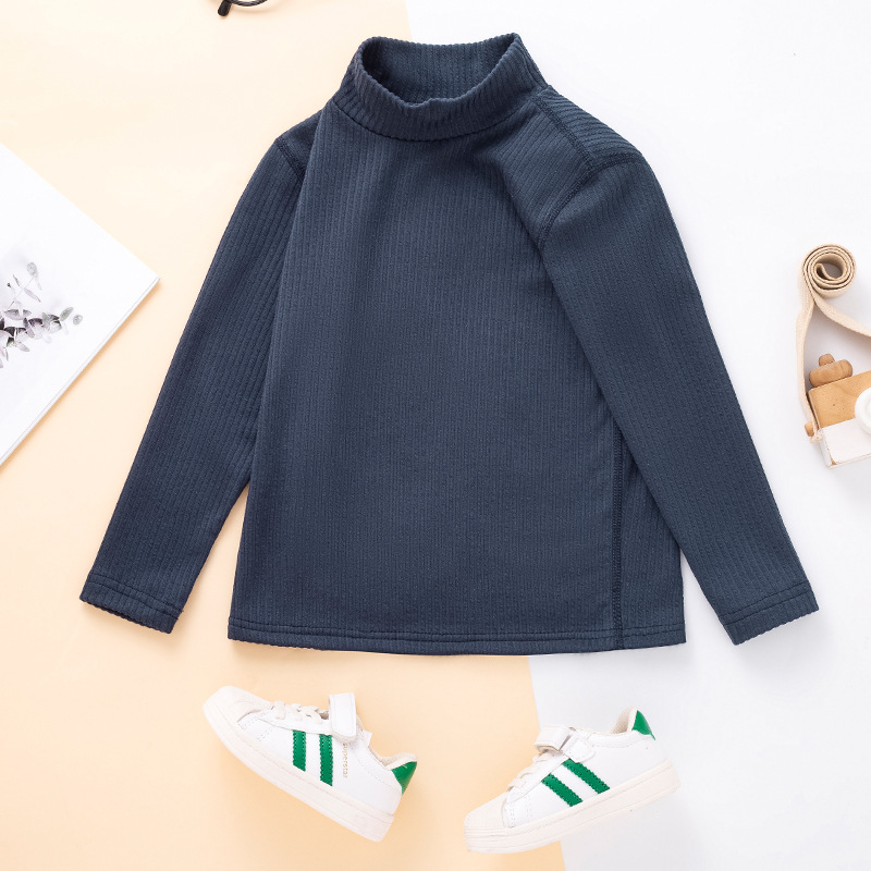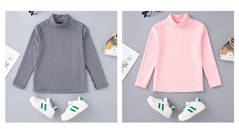 秋冬儿童纯色坑条中领磨毛保暖打底衫男女童休闲简约内搭长袖上衣