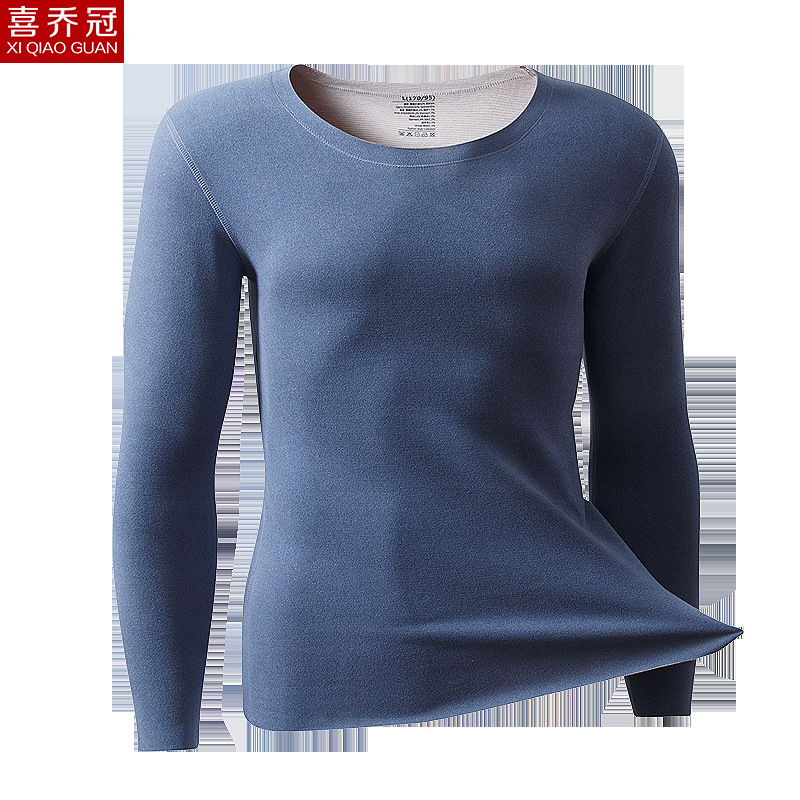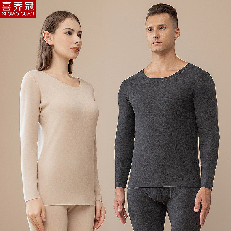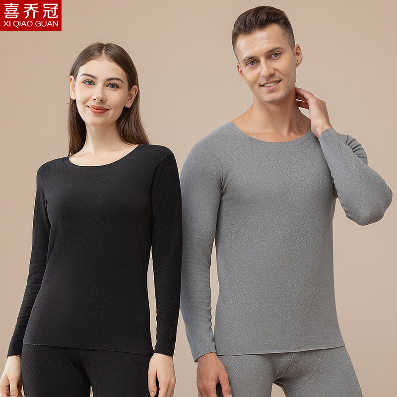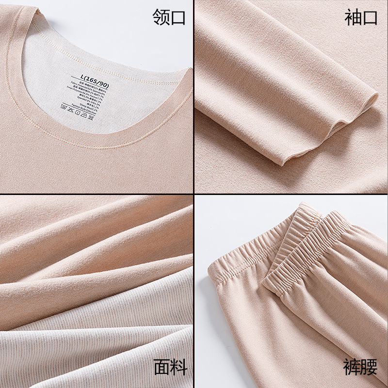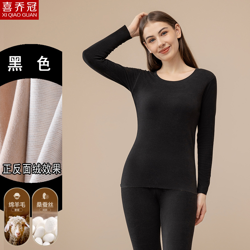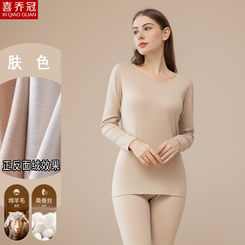新款羊毛桑蚕丝男士保暖内衣套装无痕圆领双面绒女秋衣秋裤打底衫