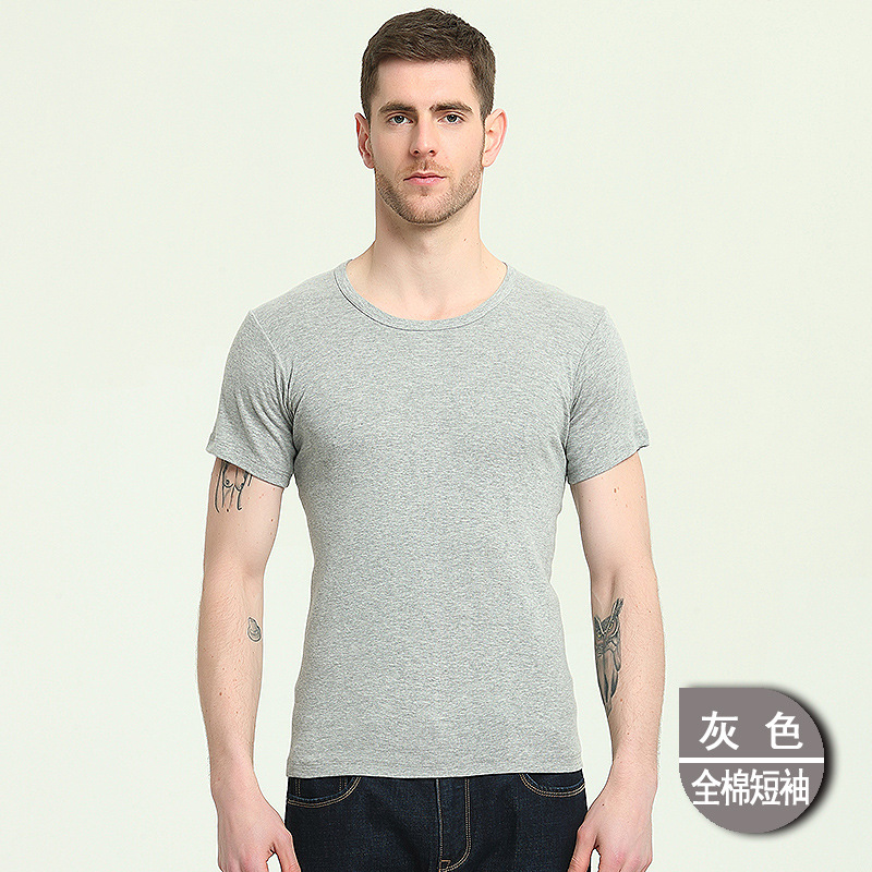 夏季男士新款短袖t恤纯棉V领薄款透气白色全棉中青年打底衬衫内搭