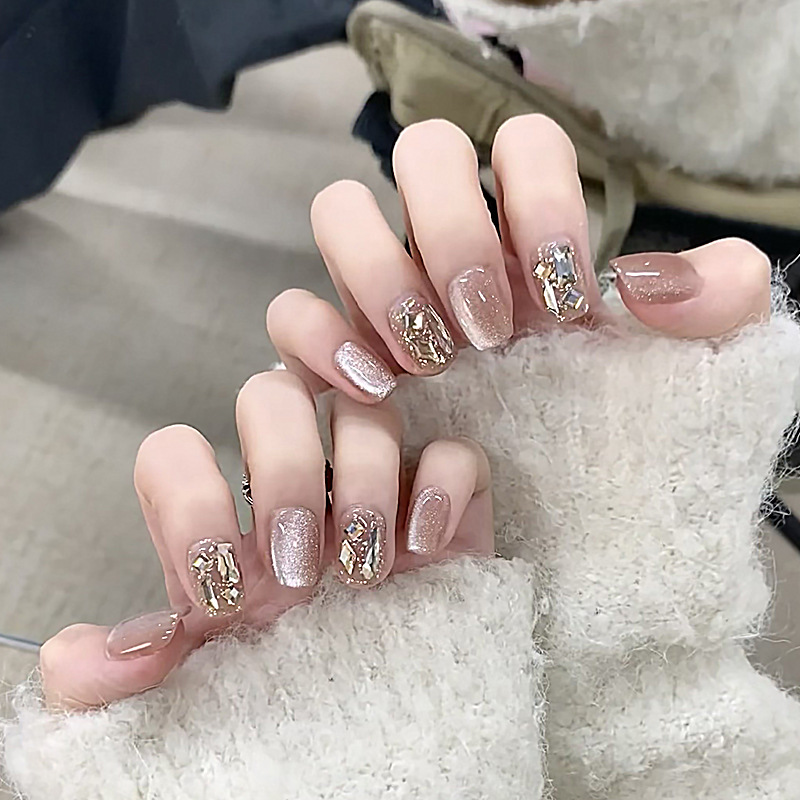 辣妹爆闪穿戴甲批发纯欲极光冰透甜酷穿戴美甲假指甲美甲贴片成品