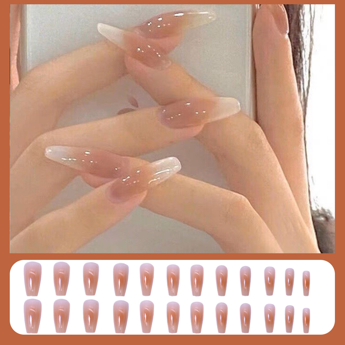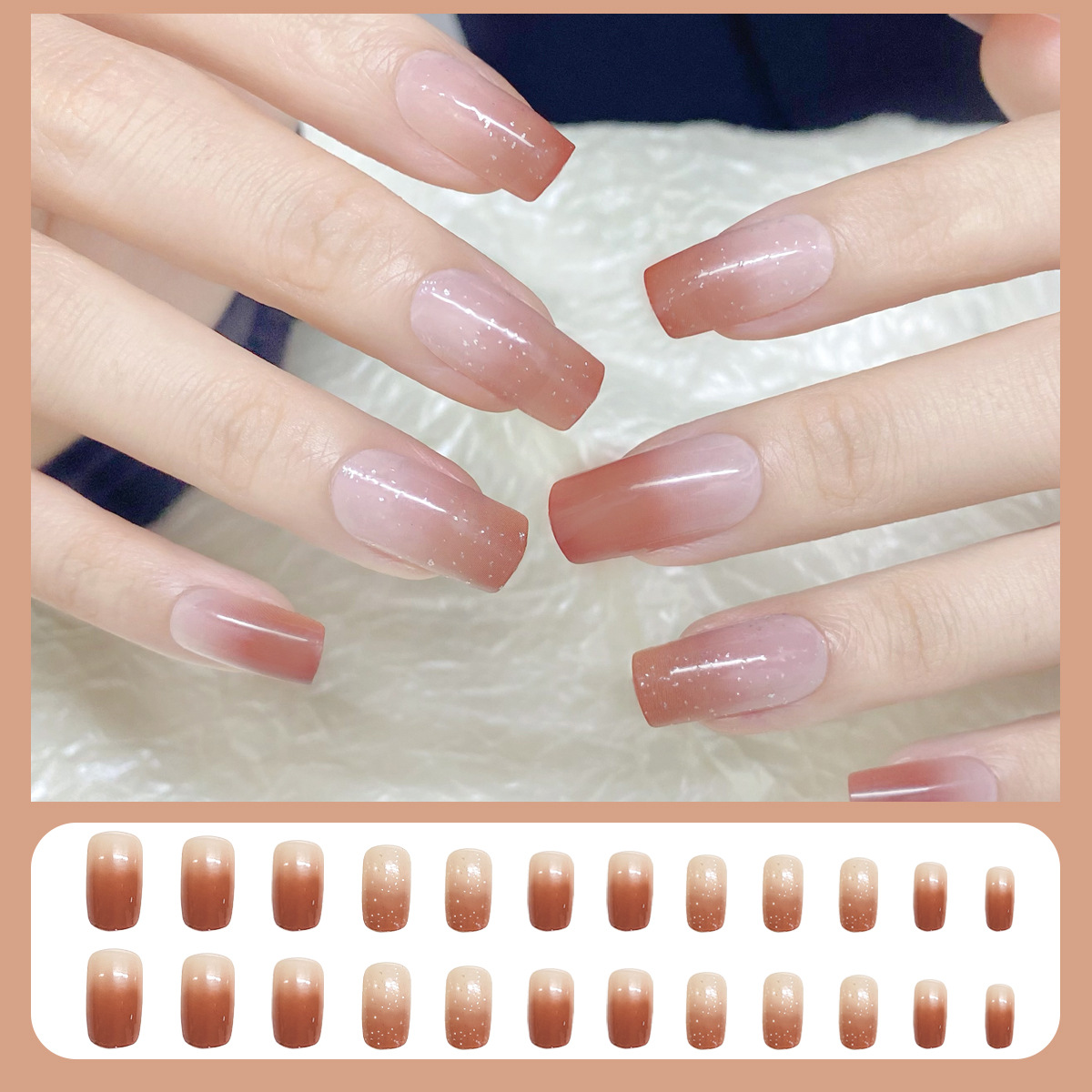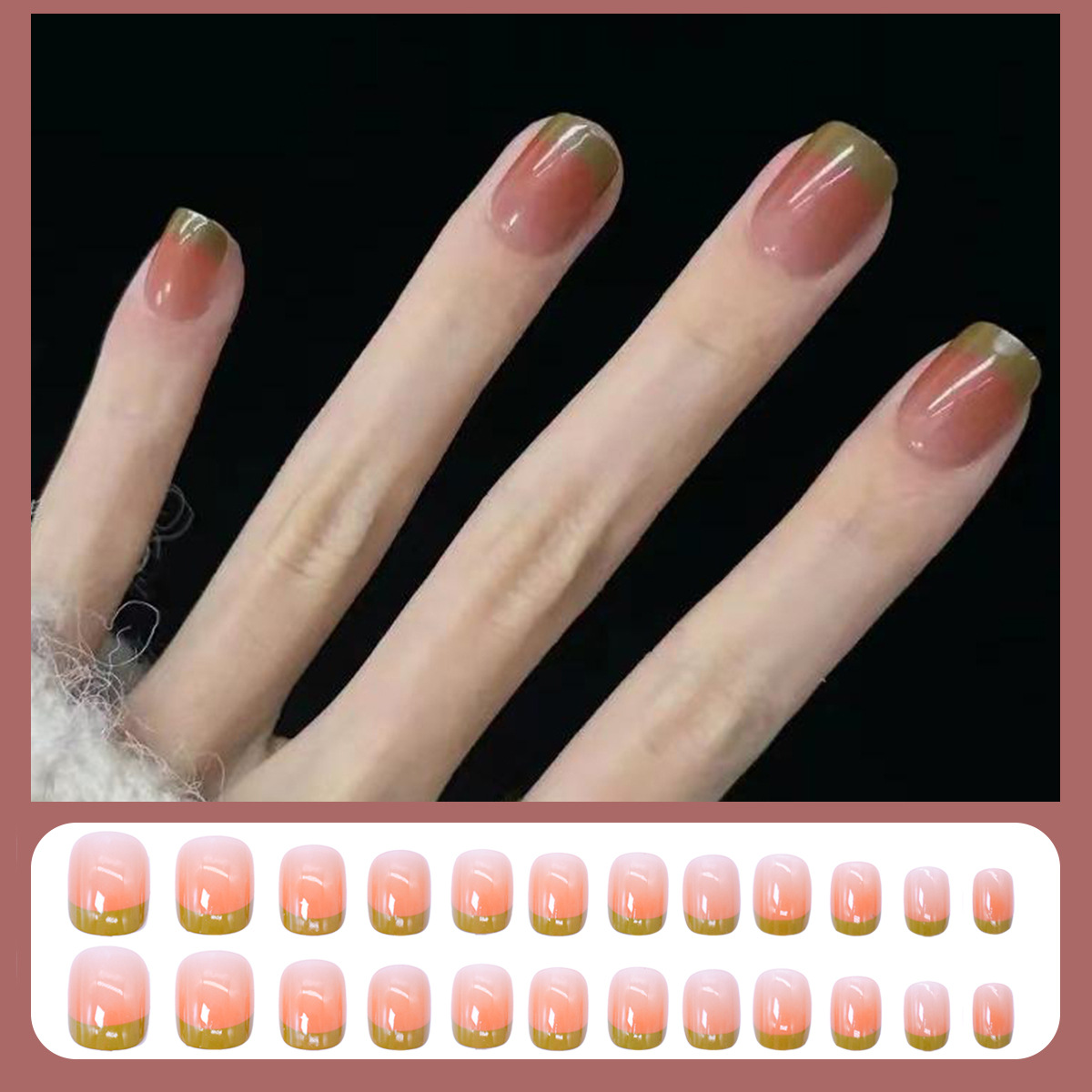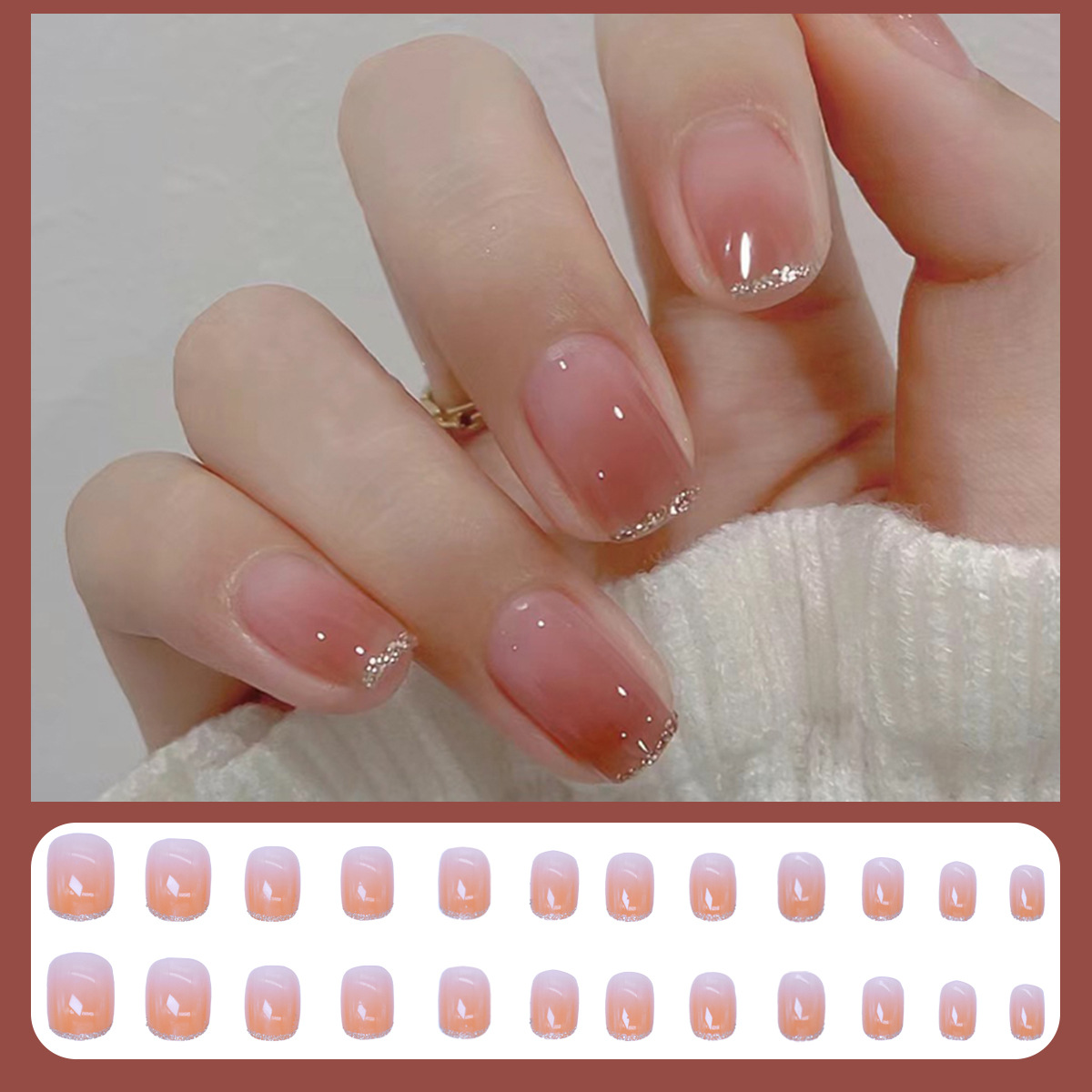 格纹穿戴甲甲片半成品冰透晕染腮红裸色美甲批发可拆卸甲片24片盒