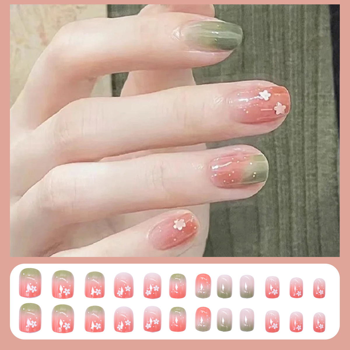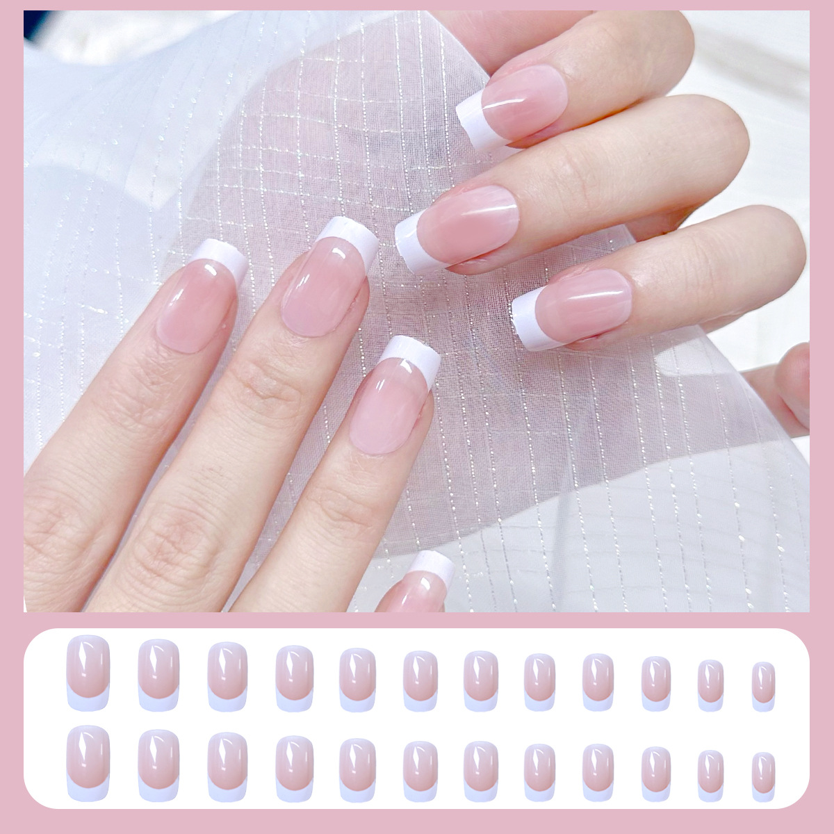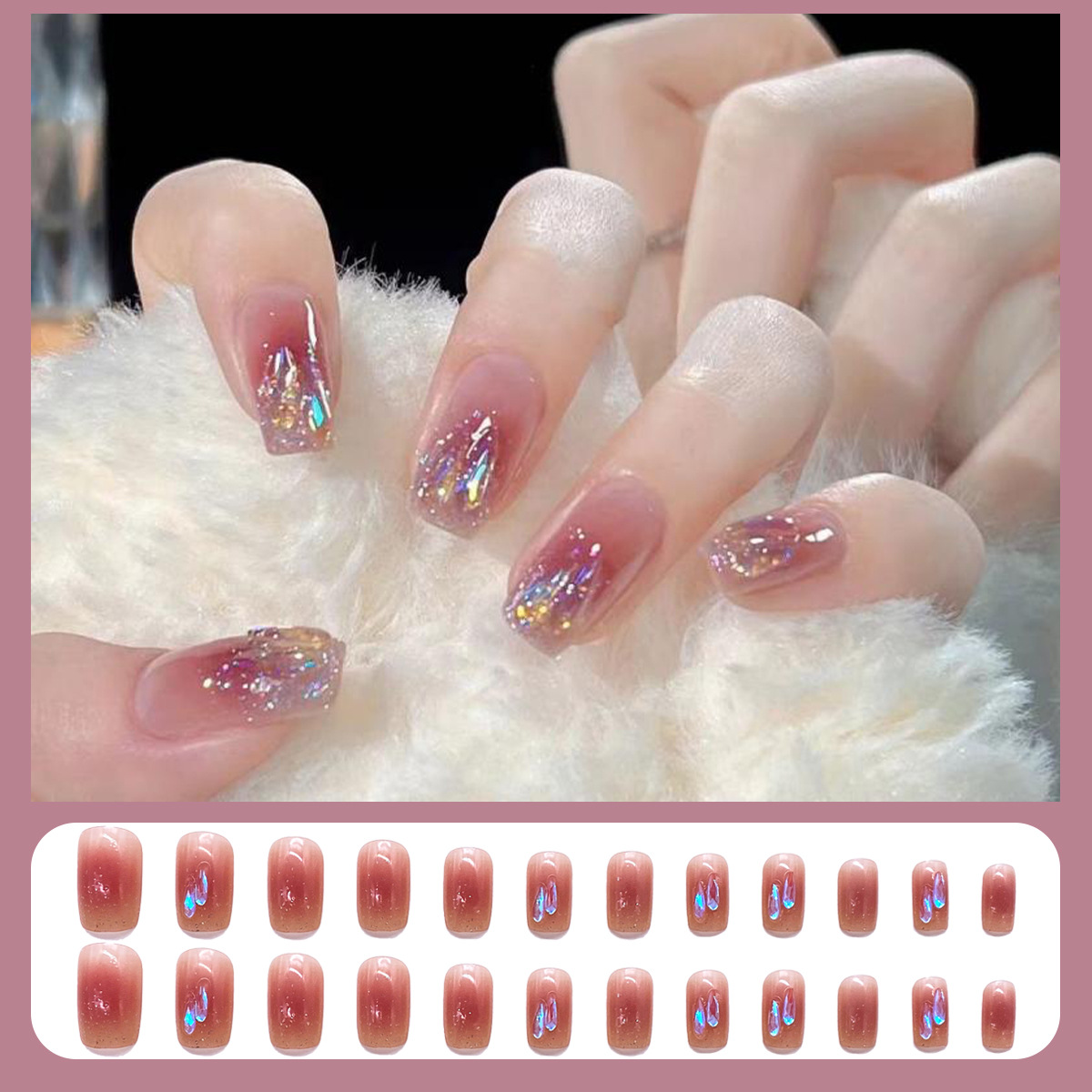 格纹穿戴甲甲片半成品冰透晕染腮红裸色美甲批发可拆卸甲片24片盒
