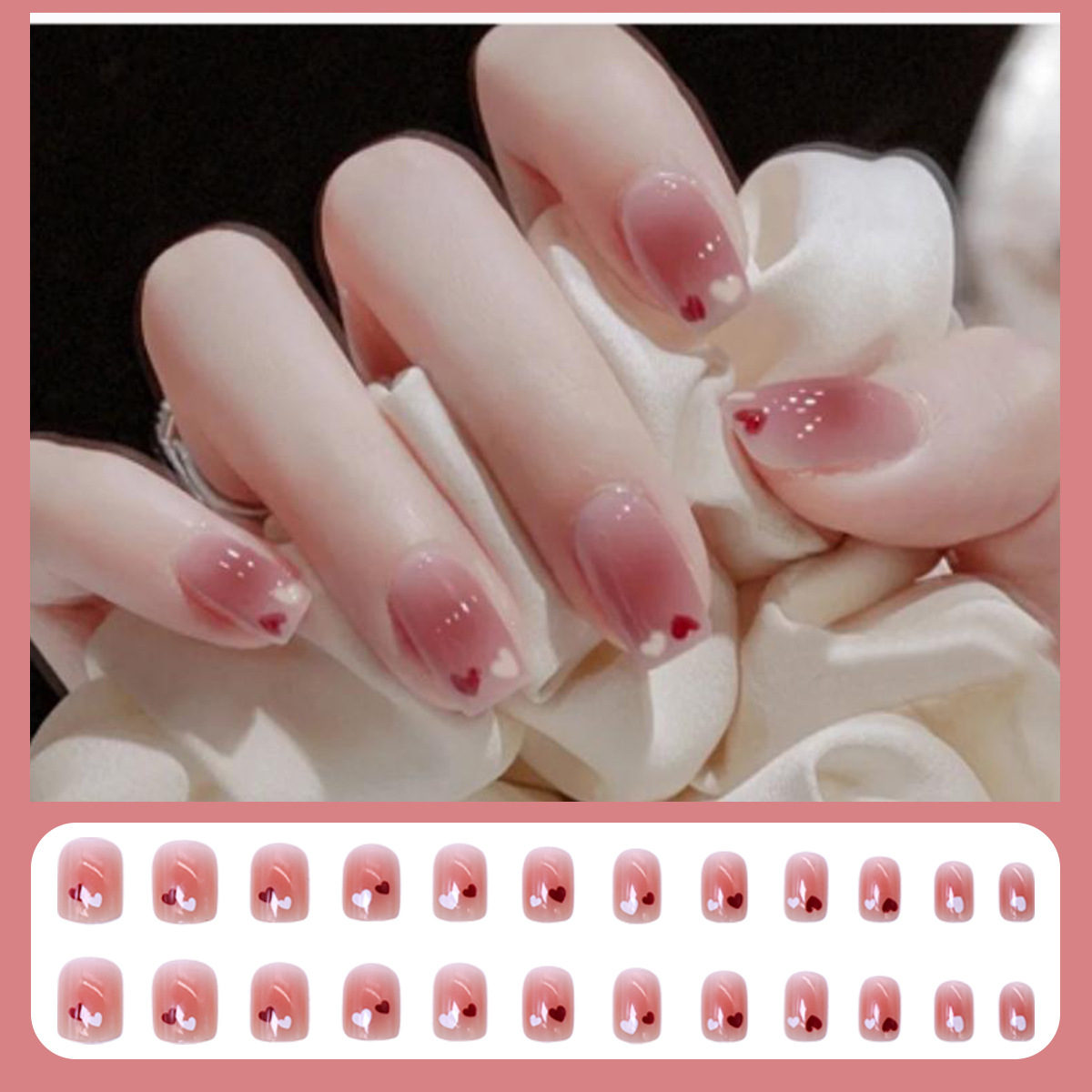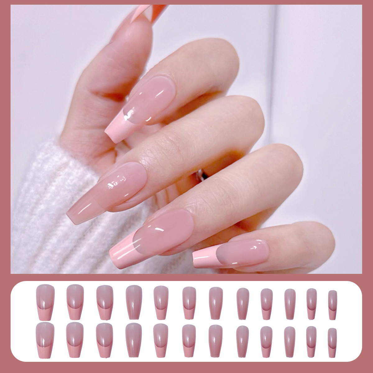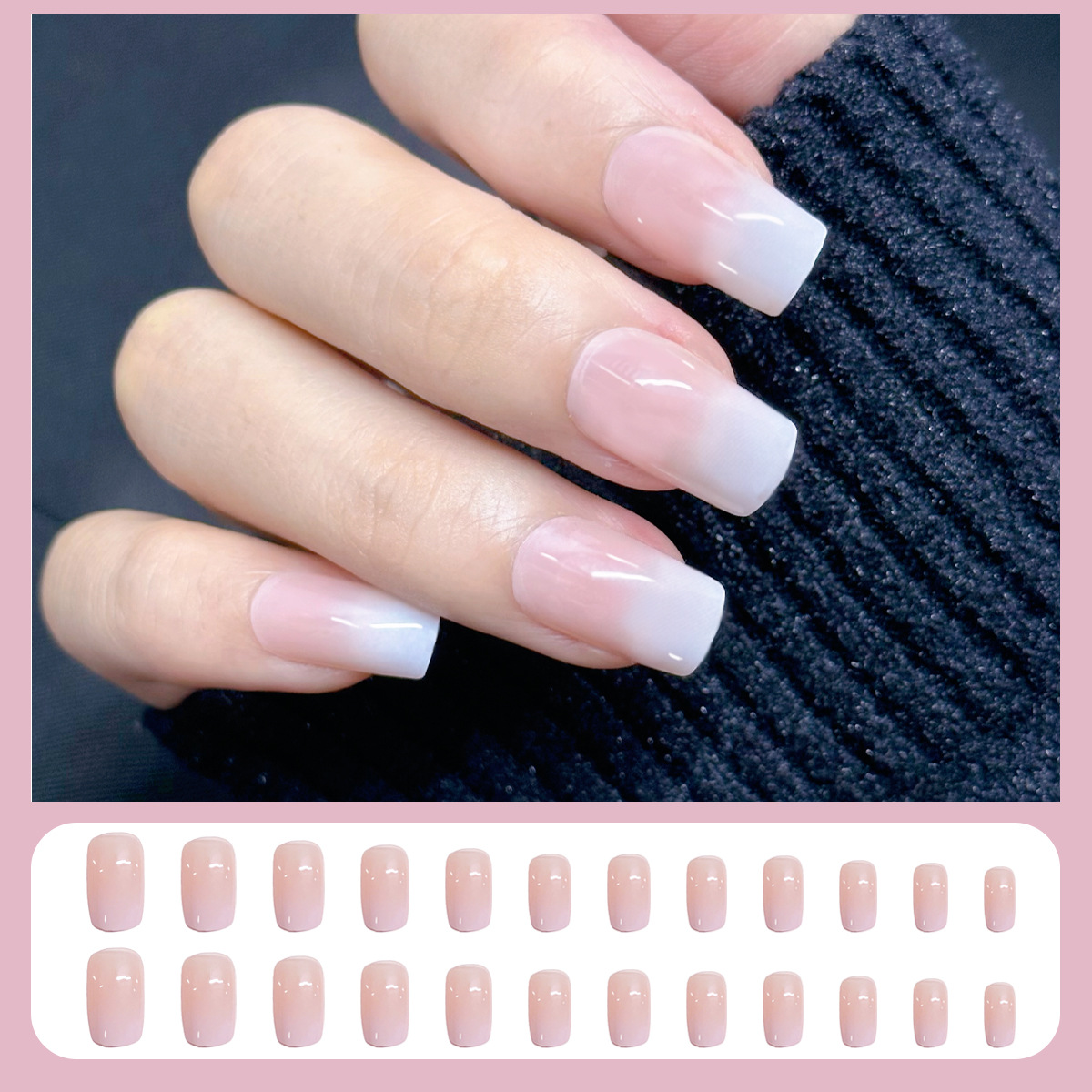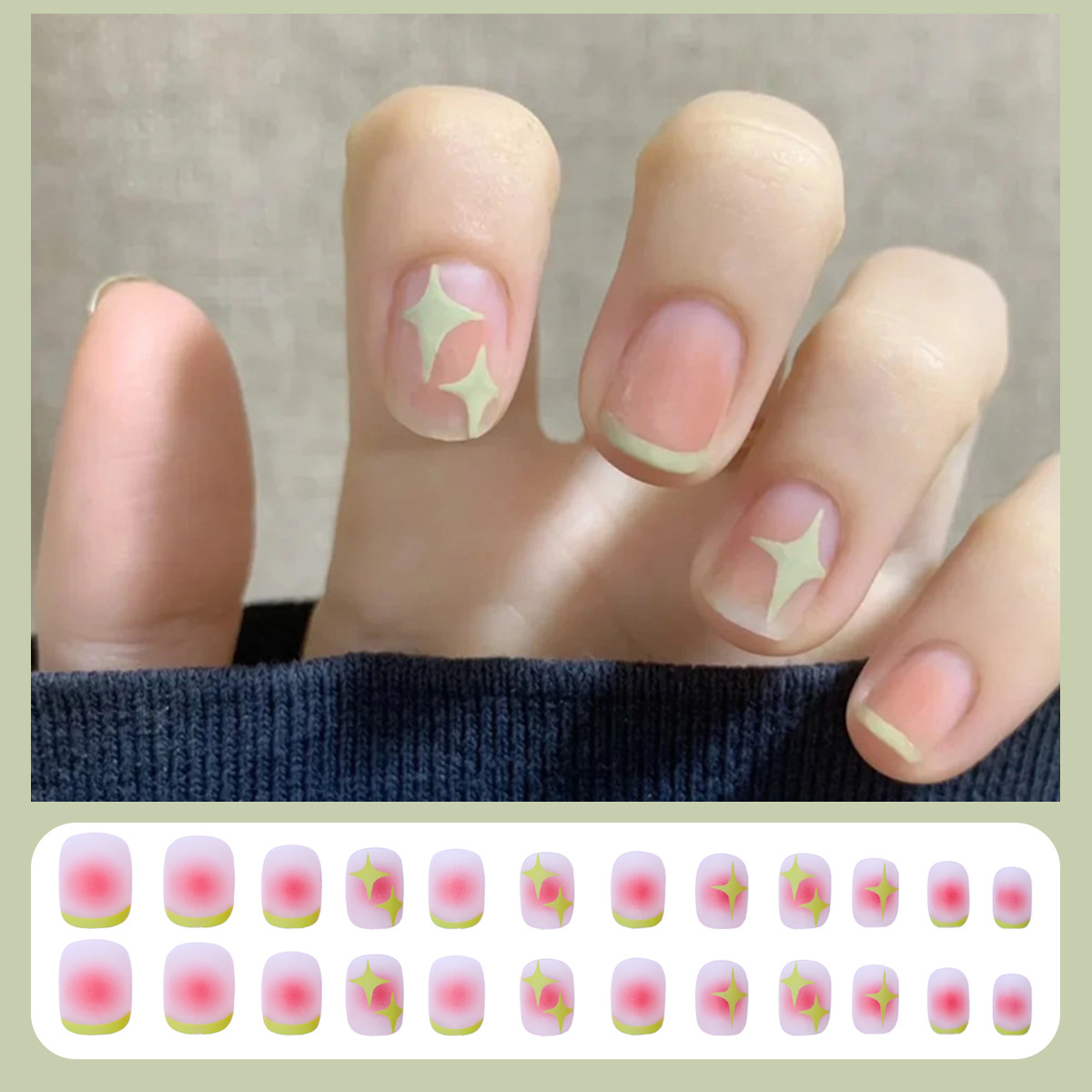 格纹穿戴甲甲片半成品冰透晕染腮红裸色美甲批发可拆卸甲片24片盒