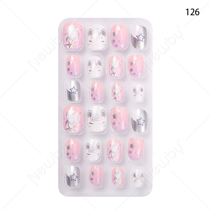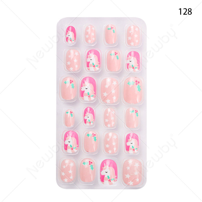 成品甲片儿童穿戴甲 24片贴片卡通圣诞假指甲可拆卸带背胶指甲贴