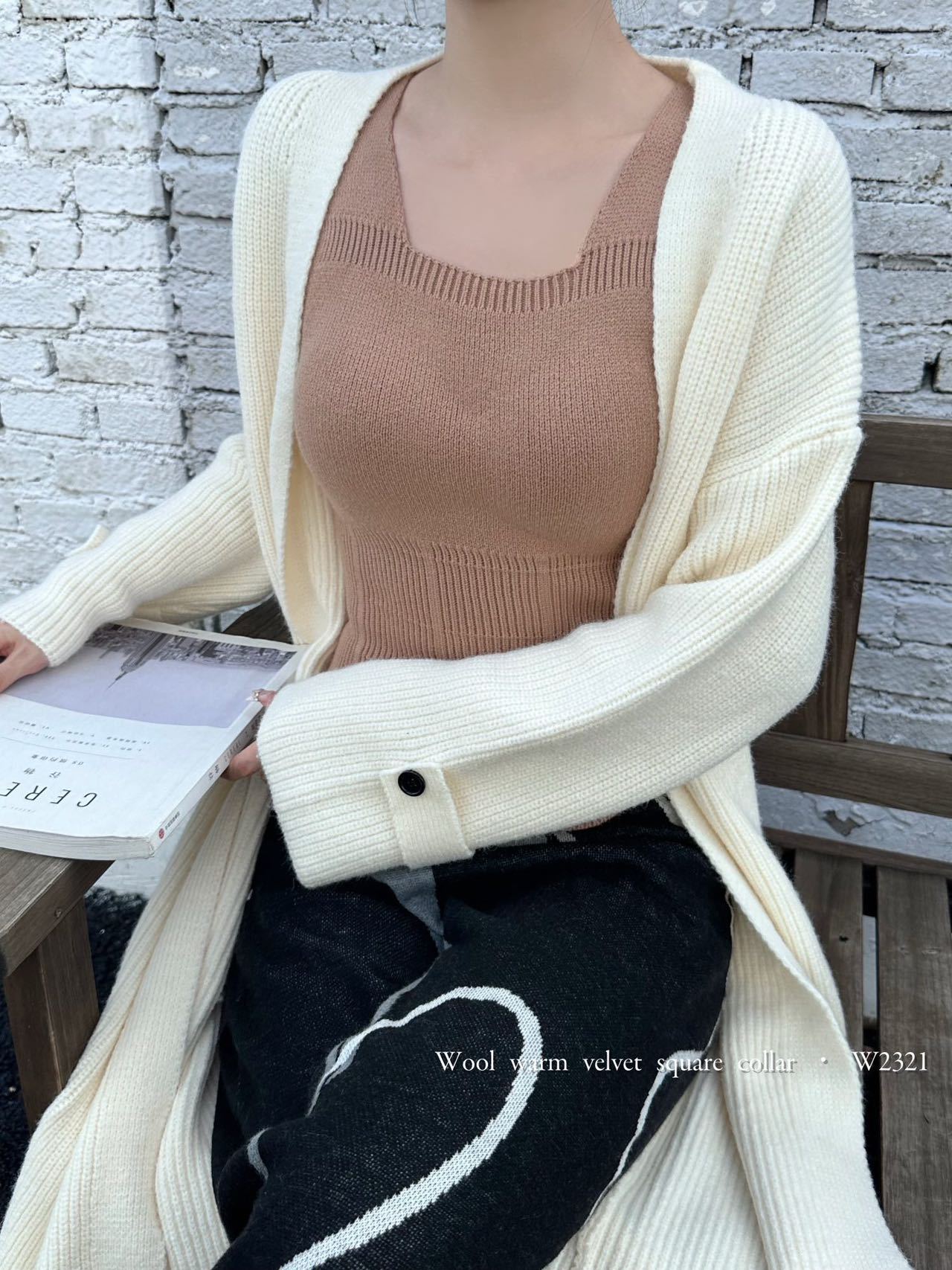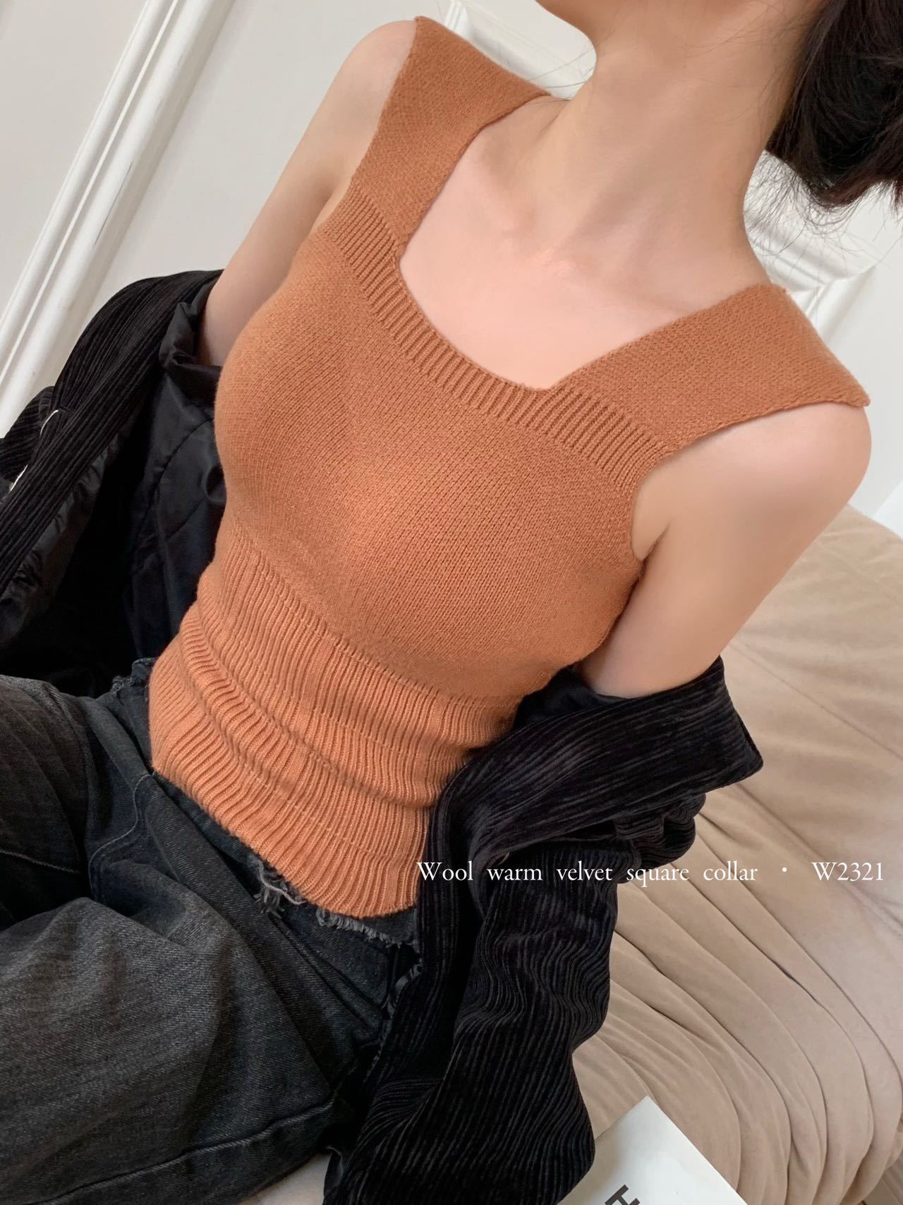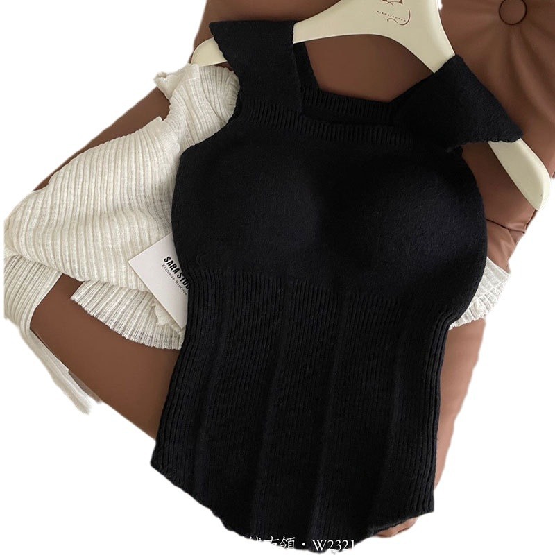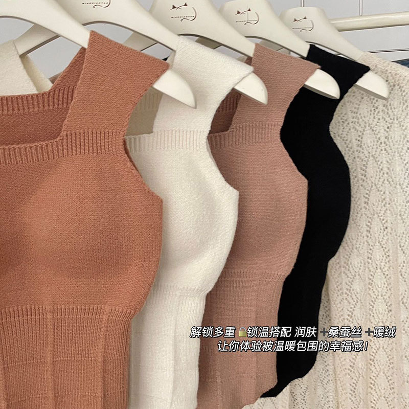 2023秋冬新款背心女羊毛暖绒吊带内搭胸垫一体保暖打底上衣批发