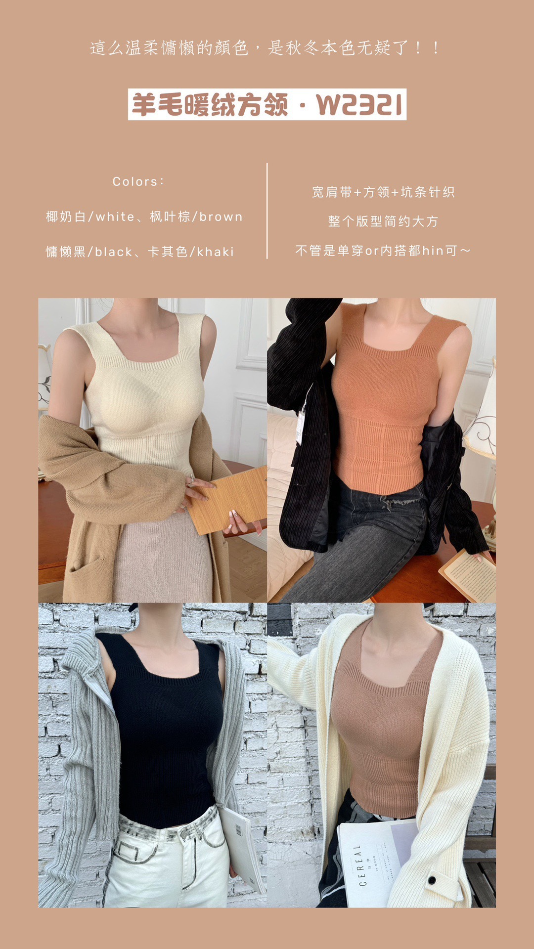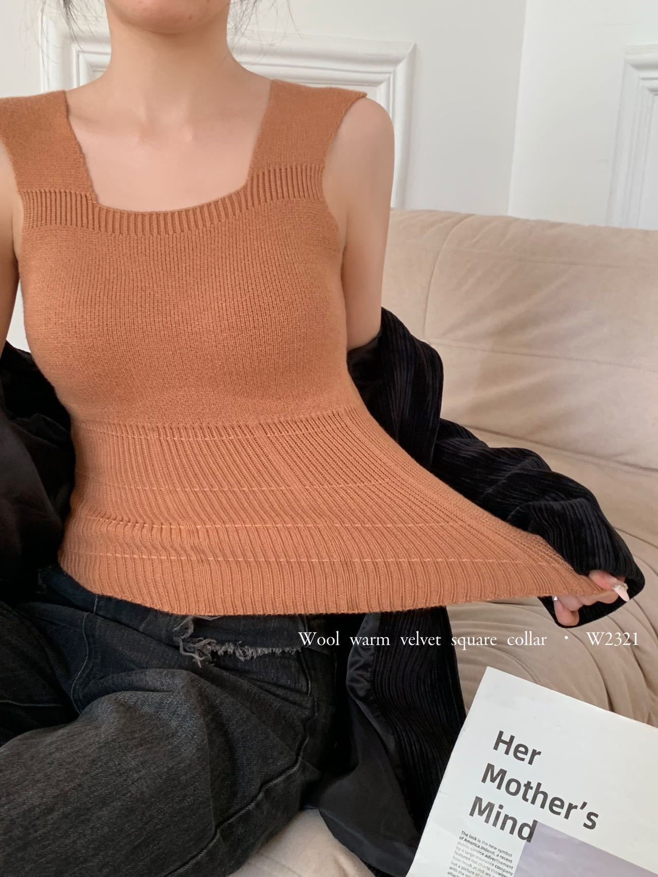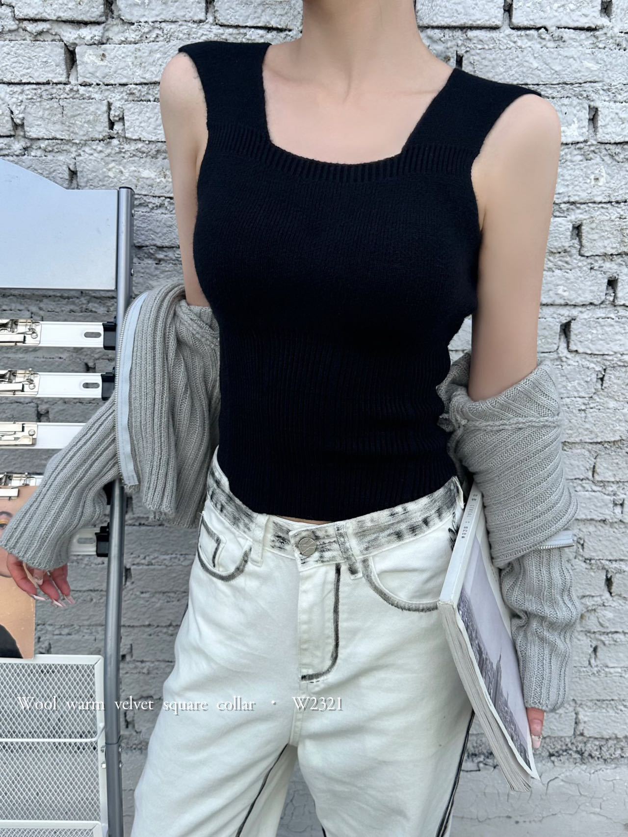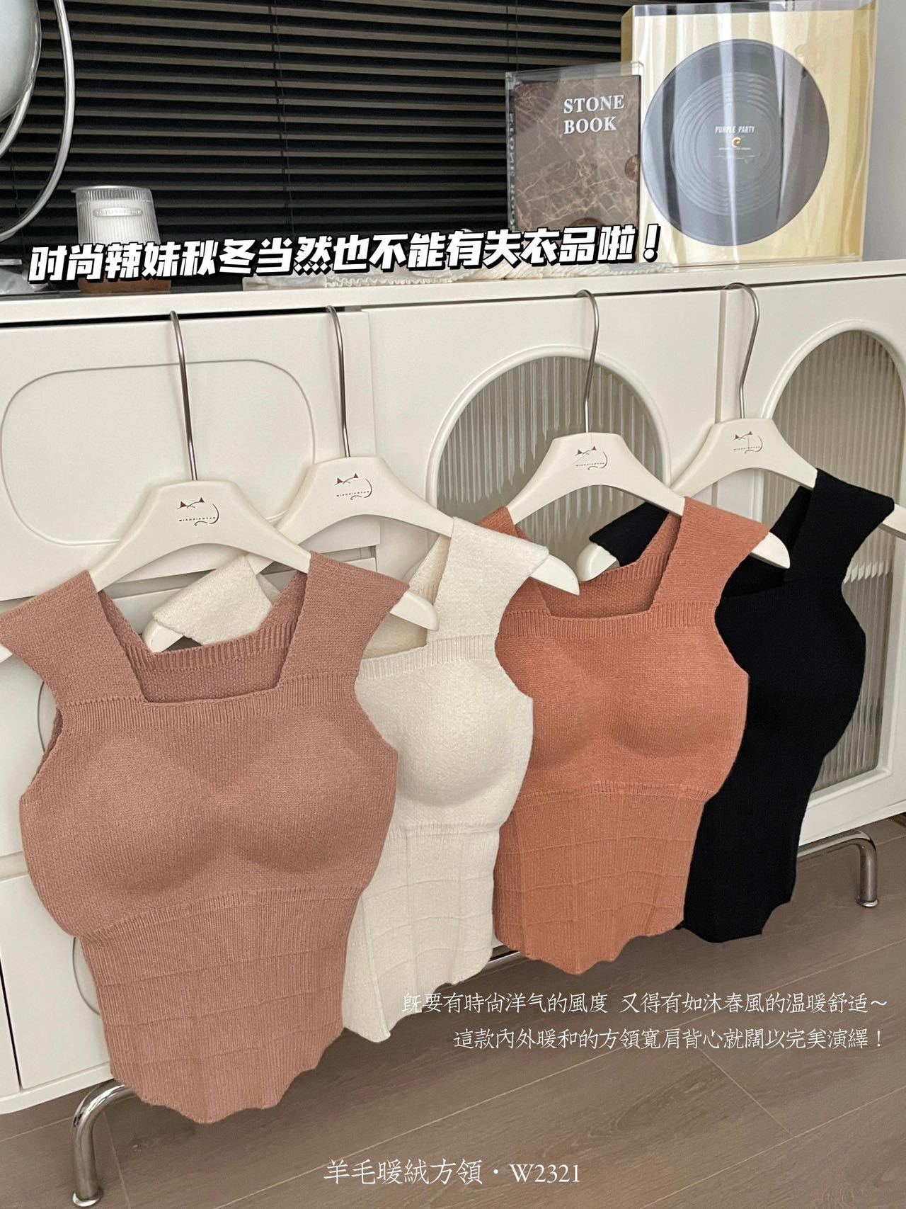 2023秋冬新款背心女羊毛暖绒吊带内搭胸垫一体保暖打底上衣批发