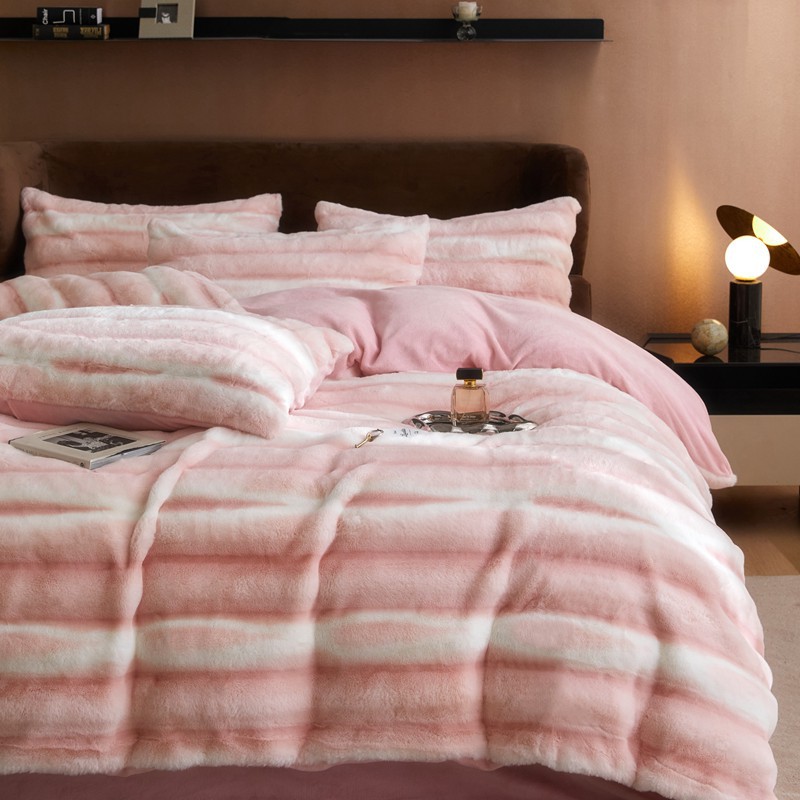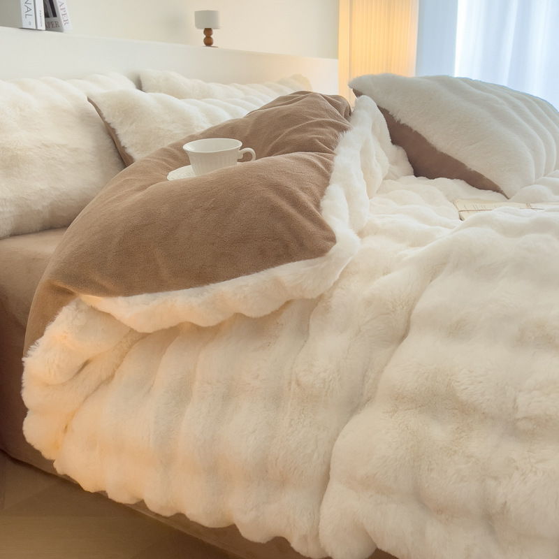 A类冬季兔兔绒四件套牛奶绒加厚保暖加绒珊瑚绒三件套床上用品