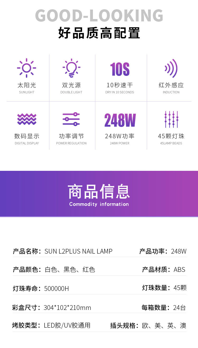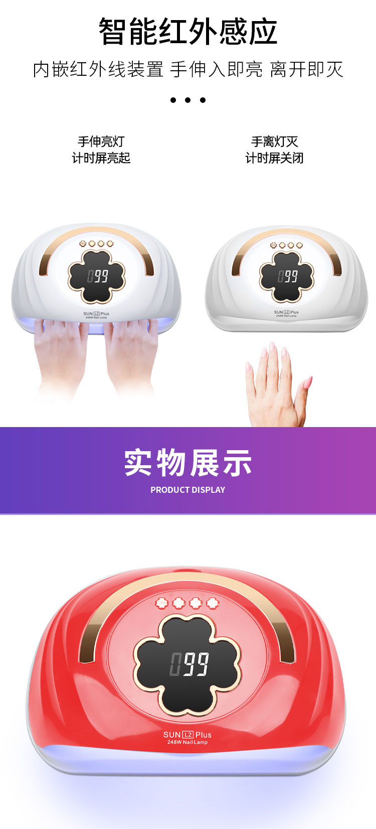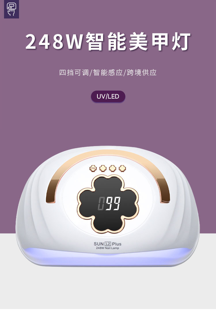 新款美甲灯双手美甲店专用美甲烤灯248W大功率速干美甲光疗灯跨境