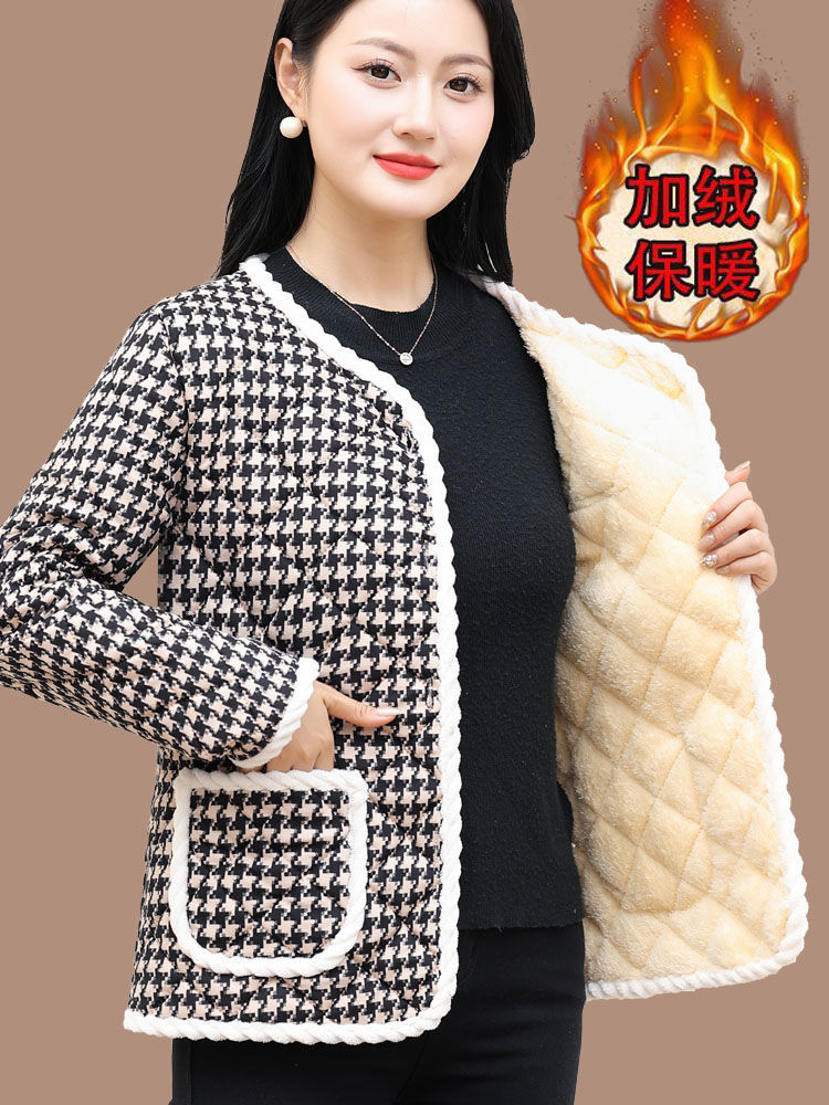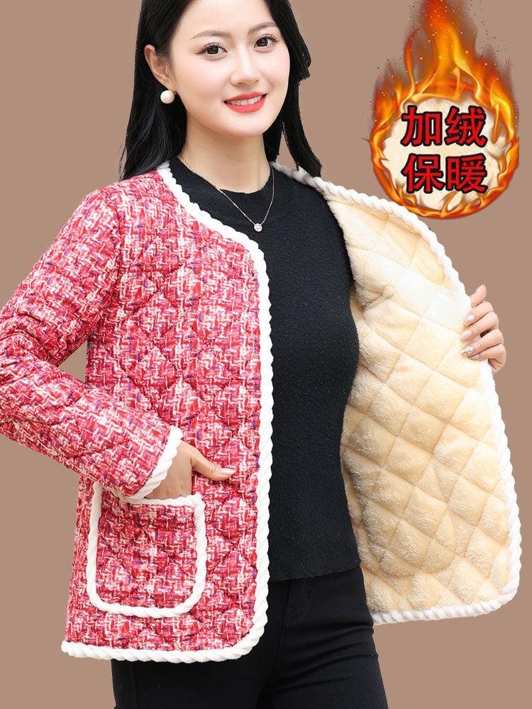 中老年秋冬新款小香风妈妈棉服短款外套加厚棉衣保暖冬季加绒棉袄