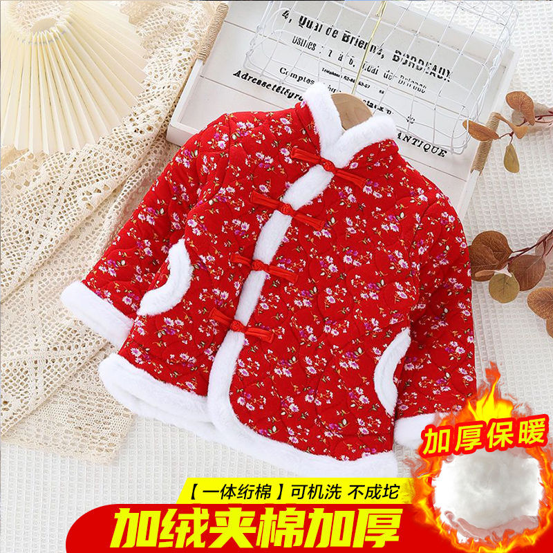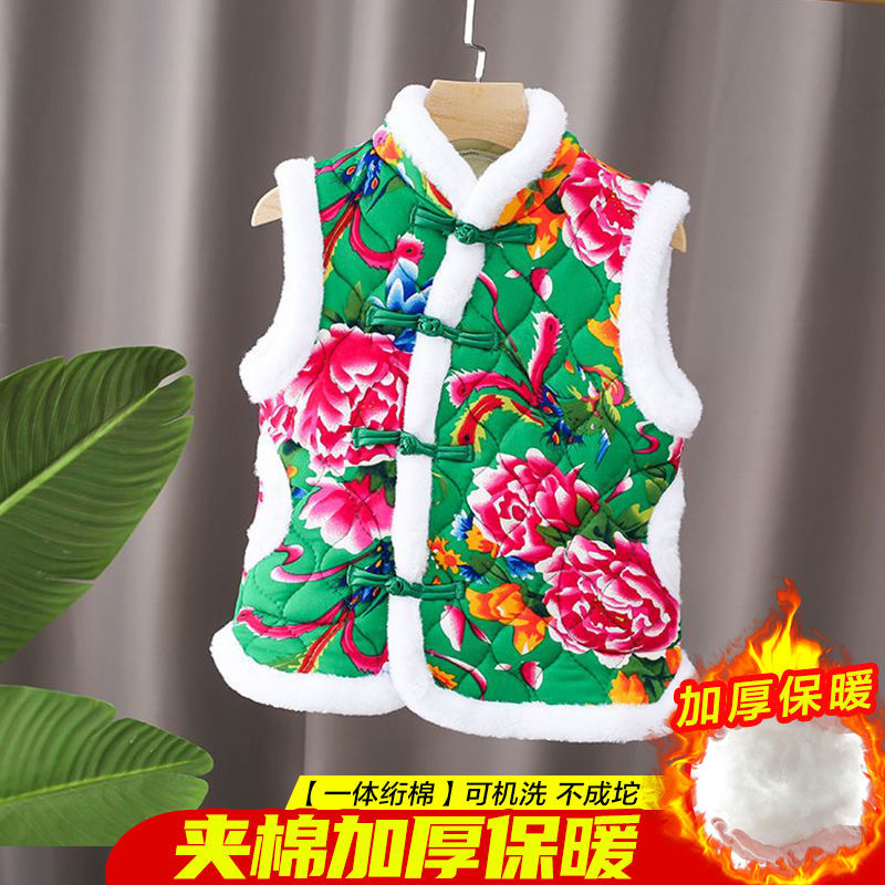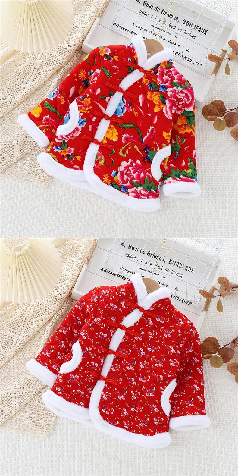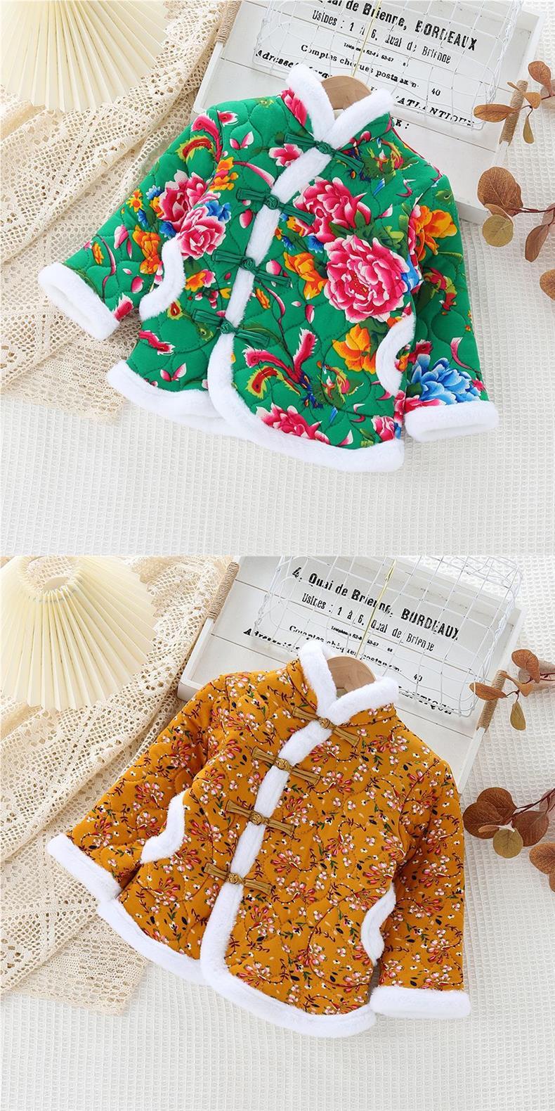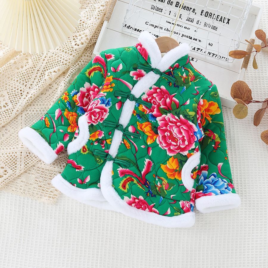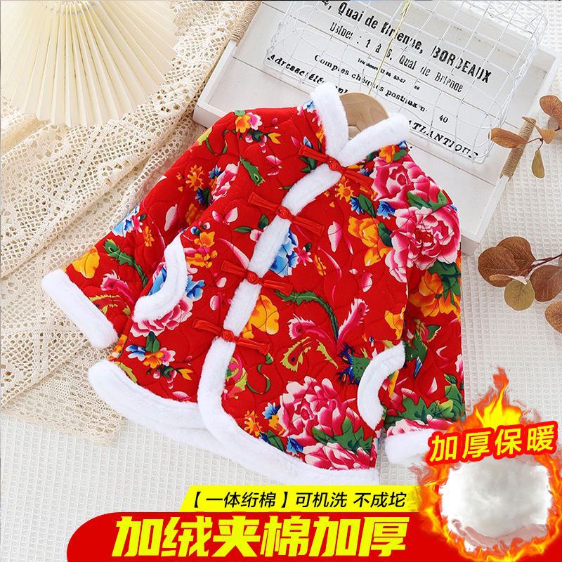 东北花棉袄民族风盘扣加棉加厚中国风毛毛衍边宝宝民族风洋气复古