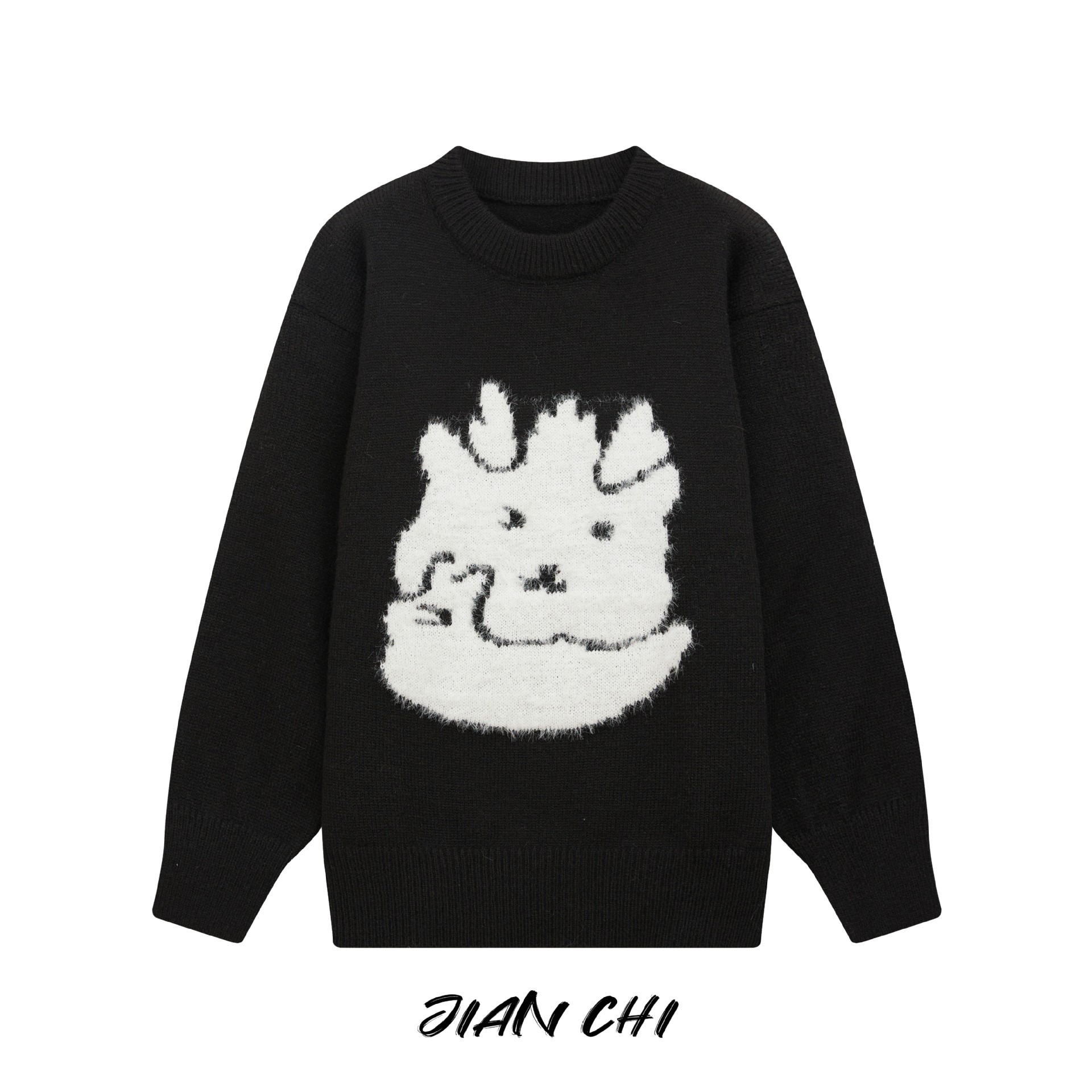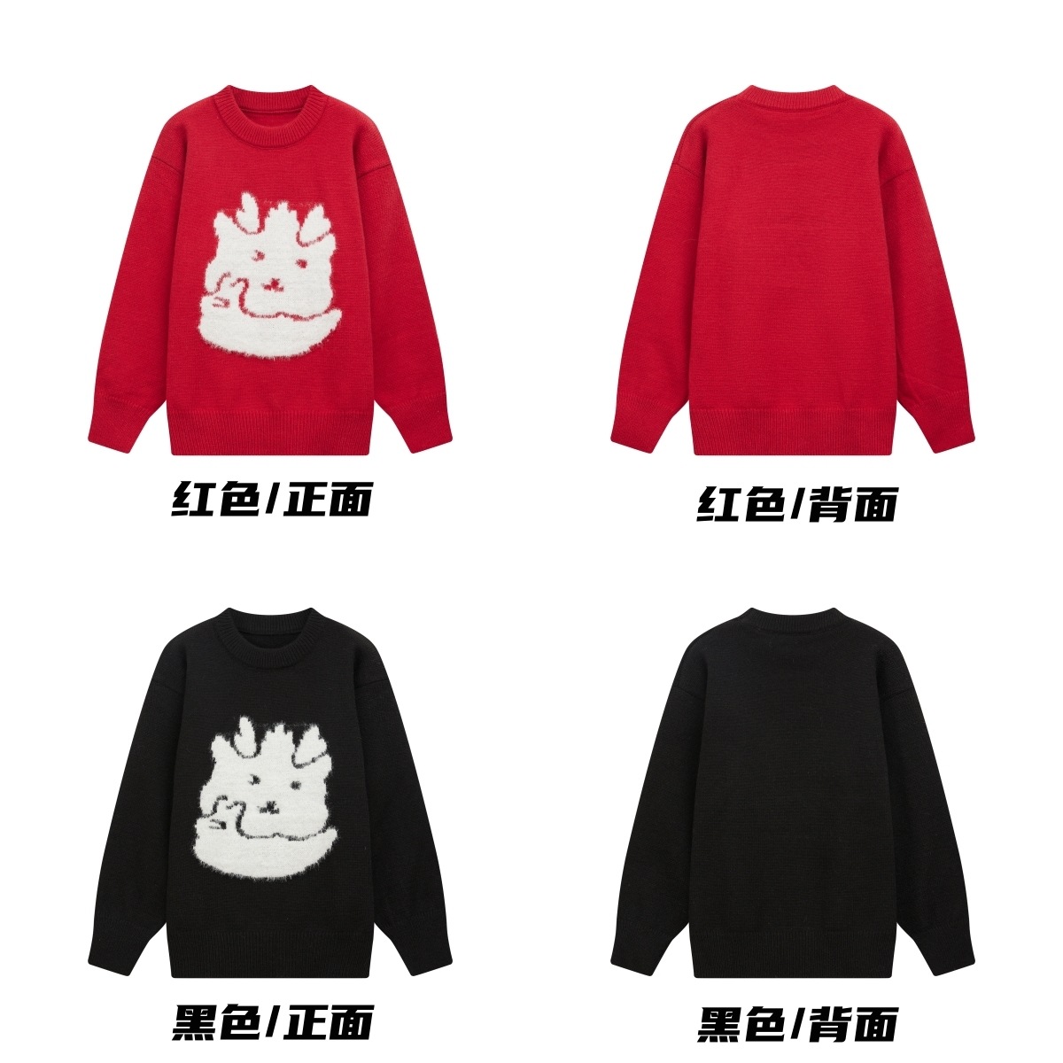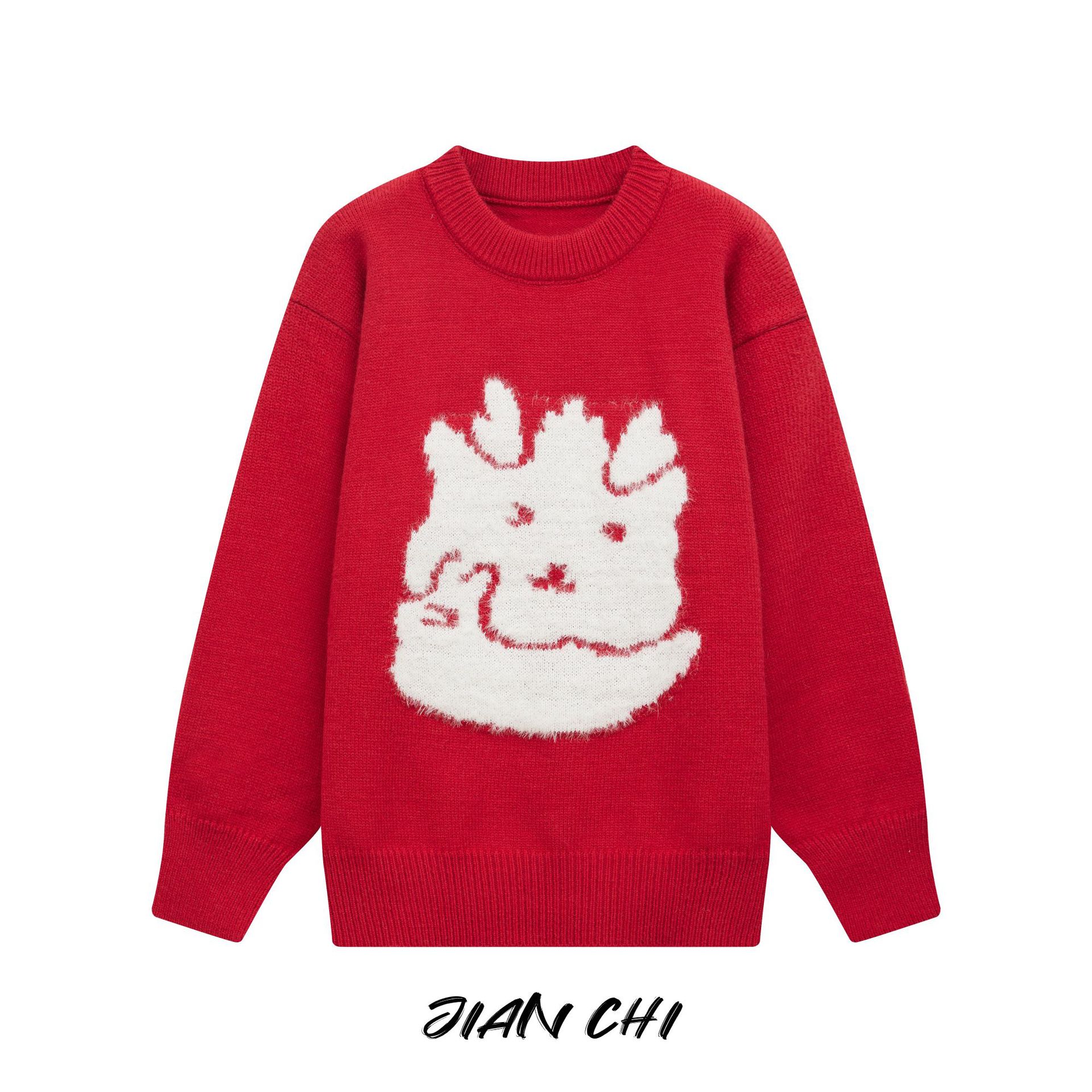 新款秋冬复古本命年龙年卡通提花甜美情侣针织衫男女休闲宽松毛衣