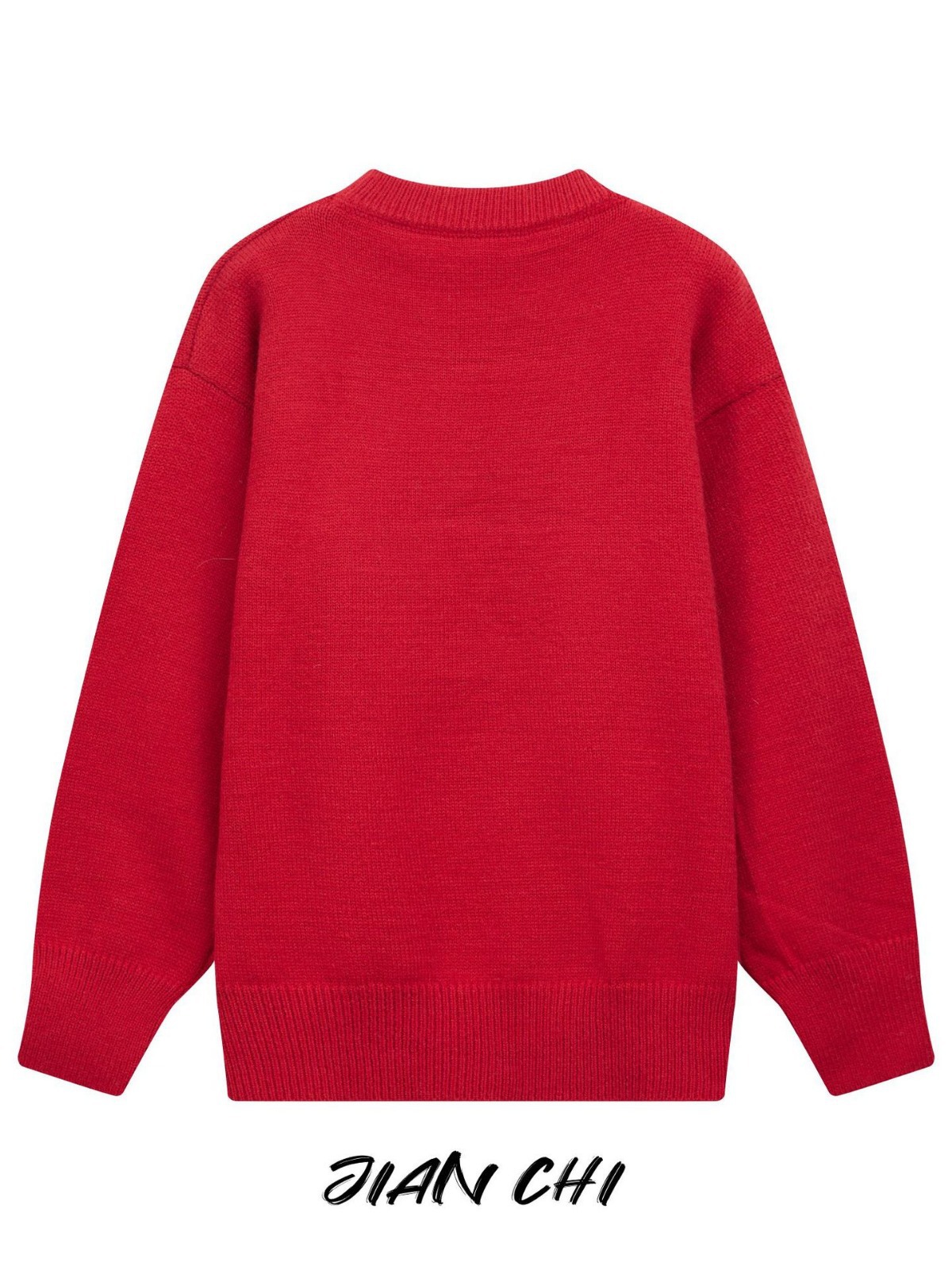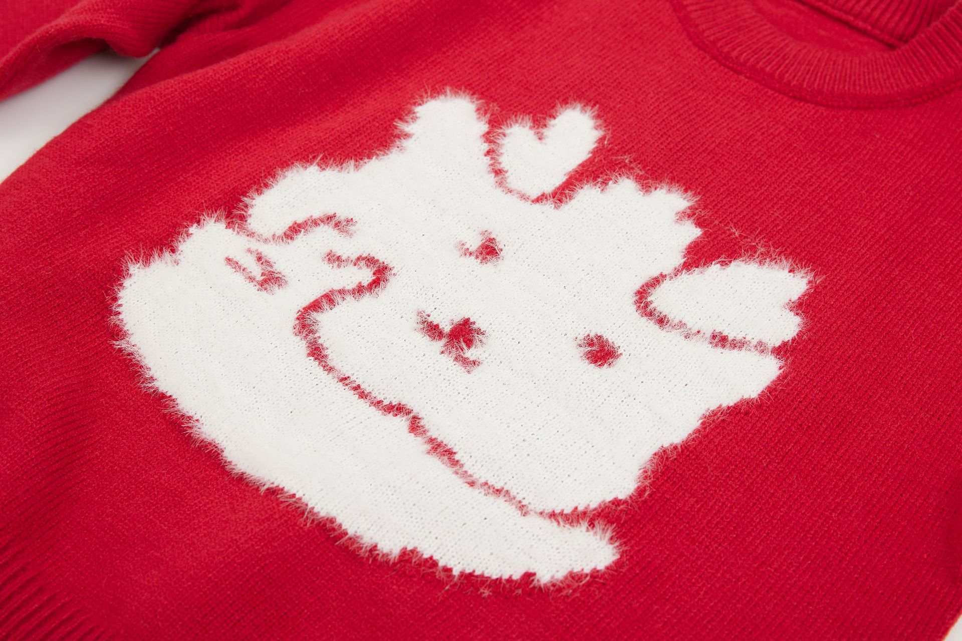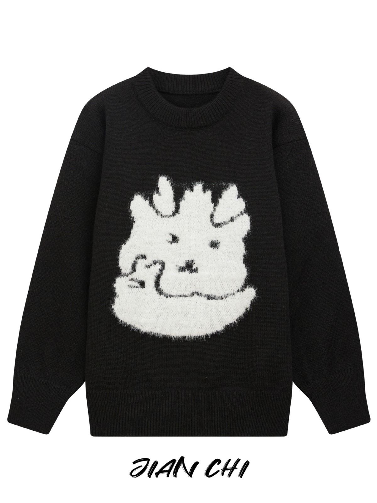 新款秋冬复古本命年龙年卡通提花甜美情侣针织衫男女休闲宽松毛衣