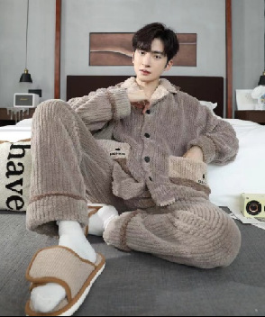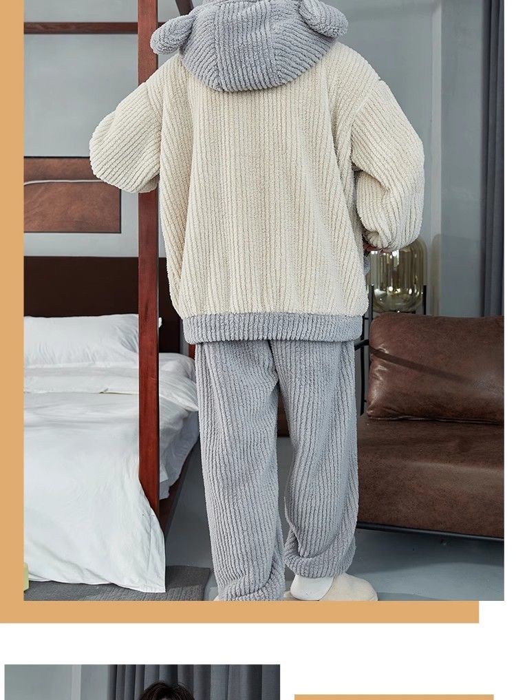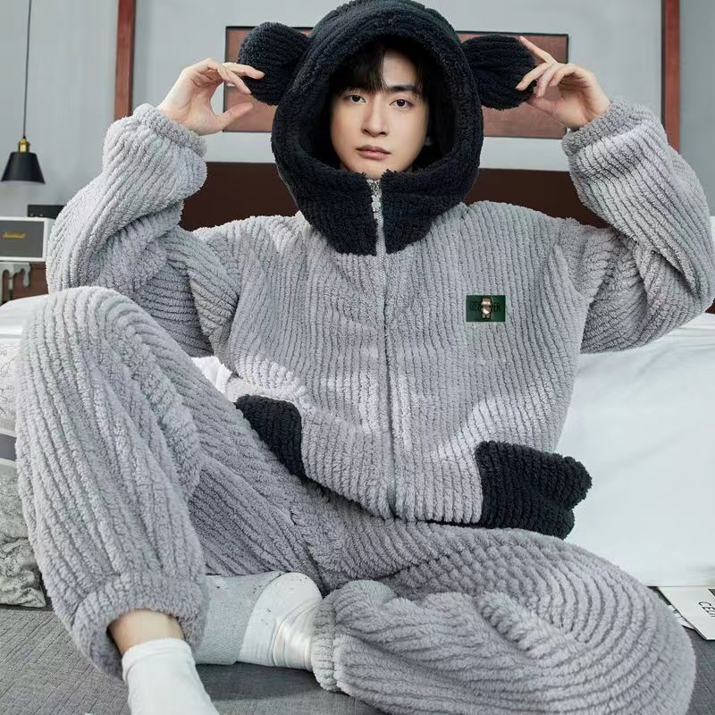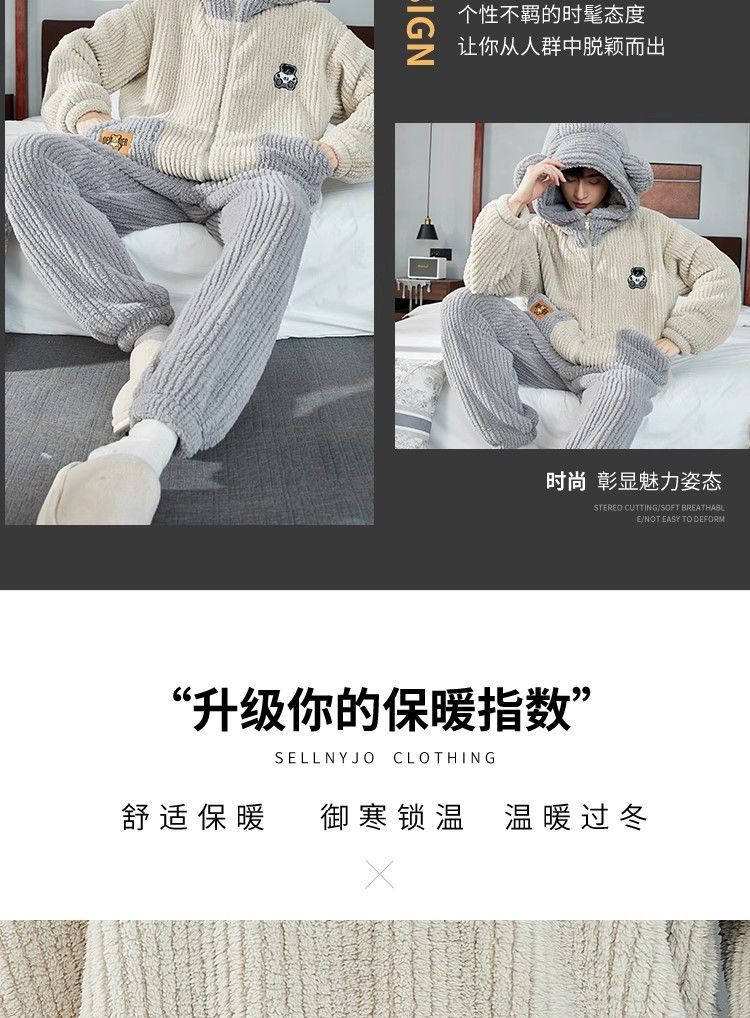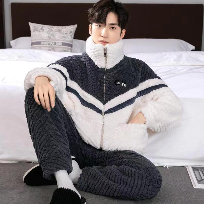 睡衣男士秋冬珊瑚绒加绒加厚保暖可外穿法兰绒拉链休闲家居服套装
