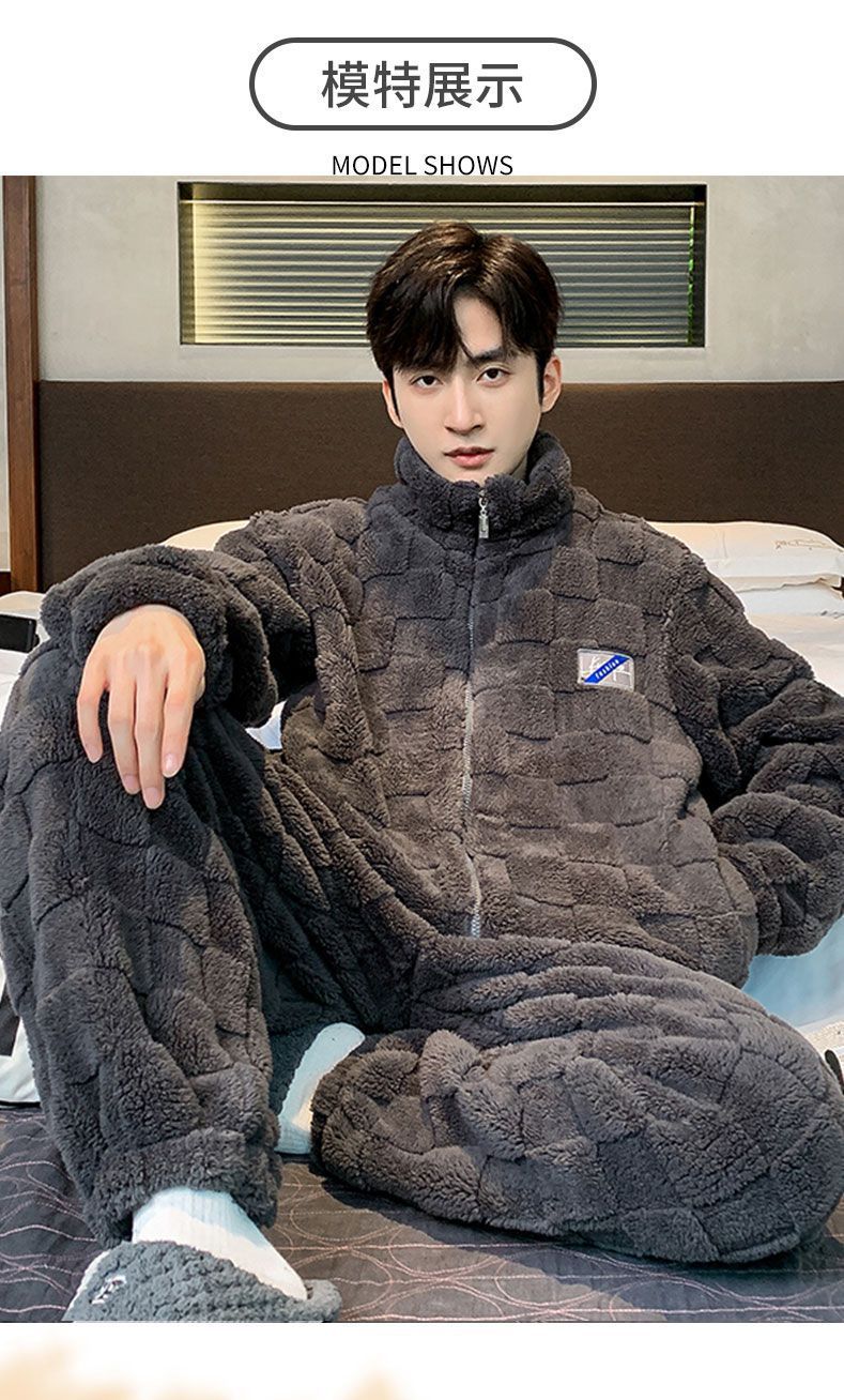 珊瑚绒睡衣男士冬季法兰绒加绒加厚套装法兰绒大码可外穿家居服