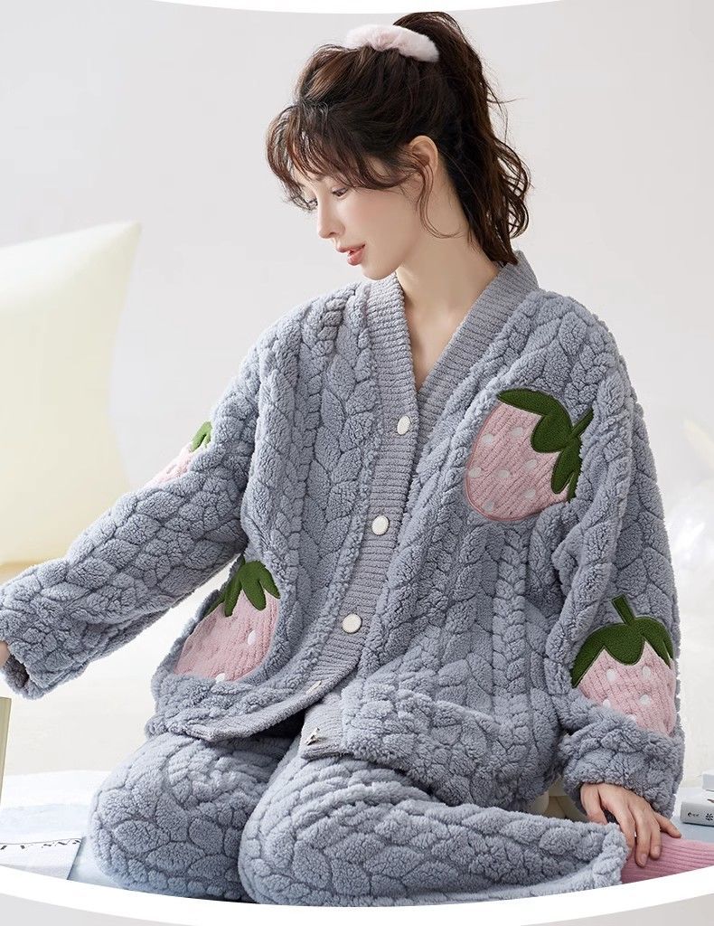 珊瑚绒睡衣女士2023新款秋冬季加绒加厚保暖冬天法兰绒家居服套装