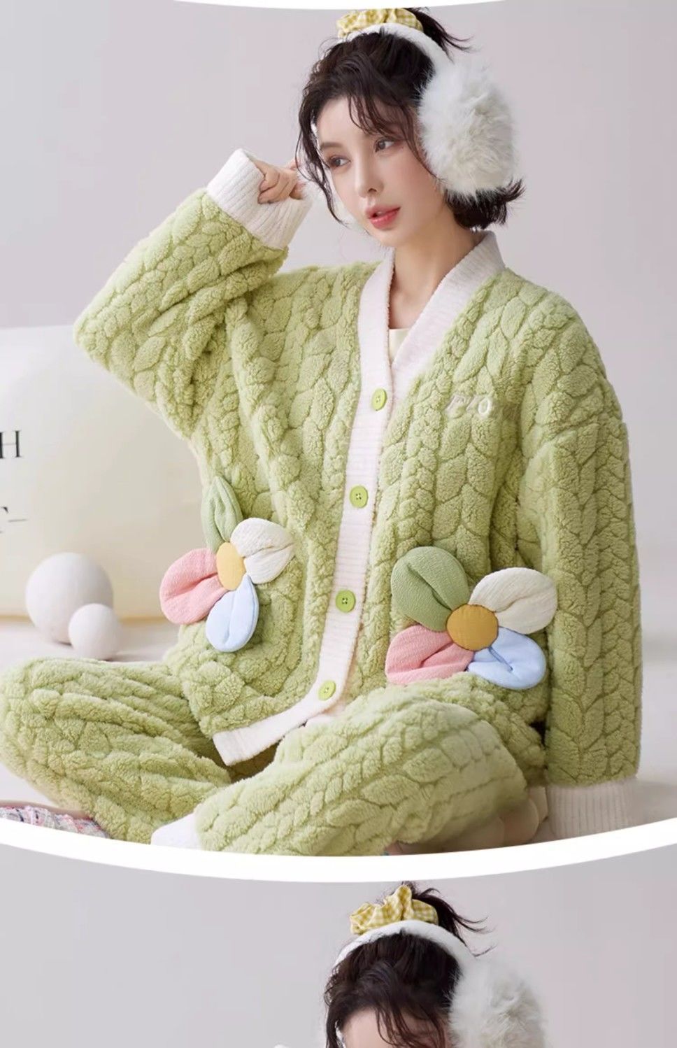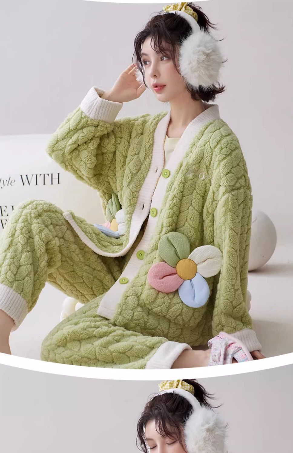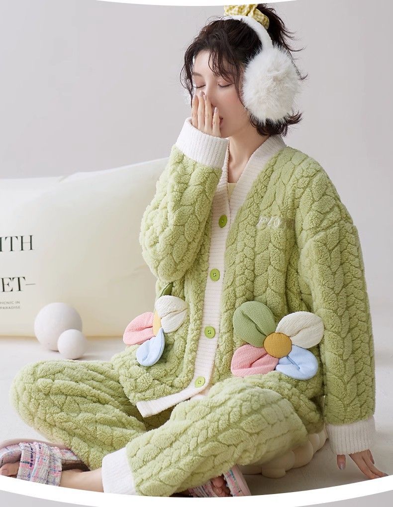 可爱加厚新款珊瑚绒睡衣女秋冬季保暖法兰绒家居服套装大码可外穿